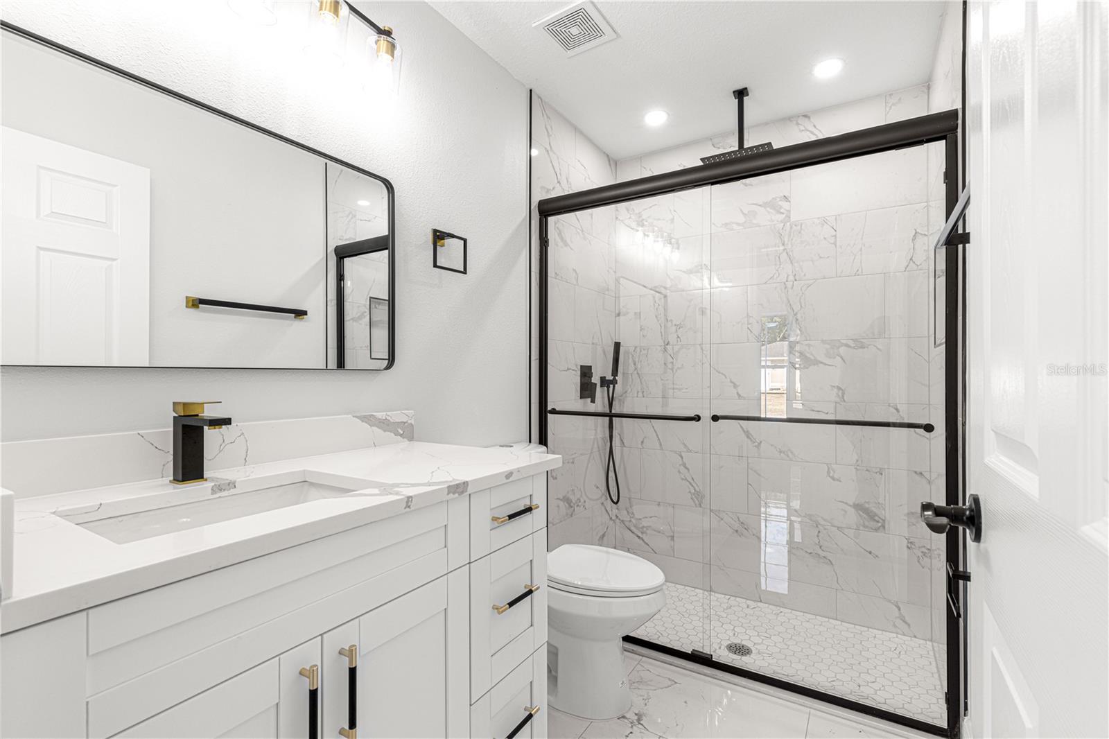 One or more photo(s) has been virtually staged. Newly completed and move-in ready, this stunning home sits on a desirable corner lot with no HOA and is USDA-eligible. Eye-catching exterior stonework and modern entry lighting create strong curb appeal from the moment you arrive. Inside, extra-large polished tile floors run seamlessly throughout the home, enhancing the open and airy feel. The kitchen features waterfall quartz countertops with bold veining and soft close kitchen cabinets. A large sliding glass door with built-in blinds brings in natural light while offering easy access to the outdoors. The spacious primary suite includes a walk-in closet, providing comfort and functionality. Thoughtfully designed with modern finishes and quality details throughout—this is a home you truly need to see to appreciate. Photos are of a model home.