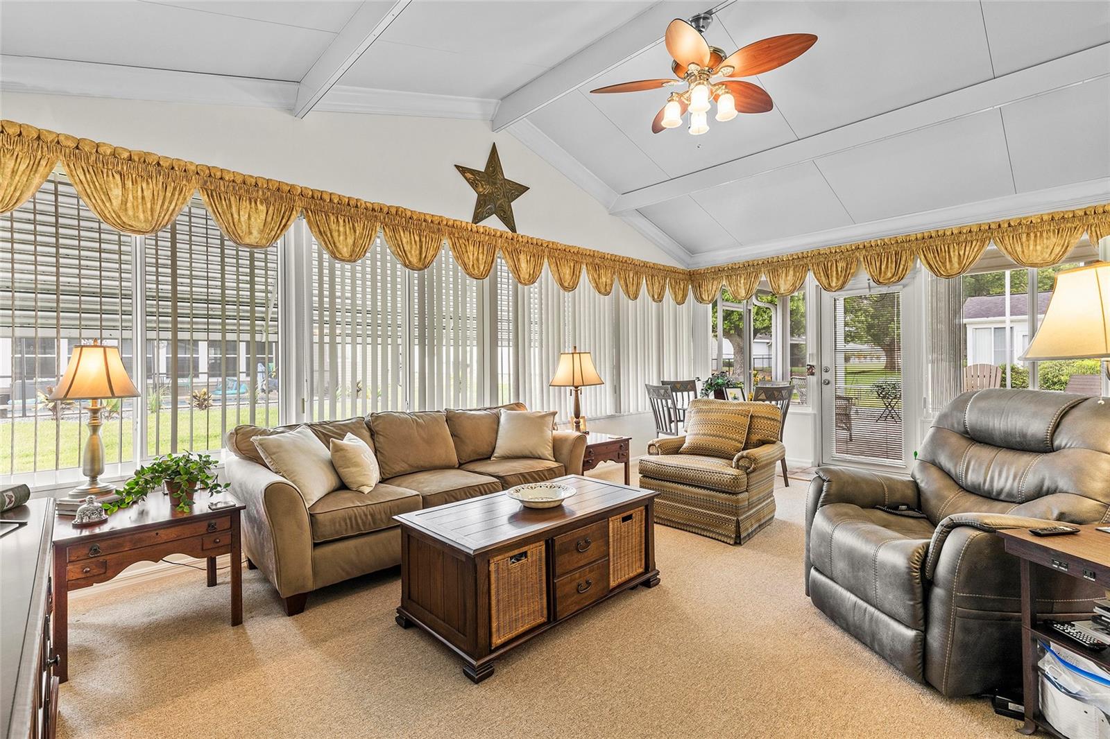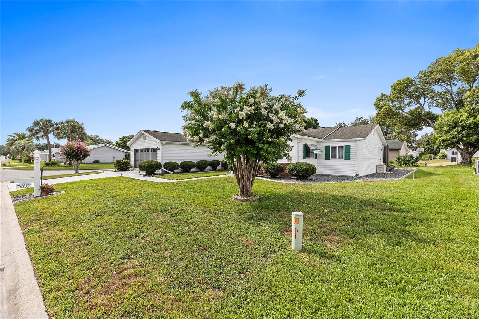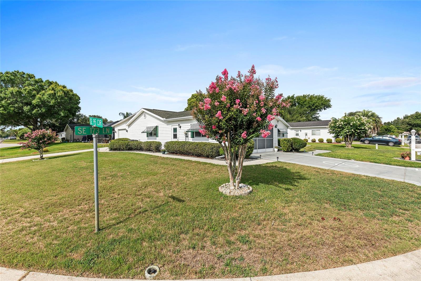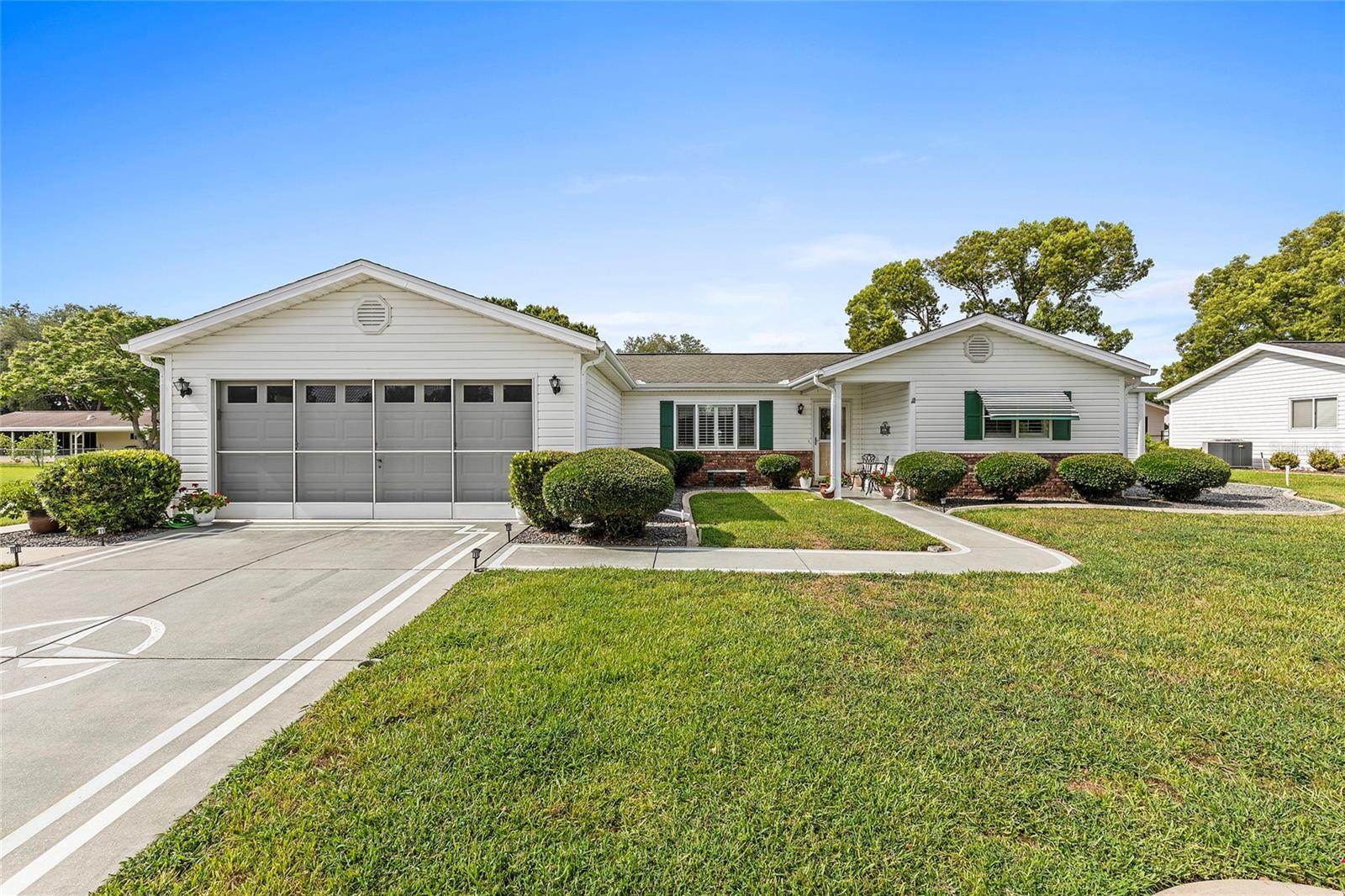 Located within the Premier 55+ Gated Golf Course Community of SPRUCE CREEK SOUTH, this exceptional home offers the perfect blend of relaxed Florida living and everyday convenience. Minutes from THE VILLAGES, FLORIDA off Hwy 441 / US 27, the property is ideally positioned near fine dining, upscale shopping, top rated hospitals, and provides easy access to I-75 for travel and day trips. The home is being sold FULLY FURNISHED and includes a 2018 YAMAHA GOLF CART, allowing you to settle in and start enjoying the lifestyle immediately. This inviting 3 Bedroom, 2 Bath Holly Floor plan sits on a desirable corner lot and welcomes you with soaring ceilings in the living and dining areas that create a bright, OPEN atmosphere. LAMINATE Flooring runs through the main living spaces and the primary bedroom, while Carpeting adds comfort to the guest bedrooms and the Florida Room. UPDATED Cabinetry in both the Kitchen and Bathrooms enhances the home’s style and functionality, making everyday living both comfortable and efficient. One of the standout Features is the SPACIOUS 22 x 14 FLORIDA ROOM under air, complete with a vaulted ceiling, offering an ideal space for entertaining guests or unwinding with a peaceful morning coffee. Just beyond, a SCREENED PATIO provides a quiet outdoor escape, and the adjacent 9 x 25 STORAGE ROOM opens the door to endless possibilities, whether used as a hobby space, studio, workshop, or private retreat. The exterior is just as impressive, with attractive landscaping that adds curb appeal and a practical layout that includes a TWO CAR Garage plus a separate GOLF CART GARAGE with convenient side entry and utility door. Major systems have been thoughtfully maintained, with the HVAC replaced in 2020 and the water heater in 2012, offering added peace of mind. Surrounded by resort-style amenities and a welcoming neighborhood atmosphere, this home delivers a lifestyle that feels like a year round vacation. Don’t miss your opportunity to enjoy comfort, convenience, and community in one of central Florida’s most desirable active adult communities...Spruce Creek South.