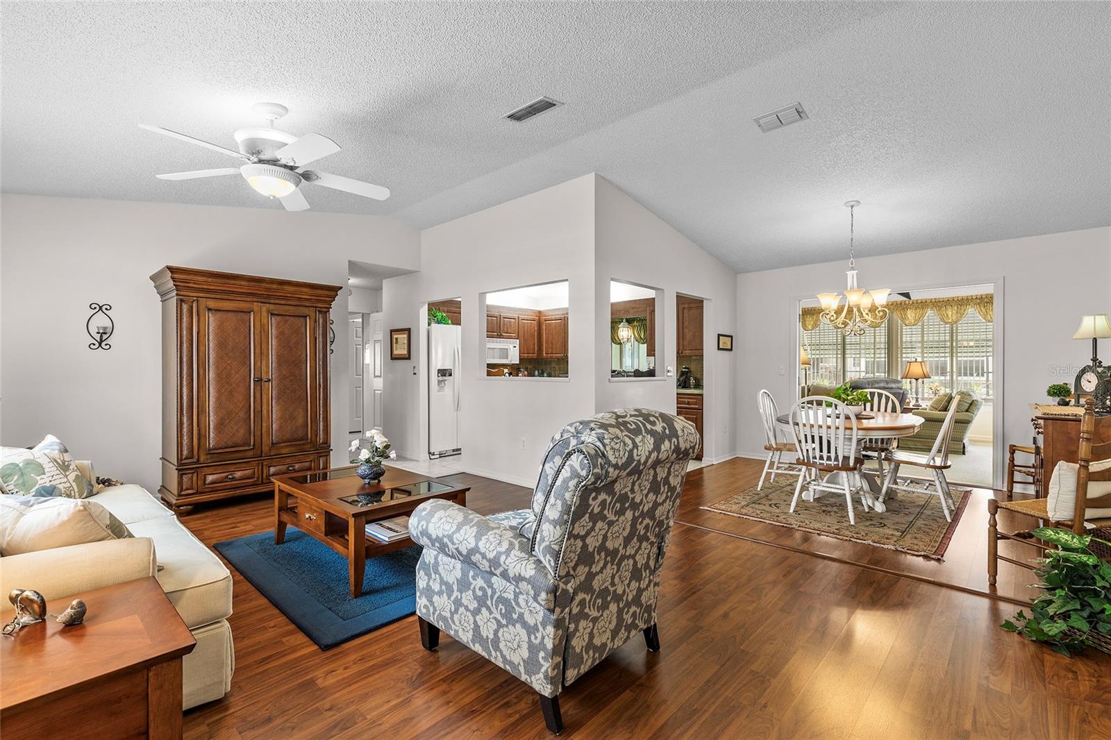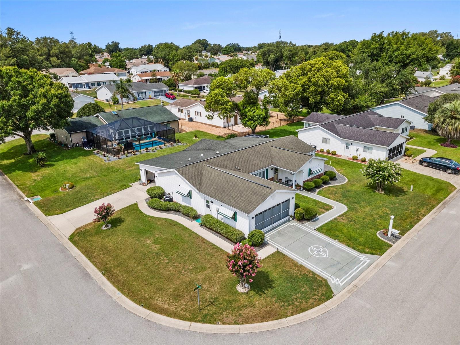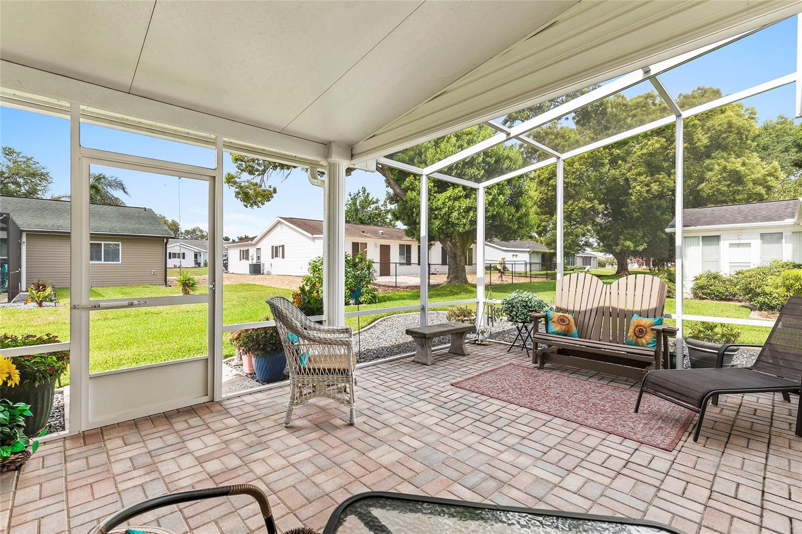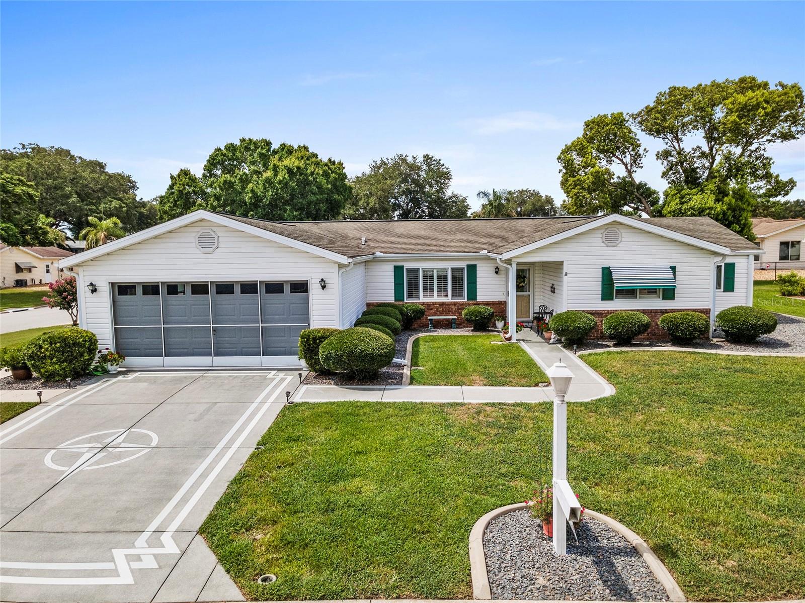 Located within the Premier 55+ Gated Golf Course Community of SPRUCE CREEK SOUTH, this exceptional home offers the perfect blend of relaxed Florida living and everyday convenience. Minutes from THE VILLAGES, FLORIDA off Hwy 441 / US 27, the property is ideally positioned near fine dining, upscale shopping, top rated hospitals, and provides easy access to I-75 for travel and day trips. The home is being sold FULLY FURNISHED and includes a 2018 YAMAHA GOLF CART, allowing you to settle in and start enjoying the lifestyle immediately. This inviting 3 Bedroom, 2 Bath Holly Floor plan sits on a desirable corner lot and welcomes you with soaring ceilings in the living and dining areas that create a bright, OPEN atmosphere. LAMINATE Flooring runs through the main living spaces and the primary bedroom, while Carpeting adds comfort to the guest bedrooms and the Florida Room. UPDATED Cabinetry in both the Kitchen and Bathrooms enhances the home’s style and functionality, making everyday living both comfortable and efficient. One of the standout Features is the SPACIOUS 22 x 14 FLORIDA ROOM under air, complete with a vaulted ceiling, offering an ideal space for entertaining guests or unwinding with a peaceful morning coffee. Just beyond, a SCREENED PATIO provides a quiet outdoor escape, and the adjacent 9 x 25 STORAGE ROOM opens the door to endless possibilities, whether used as a hobby space, studio, workshop, or private retreat. The exterior is just as impressive, with attractive landscaping that adds curb appeal and a practical layout that includes a TWO CAR Garage plus a separate GOLF CART GARAGE with convenient side entry and utility door. Major systems have been thoughtfully maintained, with the HVAC replaced in 2020 and the water heater in 2012, offering added peace of mind. Surrounded by resort-style amenities and a welcoming neighborhood atmosphere, this home delivers a lifestyle that feels like a year round vacation. Don’t miss your opportunity to enjoy comfort, convenience, and community in one of central Florida’s most desirable active adult communities...Spruce Creek South.