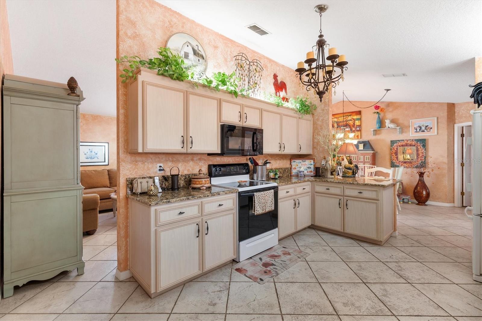 If you’re looking for a home with plenty of storage then you Don’t want to miss this 2/2 Palm model located in the desirable 55+ community, Spruce Creek South. As you enter the home from the covered front entry you will notice the vaulted ceilings and large living room and dining room combo with beautiful Italian porcelain tile. To the right of the dining room you will enter your nicely sized galley kitchen with an abundance of updated cabinets for all of your kitchen necessities and all with granite counter tops. The same cabinets and granite counter tops have also been carried through to both bathrooms, giving a cohesive touch. The kitchen leads to the oversized 20’x26’ two car garage which includes a separate laundry room under heat & air and equipped with brand new washer & dryer. The Florida room is right off the dining room & under heat and air with acrylic windows and LVP flooring. At the end of the Florida room, you have a 12 x 20 screened lanai providing a great space to enjoy your morning coffee or grill your evening meal. The large master bedroom is very spacious with two built-in closets that also have separate overhead storage. The master bathroom has a walk-in closet and a separate area with the walk-in shower, toilet and another large linen closet. The guest bedroom & bathroom are in the front of the home which allows your guest plenty of privacy. The guest bedroom is spacious and has a walk-in closet. In the hallway leading to the guest room is another linen closet and to the right you will find a nice sized guest bath with a tub/shower combo. Spruce Creek South, 55+ Gated Golf Course Community just 2 miles north of The Villages. Close to doctors and shopping. Call me for your private showing today! Roof 2025; HVAC 2025; HWH 2020.
