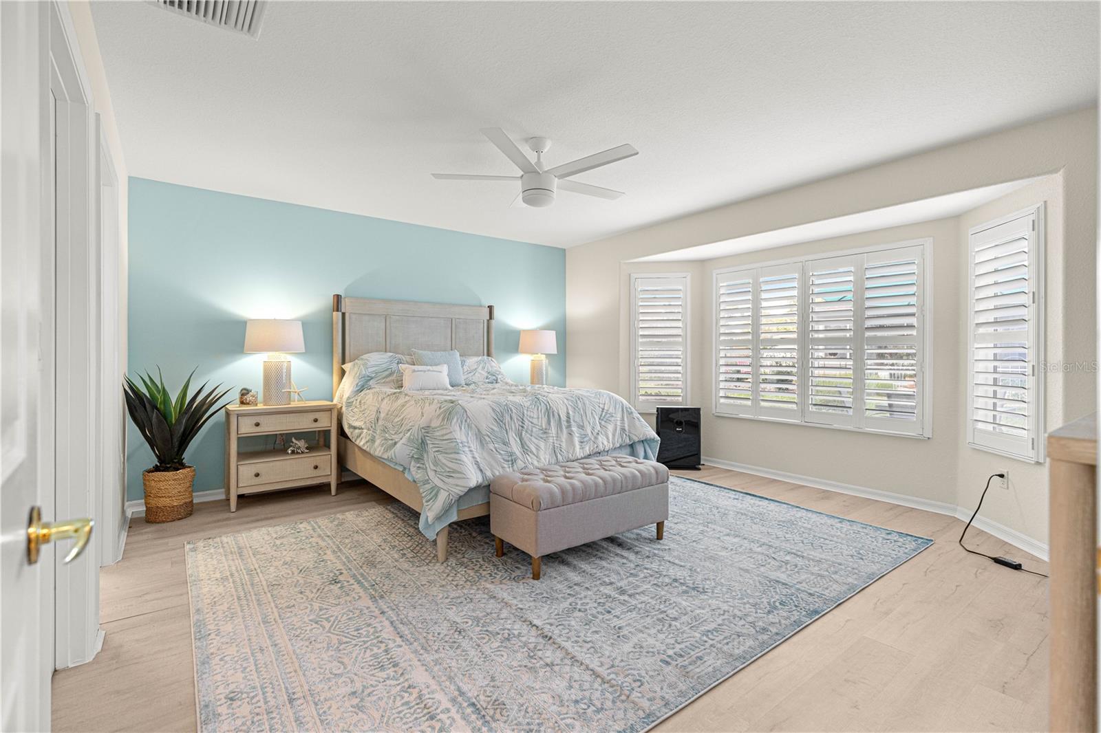Welcome to this beautifully maintained and thoughtfully updated 2 bedroom, 2 bath Chesapeake floor plan. Located in the highly desirable 55+ Del Webb Spruce Creek Golf & Country Club. This stucco home offers 1,555 sq. ft. of living space, including the light filled Florida room, perfect for relaxing or entertaining. From the moment you arrive, you’ll notice the outstanding curb appeal, complete with a painted driveway and walkway, updated landscaping with concrete curbing, and a corner lot setting. Inside, the open floor plan is enhanced by a vaulted ceiling, recessed lighting, fresh interior paint, and a split floor plan. Interior highlights include Luxury vinyl plank flooring throughout (guest bedroom carpeted for comfort), newly purchased stainless steel appliances, plus washer and dryer (2025). White cabinetry with pull-outs, tiled back splash, and large farm style sink in the kitchen. Updated bathrooms, including an en-suite with a beautiful walk-in shower and new fixtures. Plantation shutters, updated lighting, and ceiling fans throughout, The primary suite features a bow window for added space, plus a large walk-in closet with custom organizers. Enjoy seamless entertaining with the open Florida room, kitchen pass-through, and a private outdoor patio-perfect for morning coffee, grilling out, or evening gatherings. Major updates for peace of mind are roofing re-shingled (2022) HVAC (2013), and new gutters with leaf guards (2025) for low-maintenance living. This home combines modern updates with a highly functional layout, all within a vibrant community offering golf, recreation, and endless amenities.