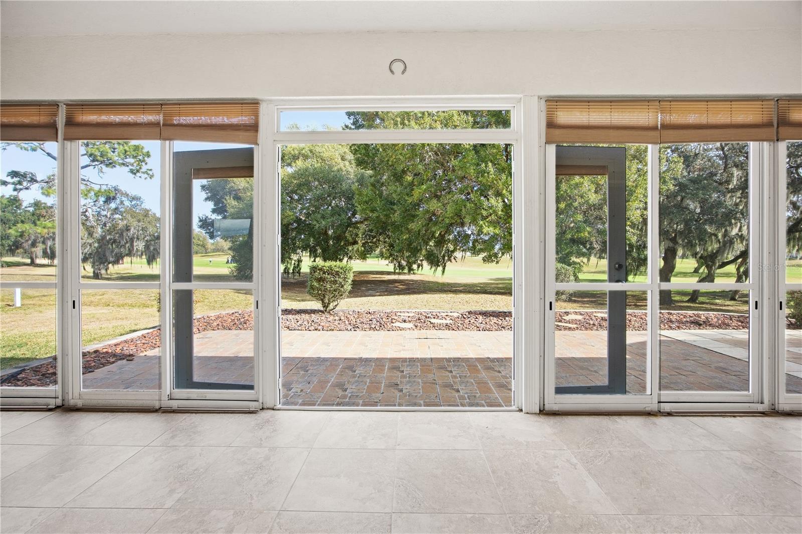 Serenity awaits in this inviting Madeira model, perfectly positioned at the start of the Heritage Golf Course’s 3rd Fairway. This two-owner home has been well-loved and features expansive 9-foot ceilings and tall windows that flood the space with natural light. Diagonally laid ceramic tile flows through the main living areas, leading you to a spacious island kitchen equipped with Corian countertops, wood cabinetry, breakfast bar and pantry. Just off the living room - which boasts a cozy natural gas fireplace - you will find a den/office accented with plantation shutters. The layout is designed for views, with bay windows in both the dining area and primary bedroom. Relax year-round in the glass-enclosed lanai, offering sweeping views of the golf course and the adjoining Preserve lot - a park-like setting that will never be developed. Practical upgrades include a New Roof and HVAC (2022) and a garage extended by 4 feet, complete with a dedicated golf cart space. Located in Del Webb's Spruce Creek Golf and Country Club, you'll enjoy true resort-style living with access to four 9-hole golf courses, pro golf shop, restaurant, three pools and hot tubs, a softball field, pickleball courts, fitness center, library, numerous clubs and activities. Reach out today to schedule your private tour!