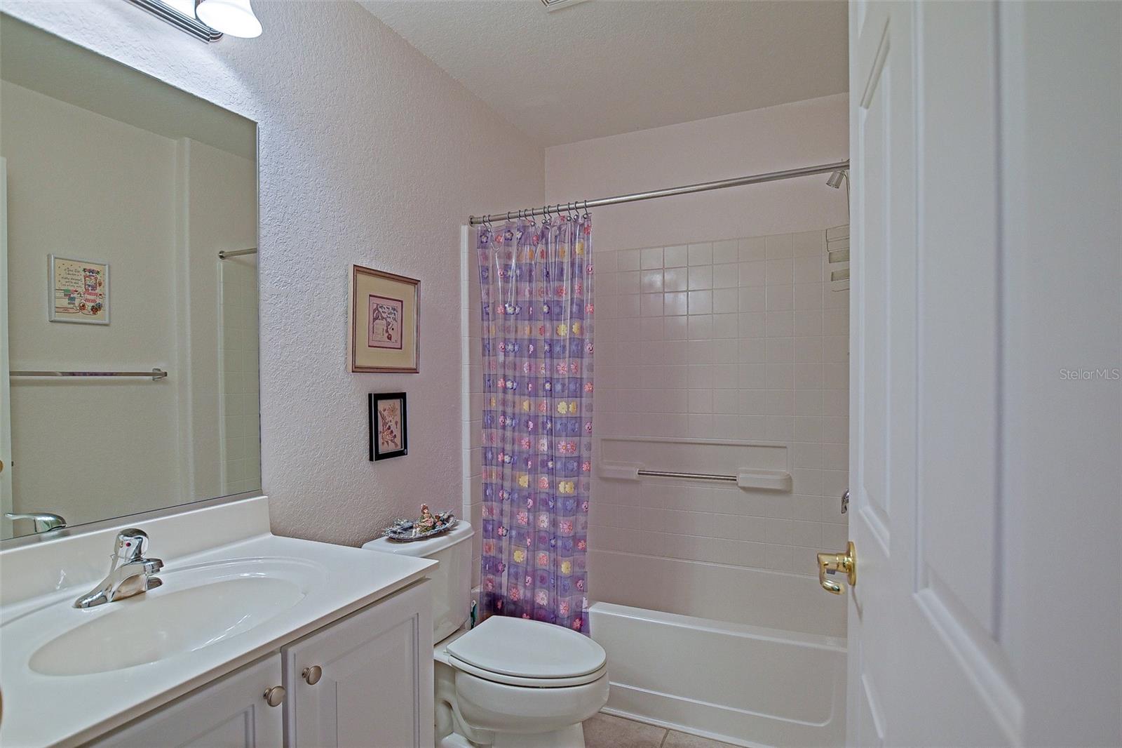 Popular floor plan, not too big and not too small, the Citation model boasts two bedrooms and two baths plus a den with French doors. The home only has carpet in the Primary bedroom and other rooms are tiled or have luxury vinyl laminate. The house has been re-piped. The roof was re-shingled in 2024 and has a new water heater. A plus is a whole house Brita pro water softener. The home is situated on a private lot in an area of the newest homes in the community and close to the North entrance. The second bedroom has a Murphy wall bed and extra storage cabinets that convey. The light kitchen cabinets have 36 in. uppers with crown molding and pull-out shelving and light appliances with newer refrigerator and dishwasher. There is a solar tube between the kitchen and living room for added light. The garage is extended to 25 ft and has pull down attic storage steps, a sink and has a screen enclosure and the screening was recently renewed. A spacious lanai is enclosed with glass windows and leads to an outside open patio. Driveway, sidewalk and lanai have a painted finish. The entertainment center, dining room set and master bedroom furniture can convey with purchase if desired. Don't miss this great home which that has only one owner and is well maintained.