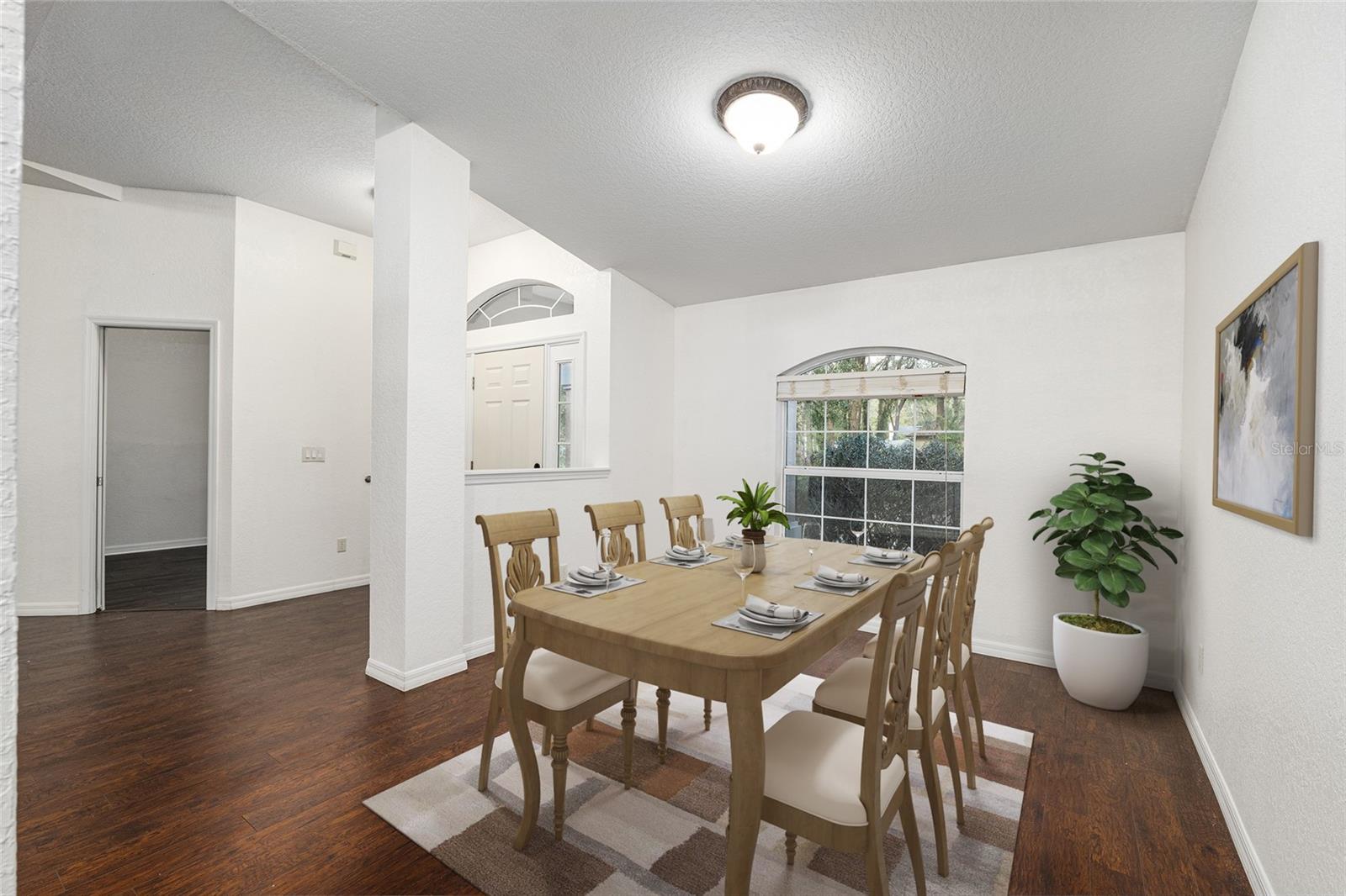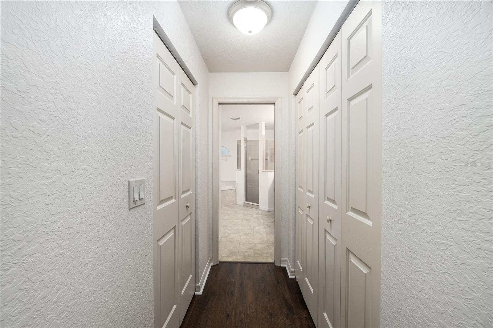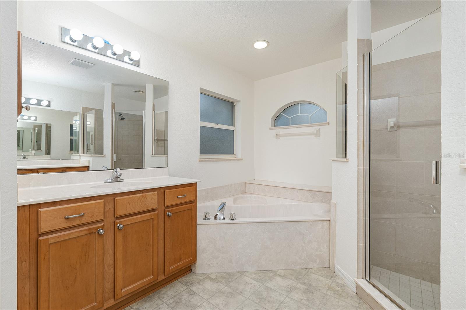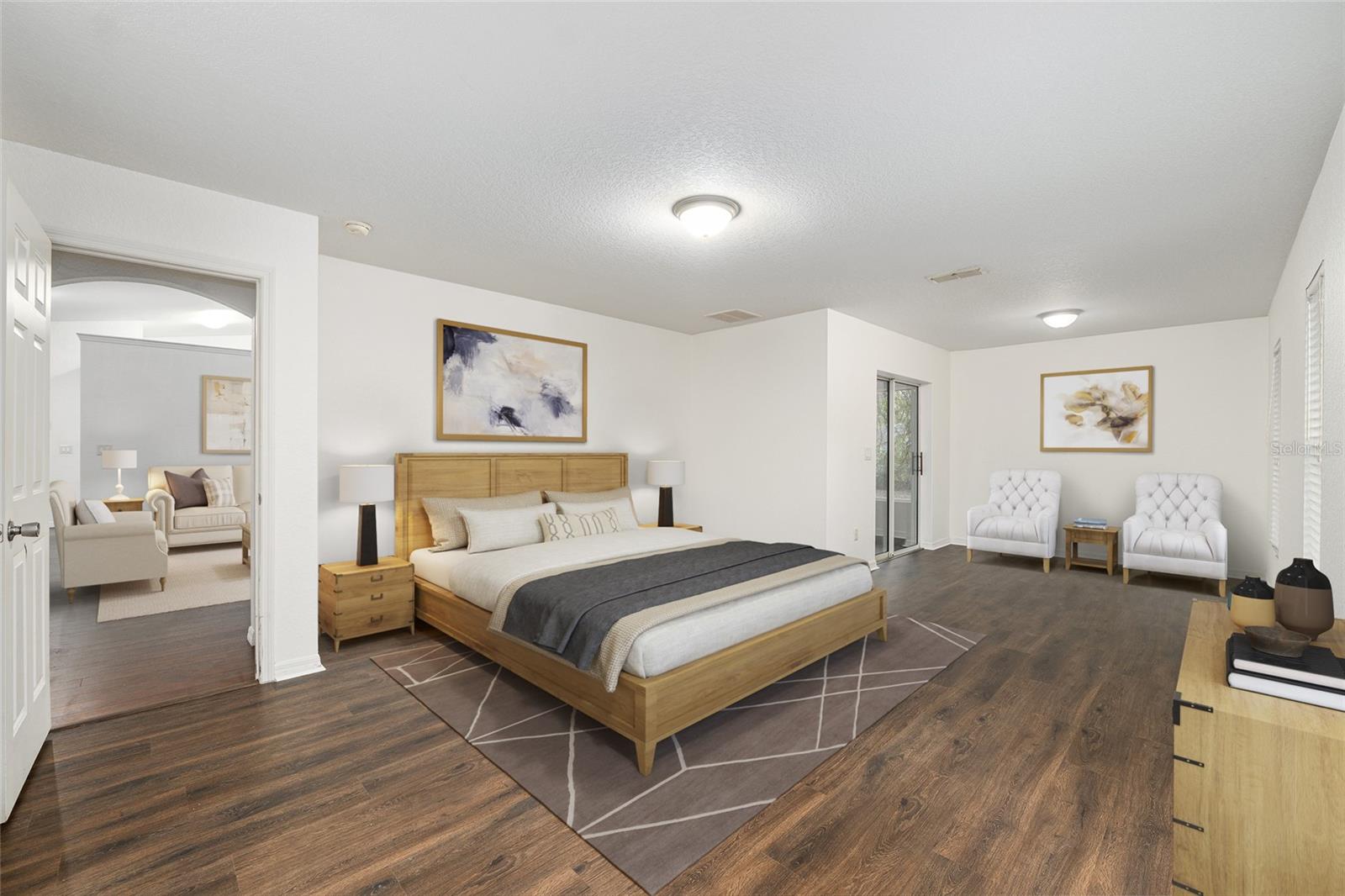 Beautiful 4-bedroom, 2.5-bath home nestled in the private and conveniently located La Casta Estates. With only one entrance in and out and NO HOA, this rare community offers both privacy and accessibility—just minutes from The Villages, Belleview, Ocala, and the interstate. Step inside to an open living room with high ceilings and a sliding glass door leading to the screened lanai, creating a bright and inviting atmosphere. The split floor plan offers added privacy, with the spacious primary suite tucked just off the living room. The suite features a private lanai entrance, 3 additional windows, 2 closets (including a walk-in), and an ensuite bath complete with dual sinks, marble countertops, a marble soaking tub, tiled walk-in shower, and linen closet. The heart of the home is the kitchen, offering wood cabinetry, a large pantry, stainless steel range, microwave, and dishwasher, with convenient access to the separate dining room. At the back of the home, the family room features high ceilings, lanai access, and a half bath with a marble vanity and exterior door—ideal for outdoor entertaining. The 4th bedroom is located at the front of the home with a pocket door, closet, and large front-facing window—perfect for a guest room, office, or flex space. Two additional bedrooms and a full bath with marble vanity and tiled tub/shower are privately situated off the family room. Additional upgrades include Pergo flooring throughout excluding bathrooms, fresh interior paint, gutters on the front and back of the home, a new roof (2023), laundry room with Samsung washer/dryer, mature landscaping providing ample shade, emergency handpump on well, and utility sink in garage. Don’t miss your opportunity to own this beautifully maintained home in one of the area’s hidden gems!