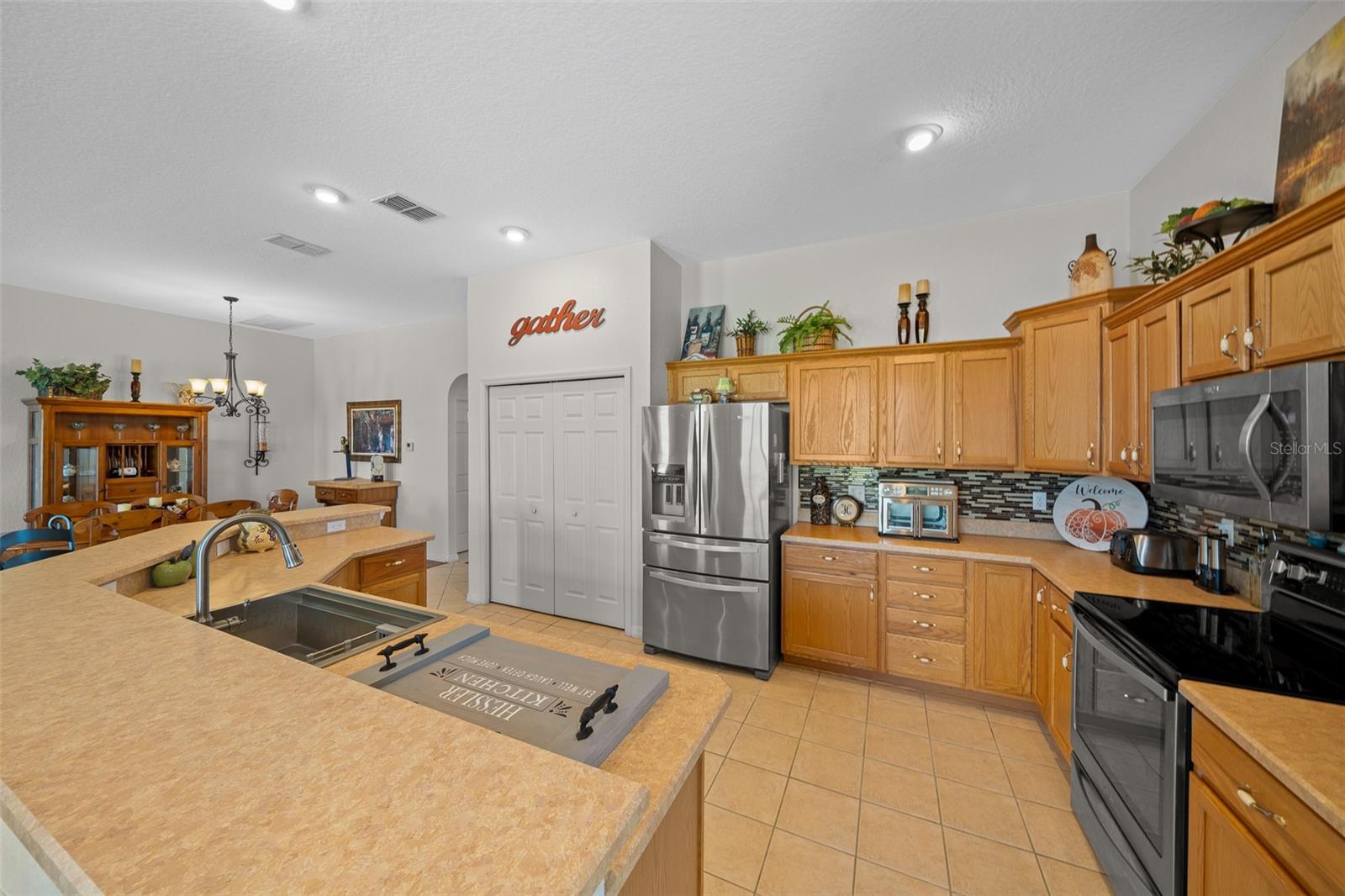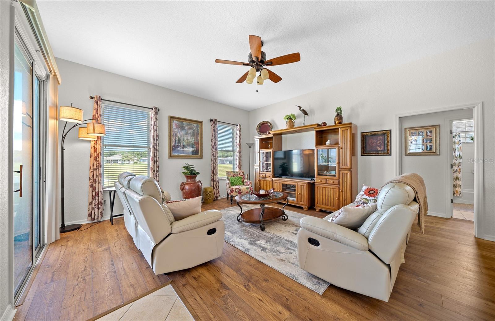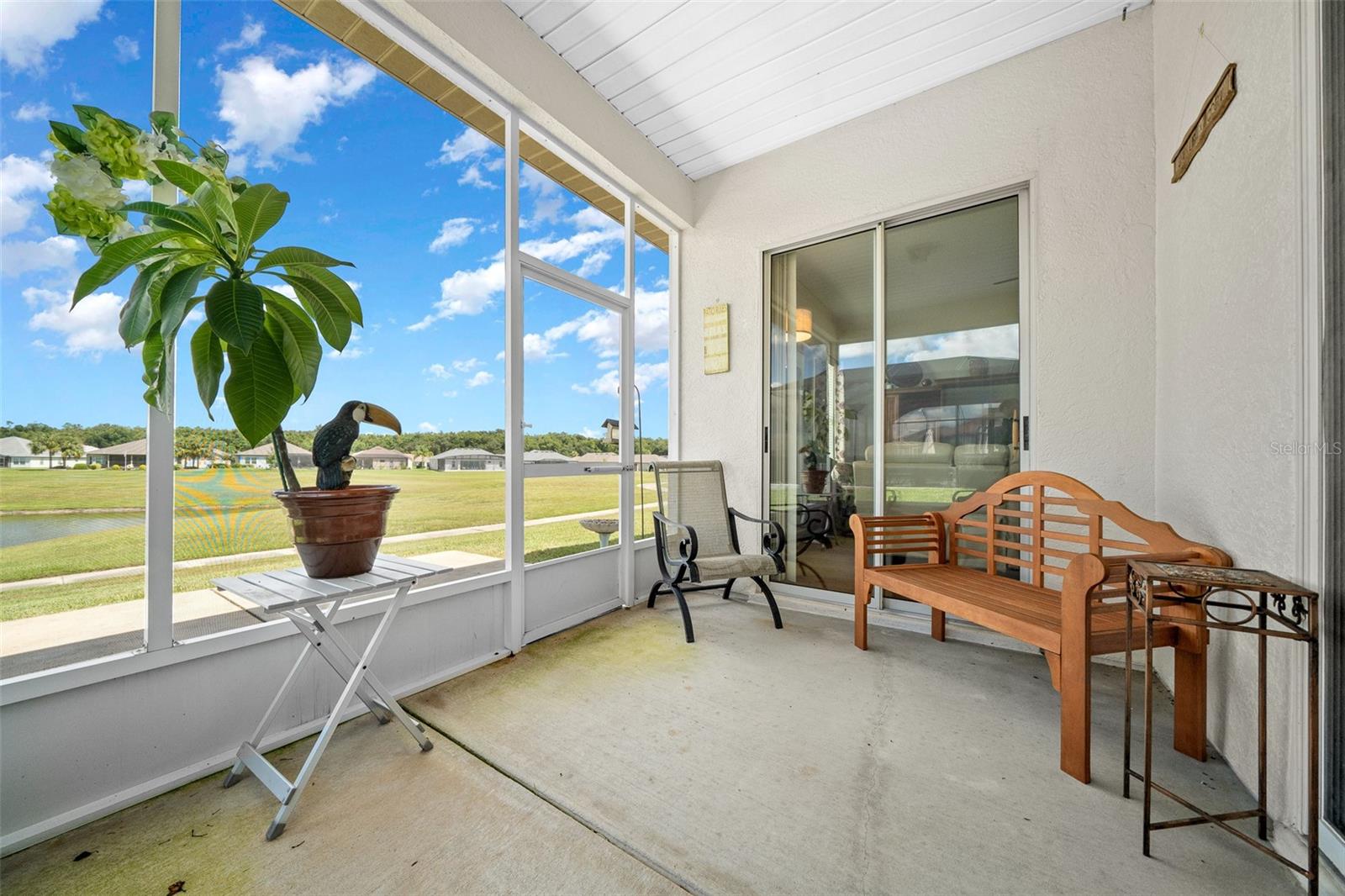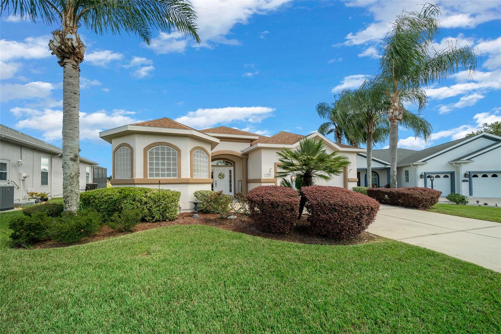 Welcome to your dream home in the gated 55 + community of Stonecrest. This stunning, move-in ready 3-bedroom, 2-bathroom residence is nestled in a serene cul-de-sac, offering both privacy and tranquility. The spacious layout features a large kitchen with abundant cabinet space, for a culinary enthusiasts and entertaining guests. Enjoy the airy feel of ten-foot ceilings throughout the home, enhancing the sense of space and light. The expansive master bedroom serves as a private retreat, complete with ample closet space and natural light. You'll appreciate the convenience of a 2-car garage, providing extra storage to keep your home organized. Step outside to your screened lanai, where you can relax while taking in picturesque views of the pond on your premium lot. As part of the Stonecrest community, you’ll have access to incredible amenities, including 18 holes of golf, four pools (two of which are heated), tennis, pickleball, fitness center and much more with a vibrant community atmosphere. This beautiful home combines comfort, elegance, and an active lifestyle. With a new roof in 2020, don’t miss the opportunity to make it yours!