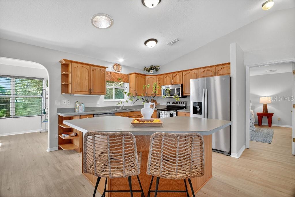 Custom Built 3/2 with large fenced yard in Orange Blossom subdivision. Home features open concept with new luxury vinyl flooring and fresh paint inside and out of home. Home also has 6 solar tubes and solar powered roof vent system. Home is wired for a generator. New garage door and countertops with full price offer