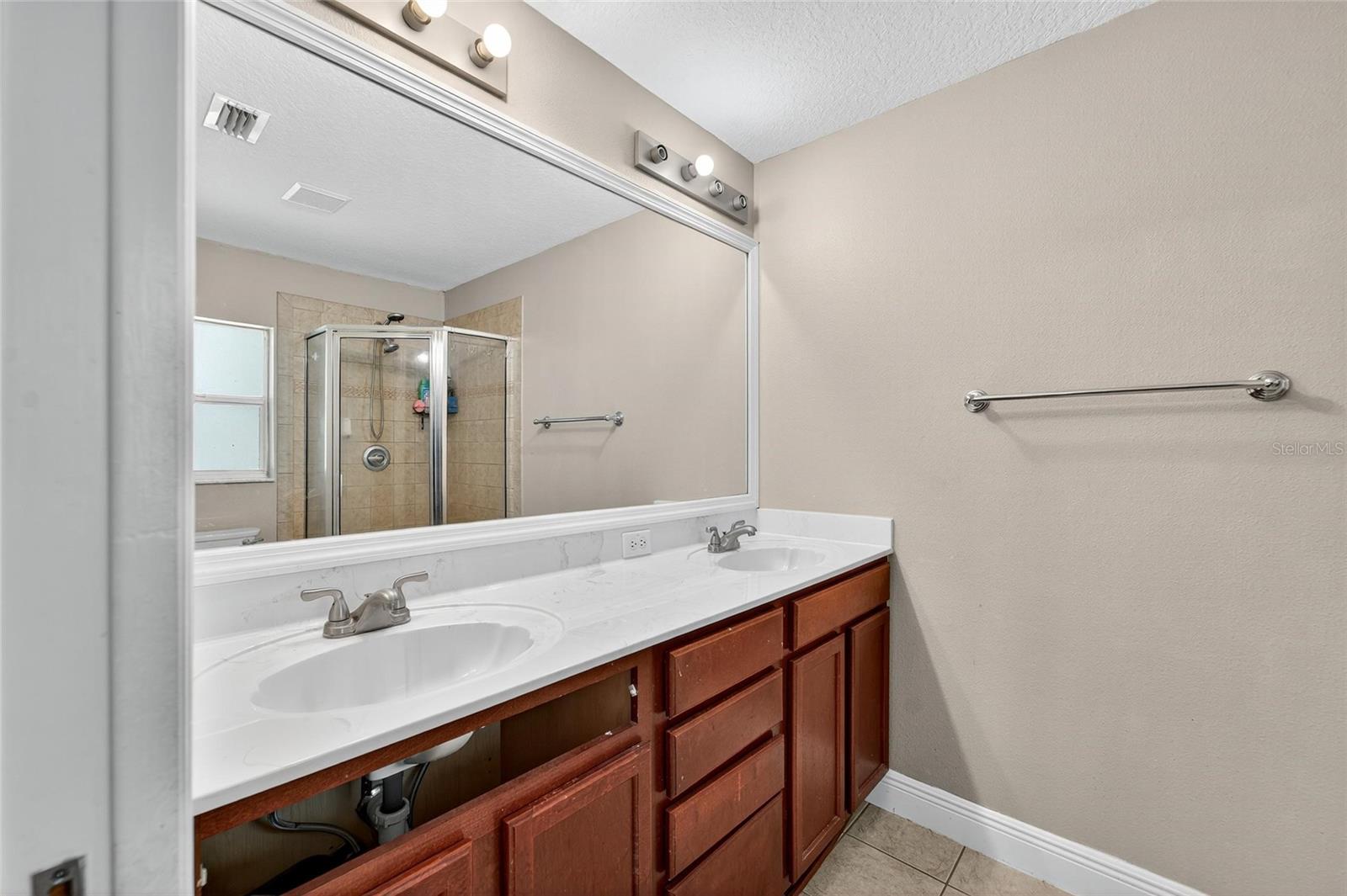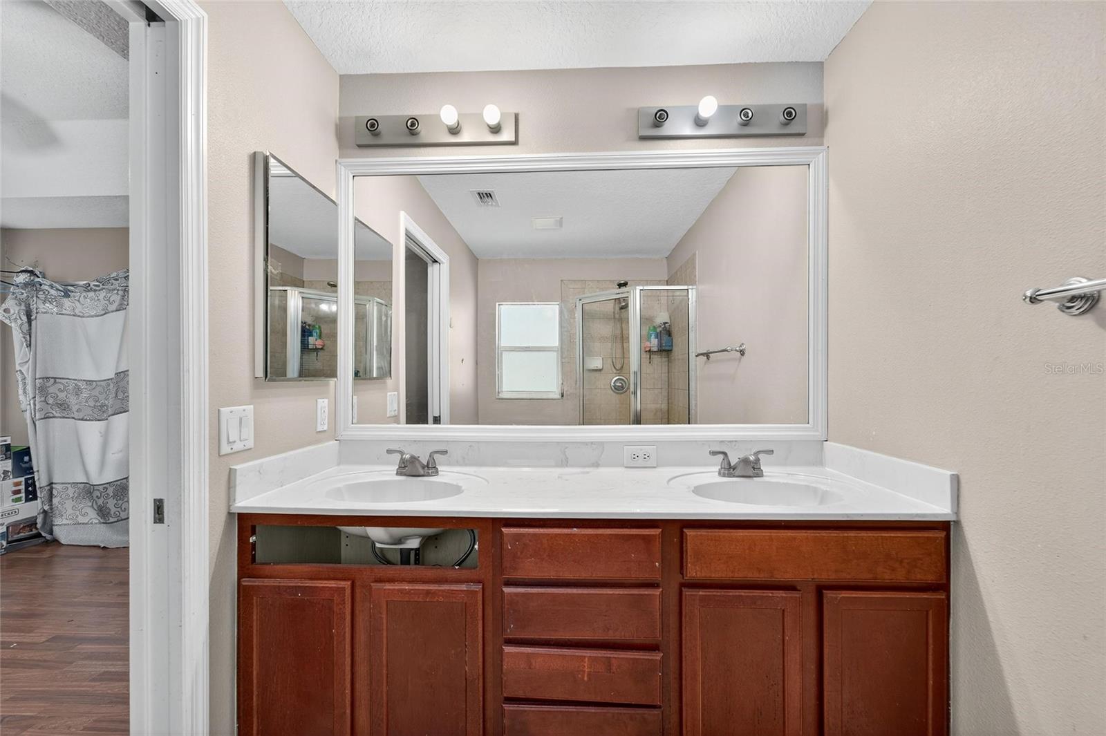 Beautiful 3 bedroom starter home in Summerfield neighborhood close to Hwy 42. NEW neutral 2 tone paint throughout. Living room/dining room combo features gorgeous wood floors. Attached tile kitchen includes matching appliances, and plenty of cabinet space. Master bedroom offers walk in closet, exit to patio, and en-suite bathroom including dual sinks and glass shower. Screened in patio overlooks fenced backyard with mature trees. Perfect spot to sit back and relax at the end of the day!! A must see!