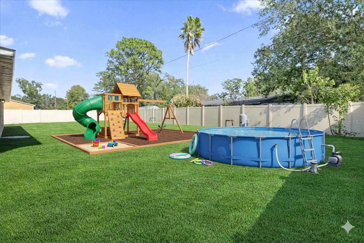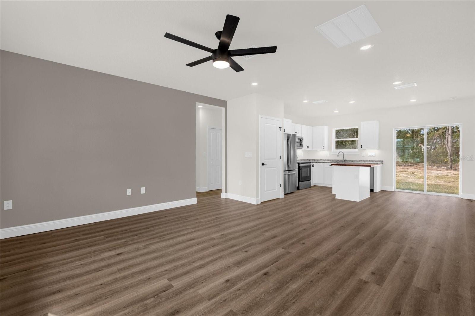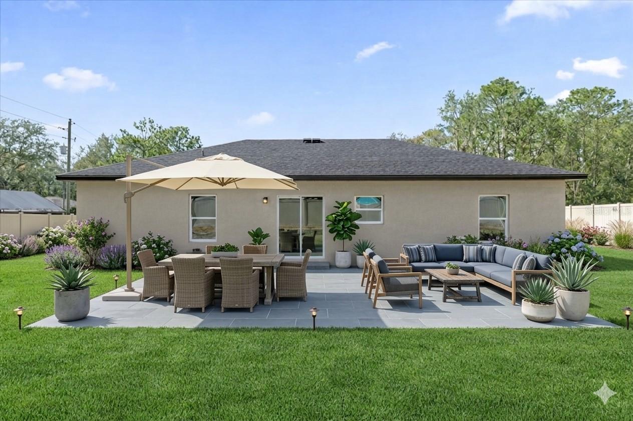 Under contract-accepting backup offers. One or more photo(s) has been virtually staged. HOW WOULD YOU LIKE TO LIVE ACROSS THE STREET FROM THE VILLAGES IN A BRAND-NEW HOUSE ON OVERSIZED LOT, BUT WITH NO HOA? Experience life without HOA restrictions, providing you with privacy, tranquility, and the freedom to enjoy your outdoor space to the fullest. This stunning home features a functional yet stylish layout with luxury detailed finishings throughout. The expansive backyard is ideal for outdoor entertaining, gardening, or simply relaxing in your private oasis. With a brand-new roof, energy-efficient A/C, and water heater—all installed in 2025—this property offers peace of mind and low maintenance for years to come. Step inside to discover an open concept family room and dining area adorned with luxury vinyl flooring and elegant granite countertops everywhere. The chef’s kitchen is a culinary delight, featuring solid wood doors, refrigerator, stove, dishwasher, and microwave—all included—making meal prep effortless. The master suite boasts a HUGE closet and a luxurious bathroom with glass shower doors and custom wall tiles, providing a spa-like retreat after a long day. Additional highlights include a utility laundry room attached to the garage which includes washer & dryer, and an epoxy-floored 2-car garage that offers ample parking for cars, golf carts, and storage. The huge backyard provides endless possibilities for outdoor activities, family gatherings, or a custom garden—perfect for those seeking space and flexibility. The Villages offers vibrant town squares like Spanish Springs and Lake Sumter Landing just minutes away. Enjoy the Florida lifestyle with over 50 golf courses, recreation centers, and a multitude of social events that make this community truly exceptional. Discover the perfect harmony of modern comfort, natural beauty, and vibrant community living. This exceptional new construction home won’t last long—schedule your private tour today and make this remarkable residence yours! Your ideal Florida lifestyle begins here. Act now—your new home awaits! For qualified prospects, the seller is also offering OWNER-FINANCING & a LEASE TO PURCHASE option, if either of these best suit your needs.