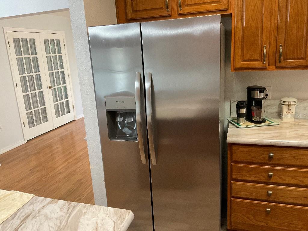 ***** List Price per SqFt is near lowest in Spruce Creek South.***** Spruce Creek South, 55+ Gated Golf Course Community just 2 miles north of The Villages. This 2/2/2 PALM III is the expanded Palm model with features 1, 878 sf of living space. From the tiled floor front porch, enter the open living, dining area, volume ceilings with knockdown finish, elegant crown molding and chair rail. The kitchen is perfect for those who love to cook and entertain, open countertop to the dining room and just the right amount of counter and cupboard space. At the opposite end of the kitchen is a separate dining area and beyond that space is the laundry room with closet storage and and access to the oversized garage which sports 24' depth for longer vehicles. This split bedroom home offers 2 bedrooms, both with walk in closets. The primary bedroom has an ensuite bath, with walk in shower, toilet and linen closet separate from vanity area and walk in closet. French doors open to the Florida room with flooring from the dining room and overlooks a very private fenced rear yard. There is also a pass through window from the kitchen to the Florida room. Just beyond the Florida room is a screened room with elite roofing. The guest bedroom has easy access to the guest bath and offers privacy. This home was built in 2003, the roof was replaced in 2022.. The driveway sports a designer finish with a matching finish on the paved walk way that goes from the drive way to the rear screened lanai door and is covered by roof overhang. The Community Center, exercise facilities, saunas, dance and exercise classes, social activities, billiards, library are nearby. Access to shopping, physicians, pharmacies, and restaurants! Roof 2022 HVAC 2015. Kitchen Counters: 2024. Hot water tank: 2022. Refrigerator: 2023. Stove: 2024. Inside re-painted in 2023.