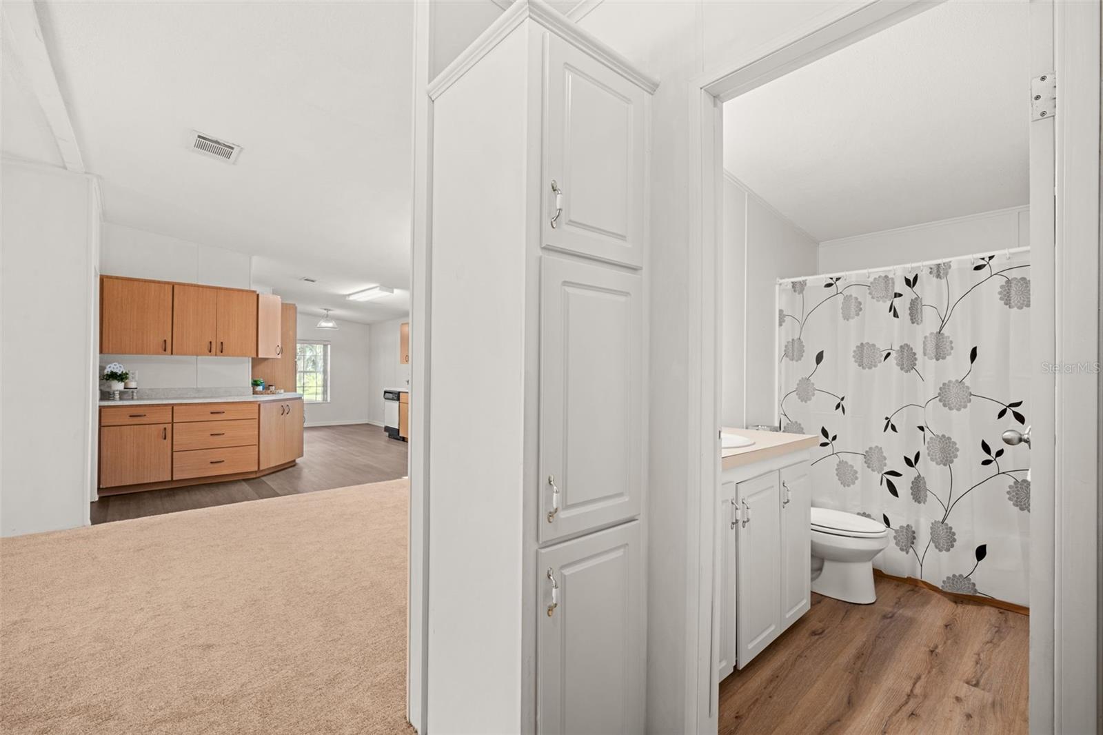 One or more photo(s) has been virtually staged. Bring your vision to 5.65 peaceful acres in Sumterville! Tucked just off S US 301 you will arrive through a white brick entranceway and follow the circular paved drive beneath a canopy of mature oaks. This home offers a comfortable base for country living with room to spread out. Inside, the home offers bright, inviting spaces including a clean galley-style kitchen with abundant cabinetry, fresh paint, and a lovely window overlooking the yard. Open living/dining concept, with a split bedroom layout, and practical spaces for everyday living. Outdoors, the acreage is dotted with beautiful oak trees and offers endless potential invites gardens, animals, a workshop, or extra parking for boats, trailers, and equipment—use the land your way. Enjoy the convenience of a central Sumter location with straightforward access along US 301 to everyday services, shopping, and major commuter routes. Whether you update the existing home, hold as a rental, or plan for future improvements, this property delivers a hard-to-find combination of acreage, accessibility, and potential.