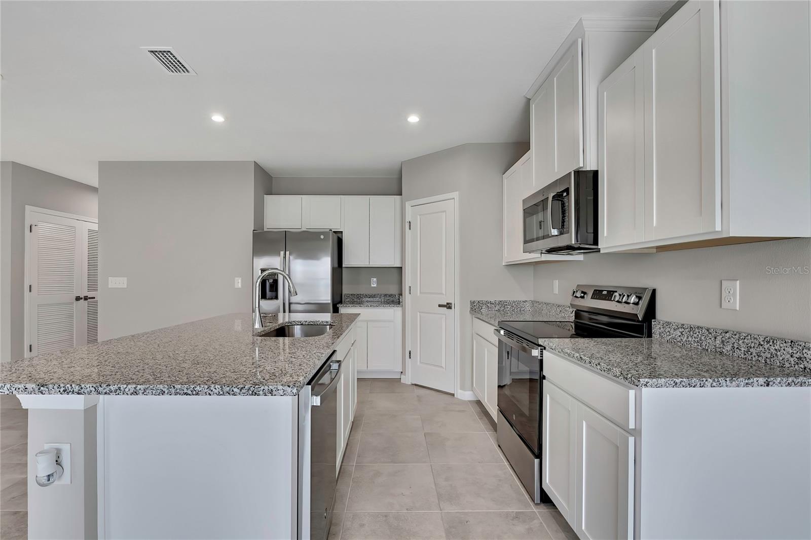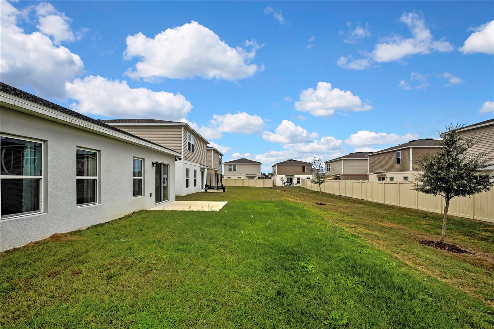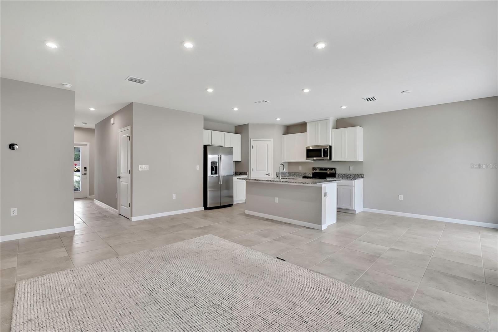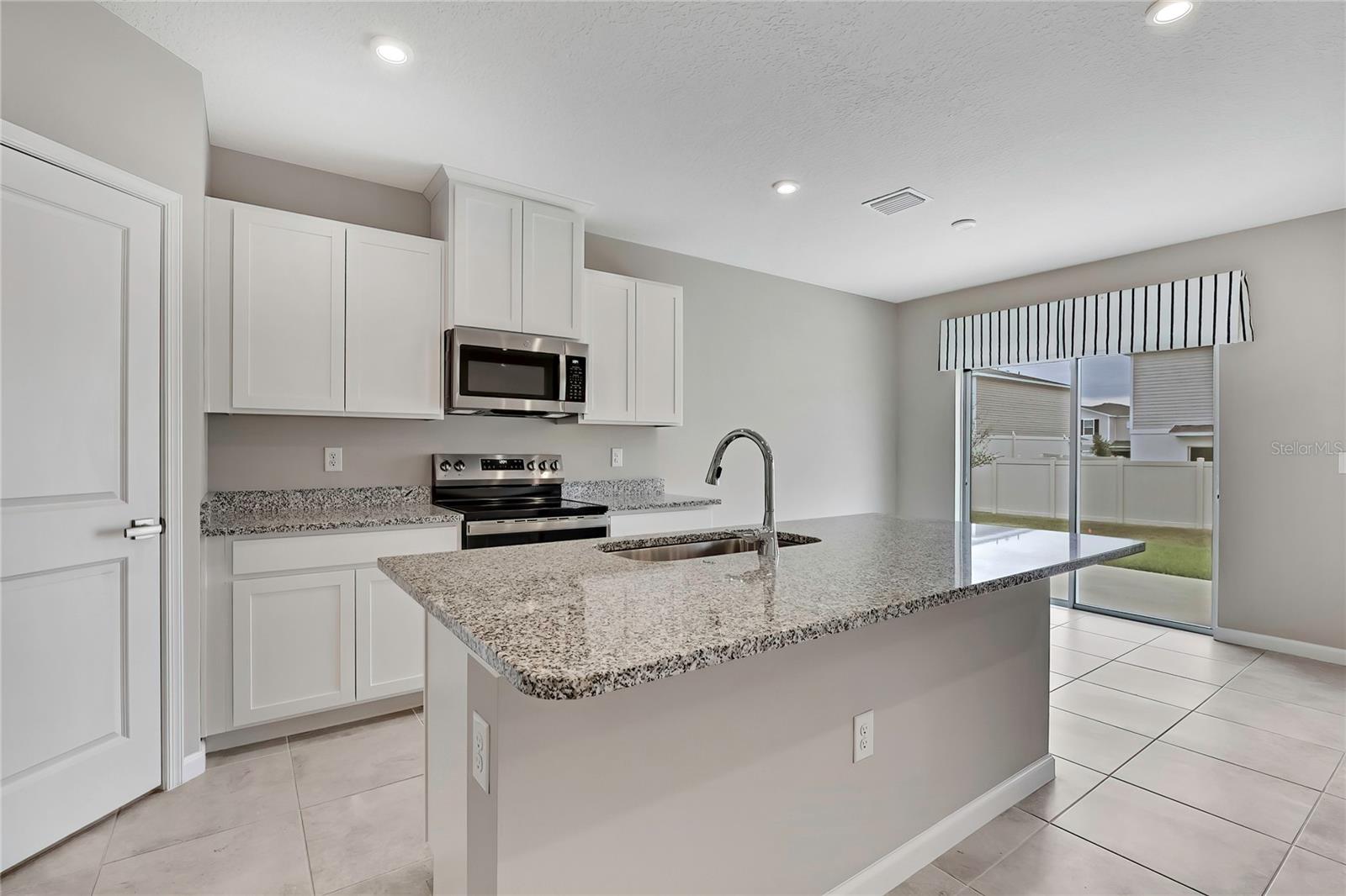 Discover single-level living and laid-back Florida comfort at 1691 Nebraska Loop—a bright, thoughtfully designed model home for the builder until November 2025, never lived in. Set in the heart of Sumterville and built in 2024 by Ryan Homes, this beautifully maintained 3-bedroom, 2-bath residence offers 1,450 sq ft of open living space and combines contemporary style with functional comfort in a friendly, up-and-coming community. As the community’s former model home, it features upgraded touches throughout, including extra power outlets in the garage, LED recessed ceiling lighting, and additional exterior power outlets. Step through the welcoming covered entryway into an inviting foyer that flows effortlessly into the expansive living area. Oversized windows and sliding glass doors fill the space with natural light, creating an open, airy atmosphere that’s perfect for both entertaining and day-to-day comfort. The living room transitions seamlessly into the dining space and kitchen, allowing for a true open-concept experience. The kitchen is a standout feature of the home, offering generous granite counter space, an oversized island with a stainless-steel sink, crisp shaker-style cabinetry, and sleek stainless-steel appliances including a built-in microwave, smooth-top range, dishwasher, and side-by-side refrigerator. The layout keeps the family chef connected to the living and dining areas, and the clean, neutral finishes complement any style of décor. The split-bedroom design provides privacy and flexibility for families, guests, or a home office. The primary suite is tucked away at the back of the home and serves as a peaceful retreat, featuring plush carpeting, two large windows overlooking the backyard, and a spacious walk-in closet. The ensuite bath includes a long double-sink vanity with modern fixtures and a large step-in tiled shower, offering both comfort and practicality. Three additional bedrooms are located toward the front of the home and share a well-appointed second full bathroom. The laundry area is conveniently equipped with a NEW washer and dryer! Outside, a spacious backyard bordered by vinyl fencing offers plenty of room for outdoor relaxation, gardening, play areas, or future enhancements. The rear sliding doors open to a concrete patio that’s perfect for enjoying quiet mornings or Florida sunsets. Located within Sumter Villas, this growing community offers a welcoming neighborhood feel along with convenient access to everyday essentials. Outdoor recreation enthusiasts will enjoy nearby Lake Panasoffkee Recreation Park, featuring waterfront access, sports fields, and trails. Shopping, dining, medical facilities, and major routes including US-301, SR-50, and the Florida Turnpike are just minutes away, making travel, work commutes, and weekend adventures easy. Whether you’re enjoying the sunshine on your patio, exploring nearby parks, or simply relaxing in the comfort of home, this move-in-ready residence delivers a lifestyle of ease, comfort, and modern Florida living. Schedule your personal appointment today!