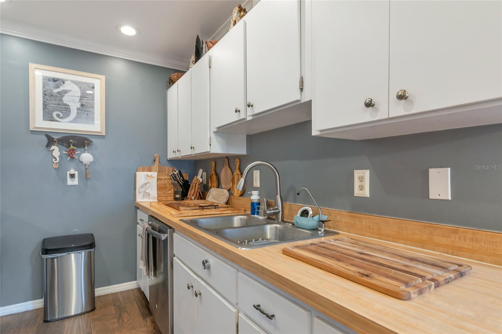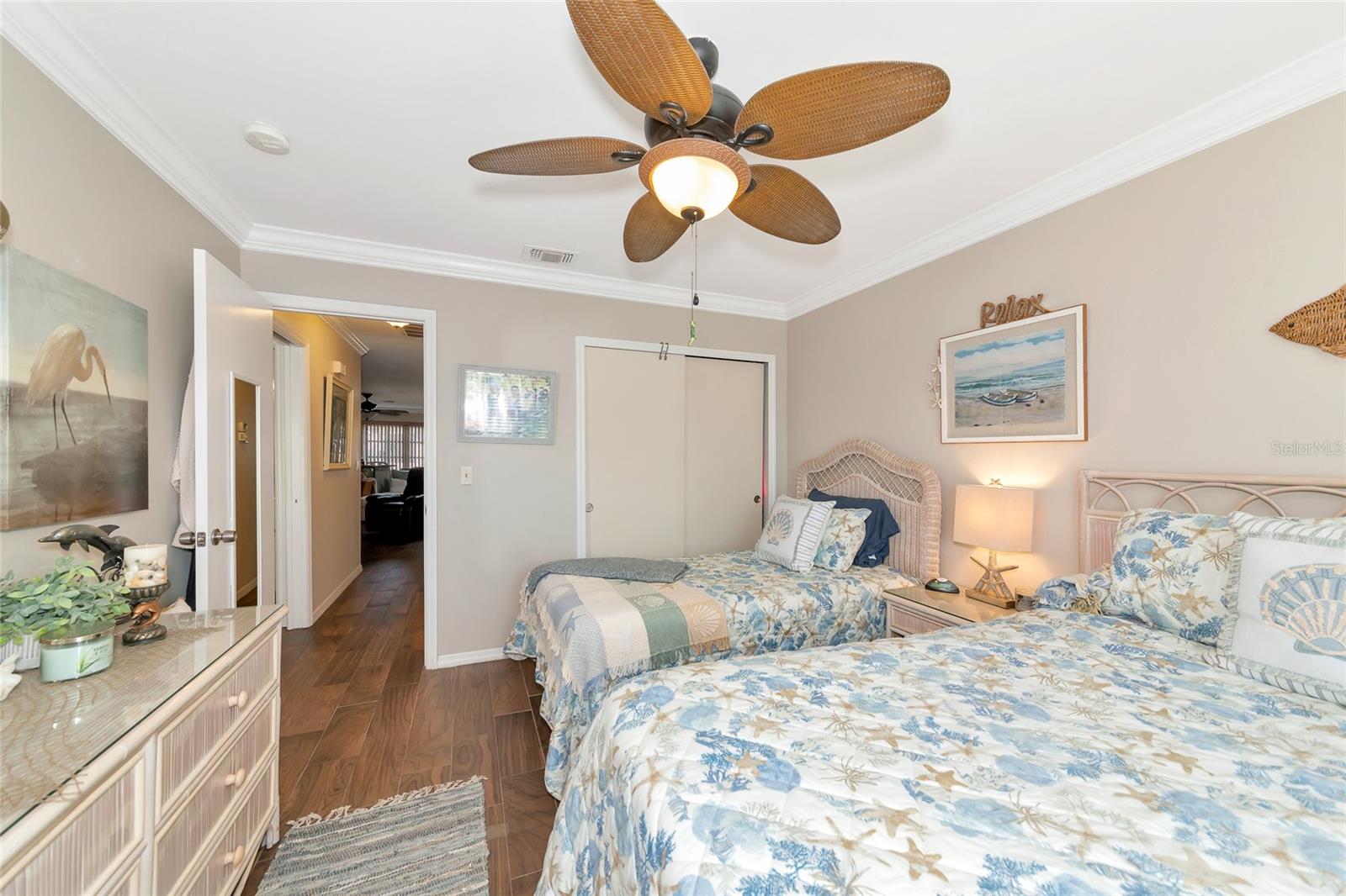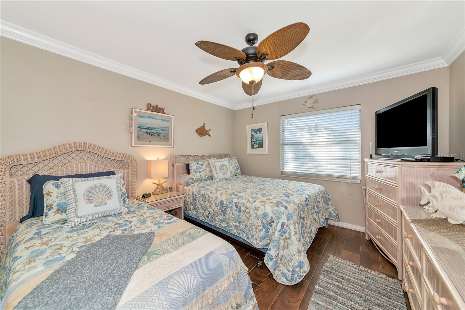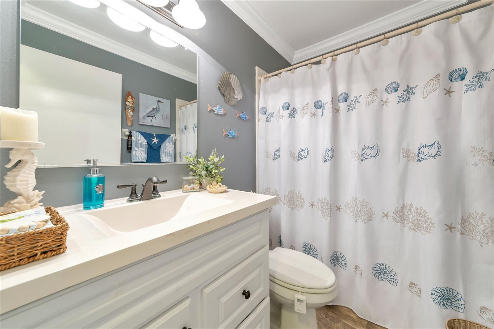 Welcome to Kings Point, a Beautiful 55+ Plus Community!!! This enchanting 2-bedroom, 2-bathroom home, combines comfort and style! When you first walk up this home you have an inviting screened in front porch—ideal for enjoying a cool glass of lemonade and unwinding. Step inside to a spacious living room and dining combo, ideal for intimate gatherings. Walls have been updated with crown molding throughout the home. The primary bedroom is complete with a walk-in closet and primary bathroom. The kitchen has all stainless steel appliances. As you head to the back of the home you will find a nice size sun/Florida room and can also be used as an office space. Don't miss out on this peaceful, well-designed home! The Community has fitness a center, swimming pool, golfing and so much more…. All your immediate needs are met in the area - hospital, medical facilities, churches, emergency squad, supermarkets, post office and restaurants. Golf carts are another means of transportation. Come join us and start enjoying your retirement years, Schedule your private viewing today!!! Please note that the Exterior is scheduled to be painted in April 2025 and that this is an Expanded HAMPTON Floorplan