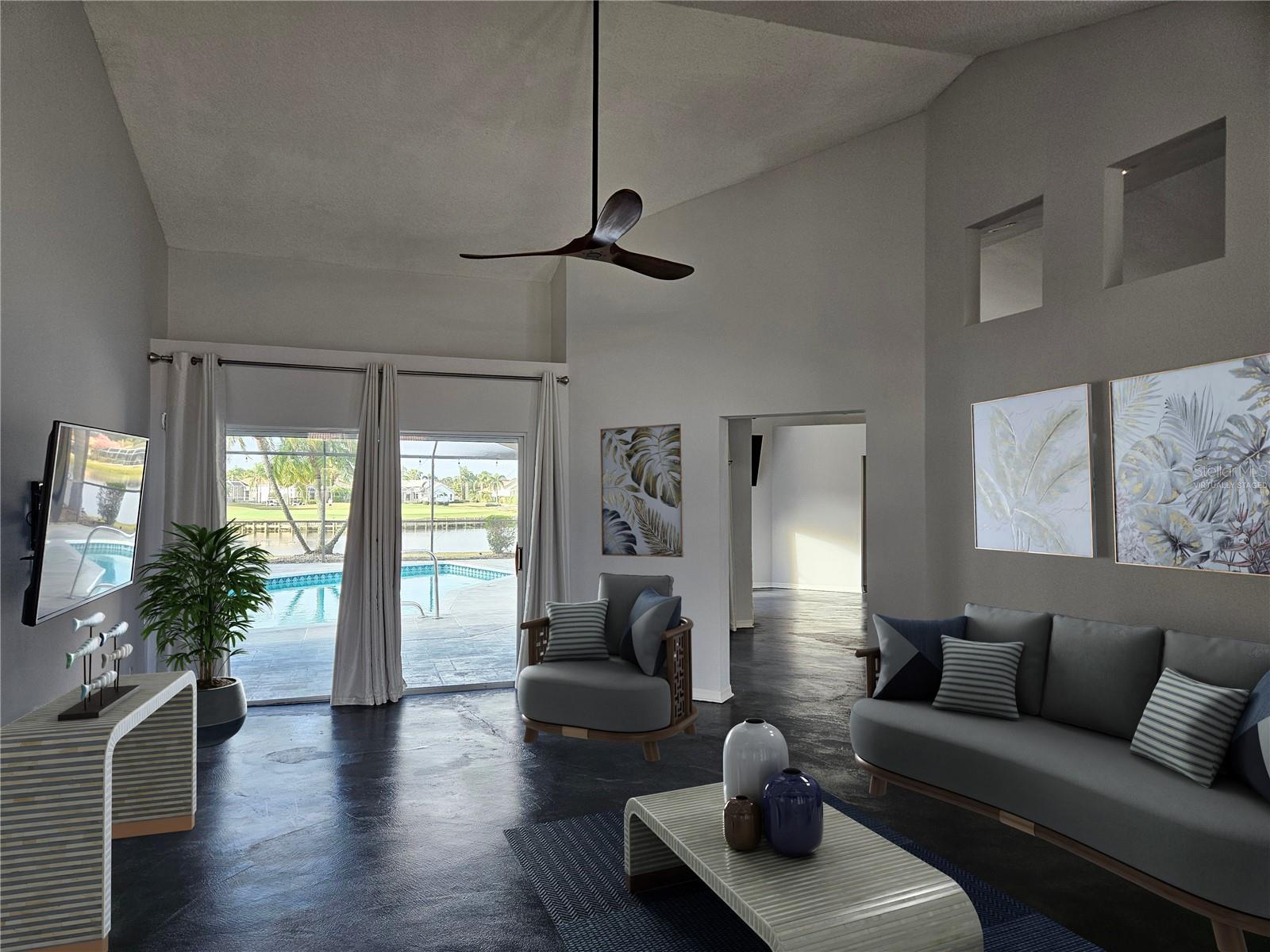 One or more photo(s) has been virtually staged. SELLER WILL REPLACE ROOF OR PROVIDE A CREDIT AT CLOSING! Great opportunity to own one of the most popular 3/2 split floorplans on a waterfront and golf course lot with one of the best views in Sun City Center. The light and bright home provides concrete floors throughout, living areas that open to the lanai and beautiful pool, a spacious open kitchen with a new oven and microwave, a breakfast bar and island and hurricane shutters. Plus - the entire house has been replumbed - an upgrade that new owners will not have to undertake. Each of the three bedrooms offers buyers different options. The primary bedroom opens onto the lanai and pool, includes double walk-ins, en-suite bath with double sinks, garden tub and separate shower and water closet. The second bedroom has another en-suite bathroom that leads to the lanai and pool and the third bedroom has built-in shelves providing an office/den option. The split bedroom plan ensures privacy for all occupants. The laundry room, with washer and dryer included, is located just off the kitchen and provides abundant cabinet and workspace and connects to the garage. The large 2-car garage has one wall of built-in storage. Plus . . . what makes this home really stand out, are the spacious screened lanai with outdoor kitchen, heated pool, outside portable hot tub, and the gorgeous view. The Sun City Center and Hillsborough County's Southshore areas provide an abundance of options for recreation, shopping, medical services, with three international airports with an hour's drive time. Sellers will also consider leasing the home annually, as well as a lease/purchase option for qualified potential buyers. Now's the time to start living the resort lifestyle in Sun City Center!