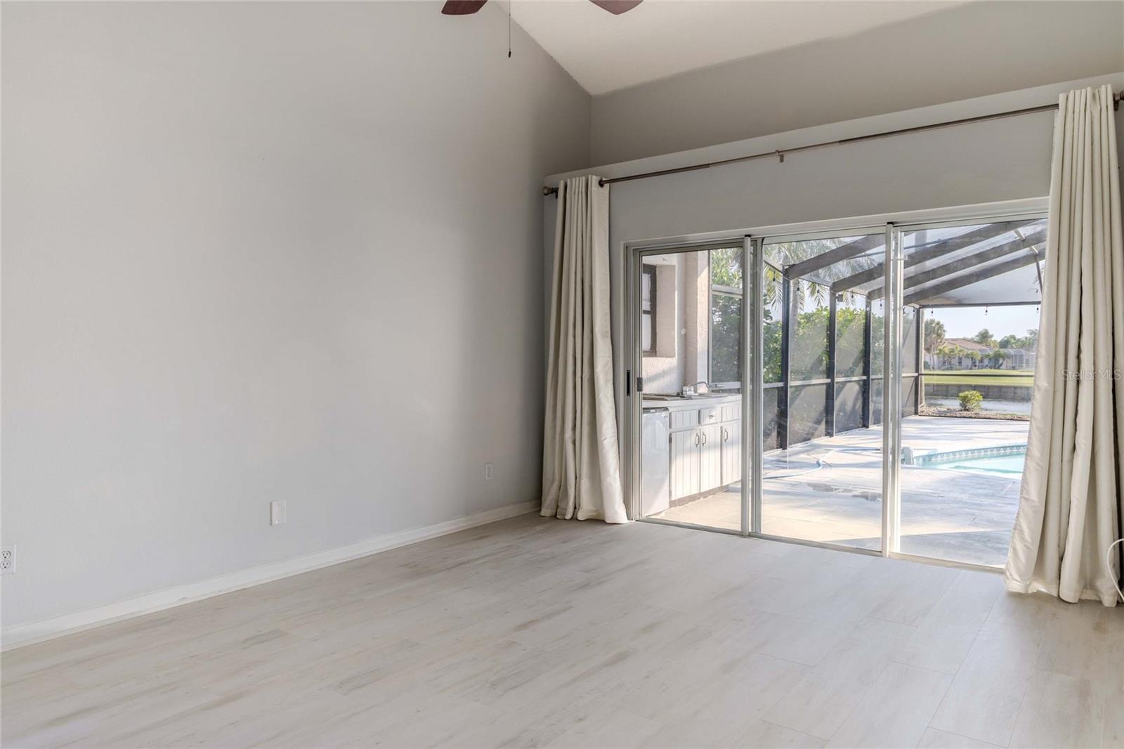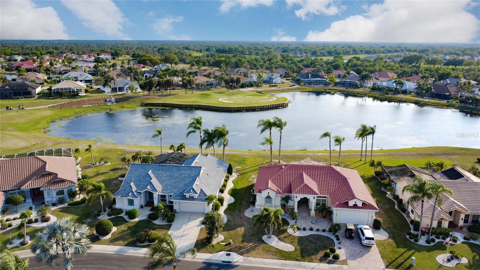 NEW TILE ROOF, NEW LUXURY VINYL FLOORING, NEW POOL HEATER - Great opportunity to own one of the most popular 3/2 split floor plans on a waterfront and golf course lot with one of the best views in Sun City Center. The light and bright home provides new luxury vinyl flooring throughout, living areas that open to the lanai and beautiful pool, a spacious open kitchen with beautiful wood cabinets, a new dishwasher, newer double oven and microwave, a breakfast bar and island. Plus - the house was replumbed in 2023, an upgrade that new owners will not have to undertake and has attached hurricane shutters for added safety. Each of the three bedrooms offers buyers different options. The primary bedroom opens onto the lanai and pool, includes double walk-ins, en-suite bath with double sinks, garden tub and separate shower and water closet. The second bedroom has another en-suite bathroom that leads to the lanai and pool, and the third bedroom has built-in shelves providing an office/den option. The split bedroom plan ensures privacy for all occupants. The laundry room, with washer and dryer included, is located just off the kitchen and provides abundant cabinets, laundry tub and workspace and connects to the garage. The large 2-car garage has one wall of built-in storage. Plus - what makes this home really stand out are the spacious screened lanai with outdoor kitchen, heated pool, outside portable hot tub, and the gorgeous view. In addition to your private pool and beautiful view from this home, owners also have access to all the facilities and amenities of the Sun City Center Master Association, including a state-of-the-art fitness center, indoor and outdoor pools, tennis courts, pickleball courts, lawn bowl greens, horseshoe pits, volleyball courts, dog parks and a billiards room. The Sun City Center and Hillsborough County's Southshore areas provide an abundance of additional options for recreation, shopping, medical services, with three international airports with an hour's drive time. Now's the time to start living the resort lifestyle in Sun City Center!