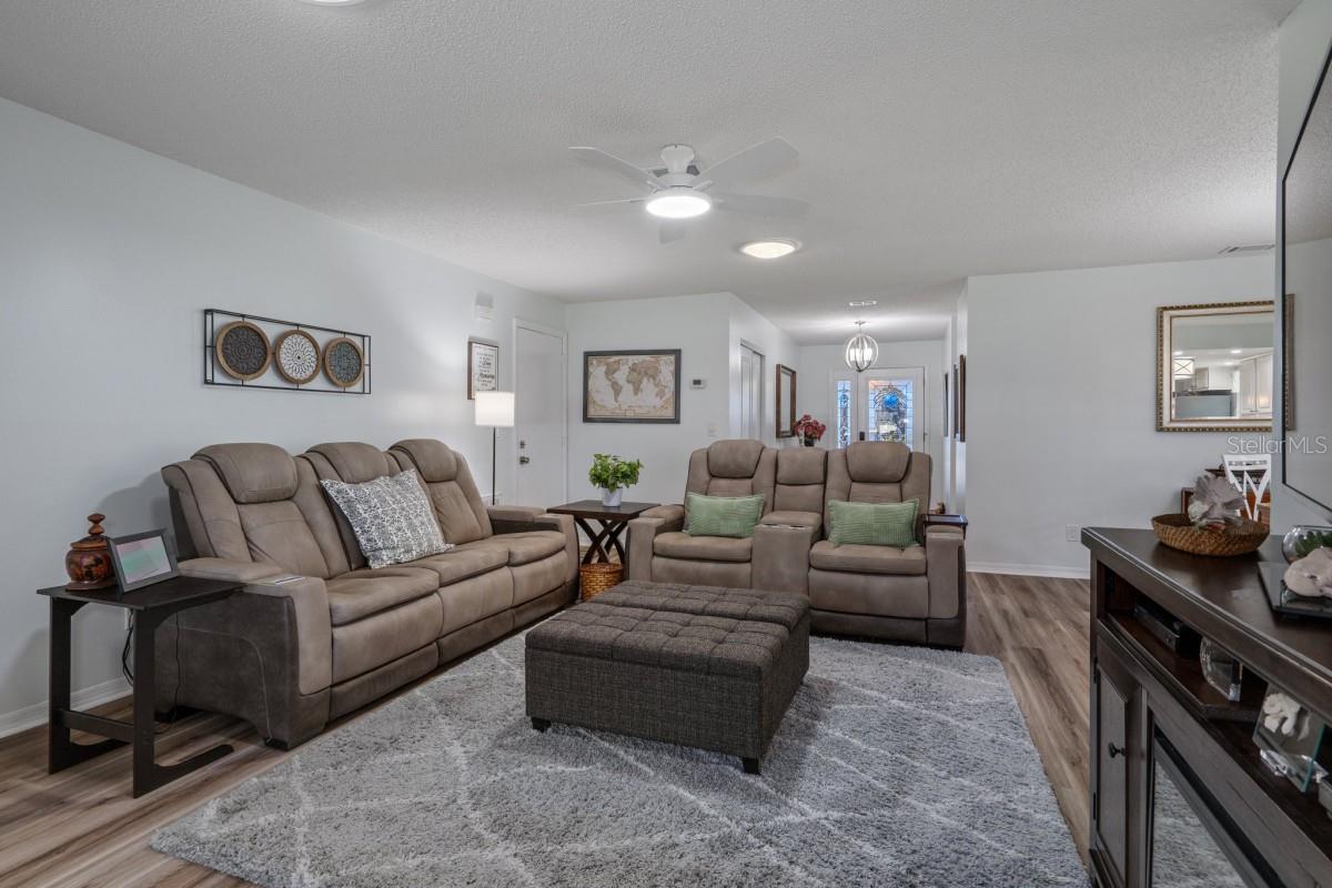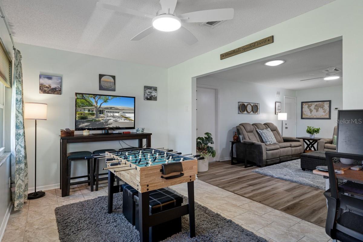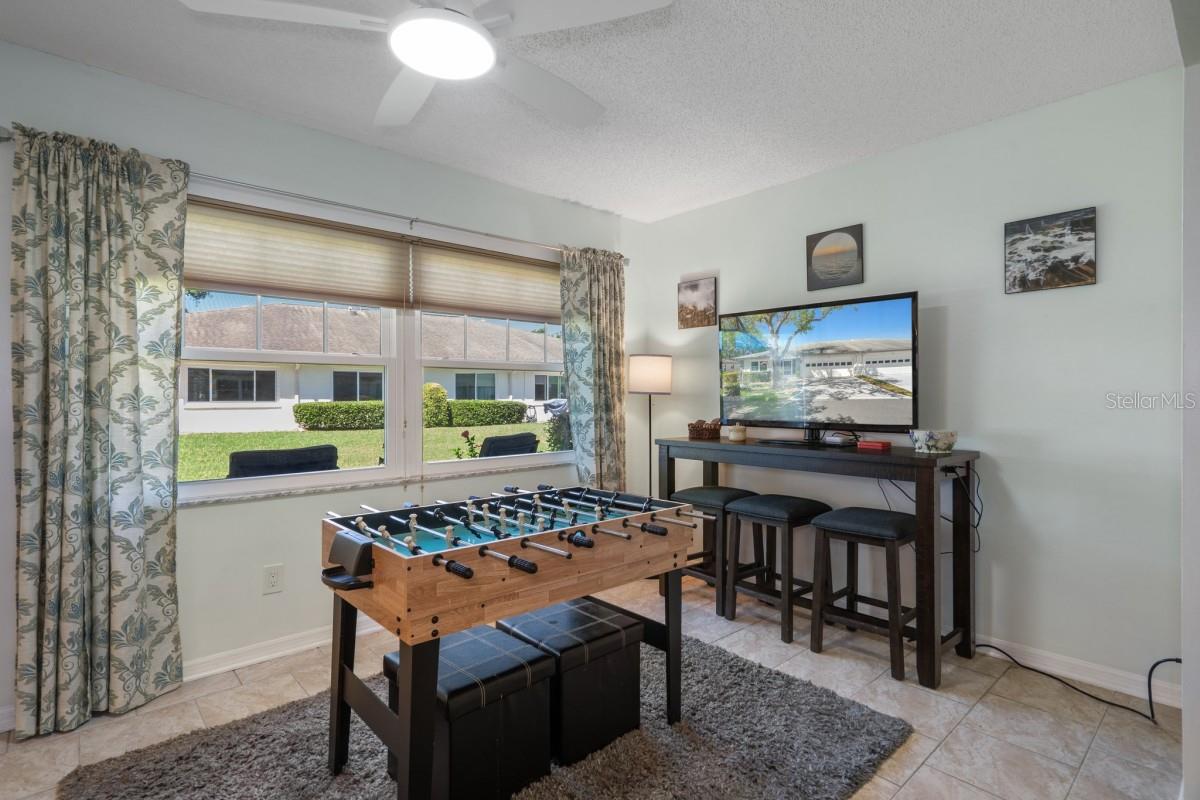 MOTIVATED SELLER. Welcome to this beautifully updated sunrise model, which has been well maintained. This residence offers a split floor plan that includes 1 master suite, 1 ensuite bathroom, 1 guest bedroom, 1 fully renovated (in 2024) guest bathroom, open living room, dining room, breakfast nook, as well as 4 solar tubes that provides a light-bright ambiance. The home has freshly painted walls (painted in 2024) and spacious living areas, including a large open living and dining room, perfect for entertaining family and friends, not forgetting the season-round Florida room. The kitchen received a complete update in 2024 with marble countertops, stainless steel appliances, and a stunning marble herringbone backsplash. The master suite serves as personal oasis, featuring a spacious walk-in closet and ensuite bathroom. The attached 2 car garage has a ceiling fan and built in cabinets for additional storage. Kings Point is a resort-style active retirement community, offering a range of amenities. These include 2 elegant clubhouses, an 850-seat Veterans Theater, 6 indoor and outdoor pools, hot tubs, a spa, RV and boat storage, tennis courts, 27-holes of golf, billiards, pickleball, state-of-the-art fitness centers, and over 50 unique social clubs, groups, organizations, and classes to keep you entertained year-round. You'll love the carefree way of life that Sun City Center has to offer!