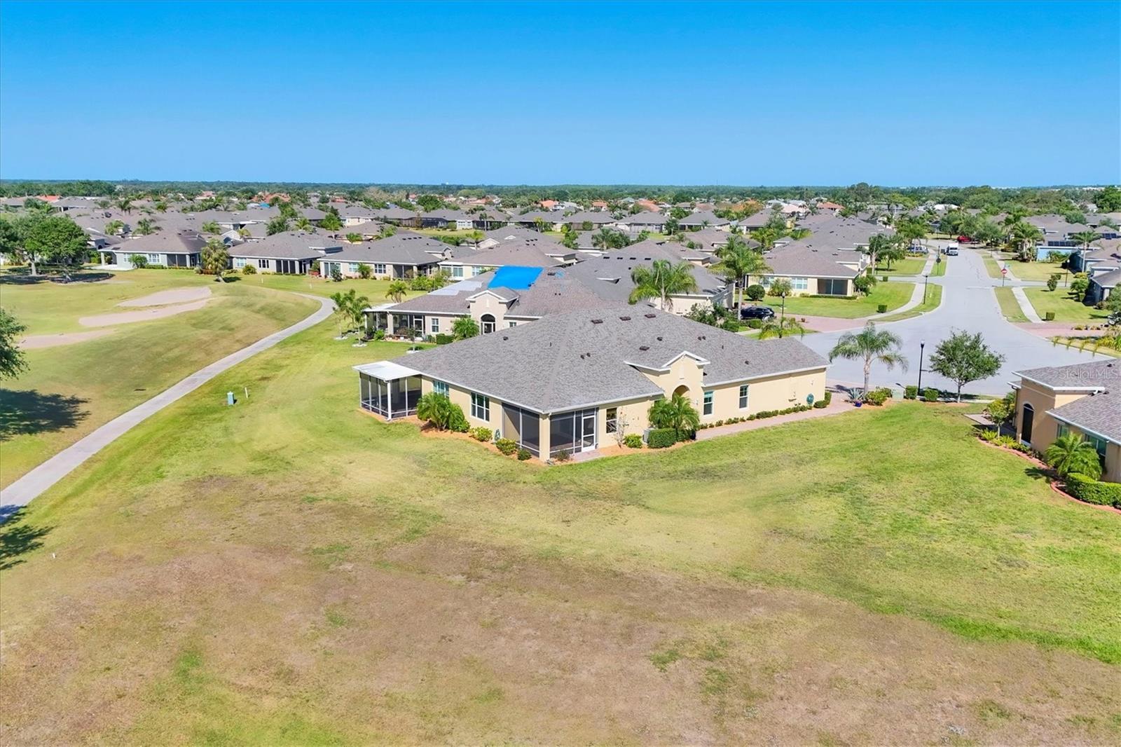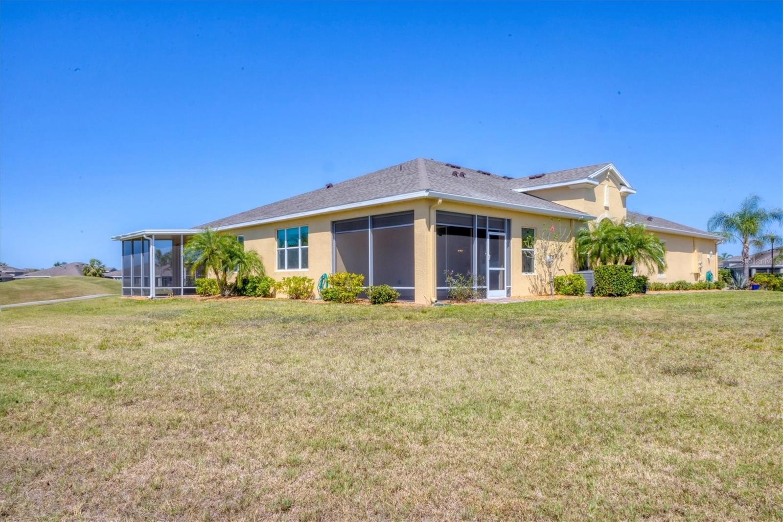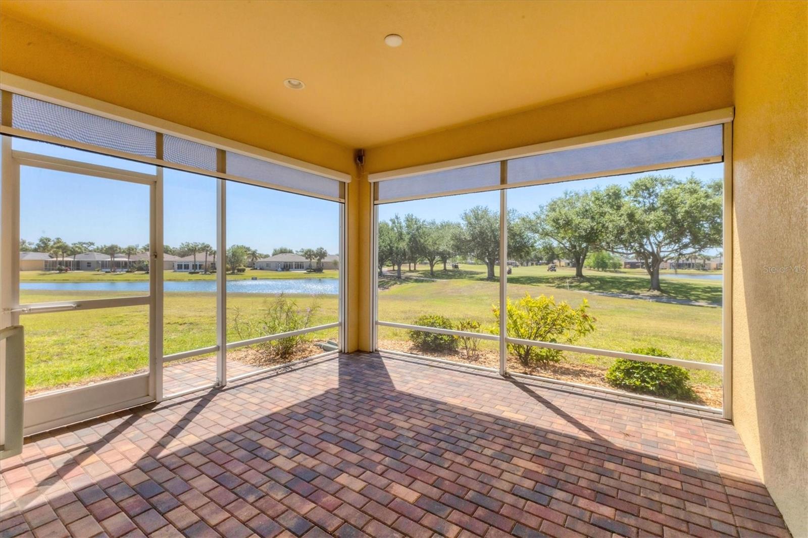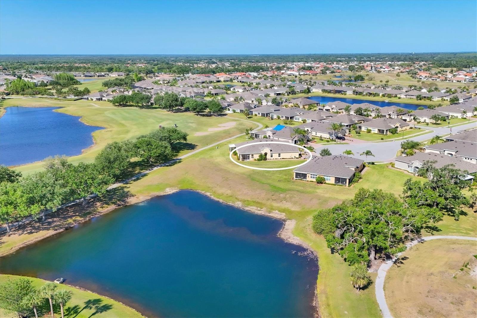 Welcome to your Dream Villa in the charming gated 55+ community of Verona in Sun City Center. This beautifully designed Buttonwood Model home located on a cul-de-sac, seemlessly blends modern elegance with comfortable living. This well maintained 3 bedroom, 2 bathroom home with a spacious 2 car garage has been lovingly cared for by the original owner who never had pets and is smoke-free. You can't help but notice as you walk up the oversized brick paved driveway how much distance is between you and your neighbor. When you step inside the home you will love the open floor plan with tall ceilings, neutral colors, 18" tile and plenty of natural light that create a warm, cohesive flow throughout. The kitchen, perfect for daily living and entertaining, is a chef's dream featuring solid white wood cabinets with crown molding, pull out drawers for pots and pans, granite countertops, pretty tile backsplash, upgraded stainless steel appliances, spacious island, and a large pantry with abundant storage. The well-equipped laundry room provides added convenience with ample storage and a counter for folding clothes. In the great room, you'll find a tray ceiling, sliding glass doors, and easy access to the large fully screened-in paver lanai that has BREATHTAKING WATER VIEWS overlooking two serene ponds and the RENAISSANCE Golf Course, an ideal spot to unwind and relax while enjoying the sunset and peaceful nature in your backyard retreat. The electric shades are an added feature allowing shade and privacy when needed. The owners suite is a tranquil escape located in the back of the home with amazing water views, complete with a tray ceiling and NEW laminate flooring (2023). The ensuite bathroom offers a spa-like ambiance, featuring double sinks, sleek glass-enclosed shower and a huge walk-in closet with plenty of space for all your personal belongings. The 2nd bedroom is on the opposite end of the home which has a pocket door to offer privacy and comfort. The 3rd bedroom has double glass doors with custom blinds that can also be used as an office/den. Additional features include a whole-home water softener, in-wall pest control system, 5 1/4" baseboards, security system and shutters which give the homeowner peace of mind. This Villa has many upgrades including a NEW Electric Water Heater (2021), NEW Roof (2022), Exterior Freshly Painted (2023), Disposal (2022), Kitchen Faucet & Drain (2024) and many more. Verona HOA has their very own heated pool and pool house and offers hassle free living covering lawn cutting, weeding, fertilization, and trimming of bushes and trees. Exterior upkeep is also included, with house painting every 7 years and routine roof replacements. Verona residents also have access to the incredible amenities at Club Renaissance with a resort-style heated pool with food and drink service, a private fine dining restaurant, and a 24 hour state of the art fitness center offering exercise classes, sauna, steam room and full-service spa, just to name a few. You'll also have the enjoyment of all the Sun City Center amenities, such as numerous social clubs, pickleball, a library, shopping, restaurants and so much more. This exceptional villa boasts Spectacular water views from every window in the home and truly offers the best of Florida living. This villa is move-in ready and waiting for you to call it HOME!