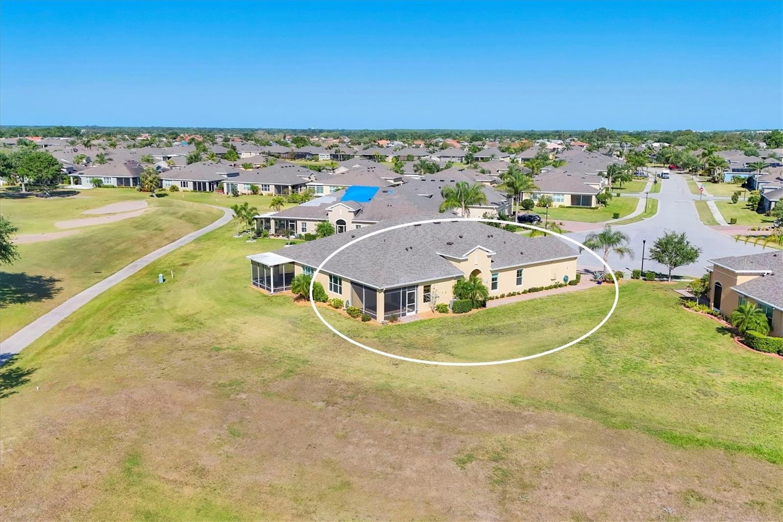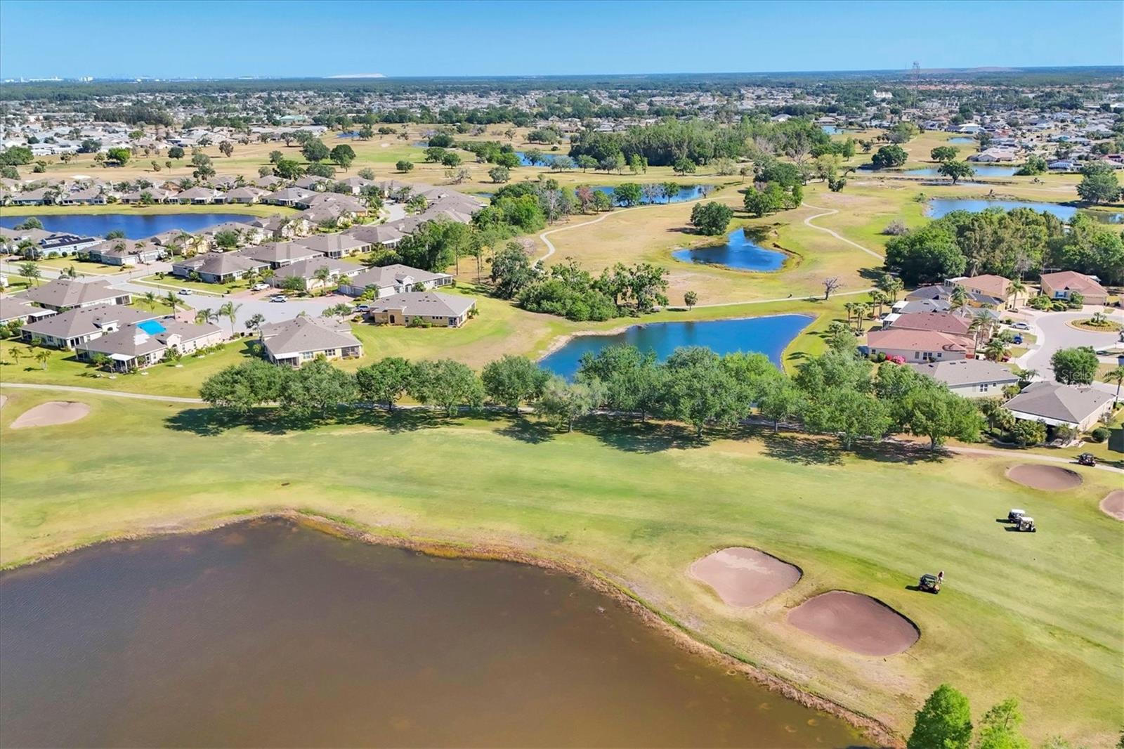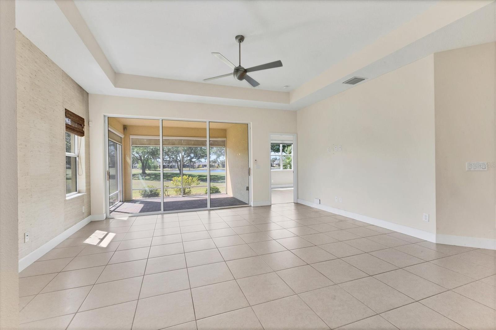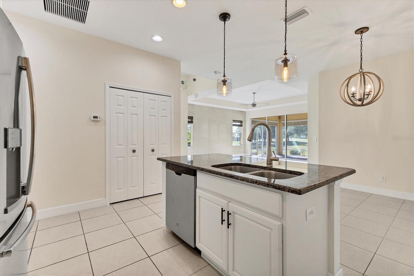 Welcome to your Dream Villa in the charming gated 55+ community of Verona in Sun City Center. This beautifully designed Buttonwood Model home located on a cul-de-sac, seemlessly blends modern elegance with comfortable living. This well maintained 3 bedroom, 2 bathroom home with a spacious 2 car garage has been lovingly cared for by the original owner who never had pets and is smoke-free. You can't help but notice as you walk up the oversized brick paved driveway how much distance is between you and your neighbor. When you step inside the home you will love the open floor plan with tall ceilings, neutral colors, 18" tile and plenty of natural light that create a warm, cohesive flow throughout. The kitchen, perfect for daily living and entertaining, is a chef's dream featuring solid white wood cabinets with crown molding, pull out drawers for pots and pans, granite countertops, pretty tile backsplash, upgraded stainless steel appliances, spacious island, and a large pantry with abundant storage. The well-equipped laundry room provides added convenience with ample storage and a counter for folding clothes. In the great room, you'll find a tray ceiling, sliding glass doors, and easy access to the large fully screened-in paver lanai that has BREATHTAKING WATER VIEWS overlooking two serene ponds and the RENAISSANCE Golf Course, an ideal spot to unwind and relax while enjoying the sunset and peaceful nature in your backyard retreat. The electric shades are an added feature allowing shade and privacy when needed. The owners suite is a tranquil escape located in the back of the home with amazing water views, complete with a tray ceiling and NEW laminate flooring (2023). The ensuite bathroom offers a spa-like ambiance, featuring double sinks, sleek glass-enclosed shower and a huge walk-in closet with plenty of space for all your personal belongings. The 2nd bedroom is on the opposite end of the home which has a pocket door to offer privacy and comfort. The 3rd bedroom has double glass doors with custom blinds that can also be used as an office/den. Additional features include a whole-home water softener, in-wall pest control system, 5 1/4" baseboards, security system and shutters which give the homeowner peace of mind. This Villa has many upgrades including a NEW Electric Water Heater (2021), NEW Roof (2022), Exterior Freshly Painted (2023), Disposal (2022), Kitchen Faucet & Drain (2024) and many more. Verona HOA has their very own heated pool and pool house and offers hassle free living covering lawn cutting, weeding, fertilization, and trimming of bushes and trees. Exterior upkeep is also included, with house painting every 7 years and routine roof replacements. Verona residents also have access to the incredible amenities at Club Renaissance with a resort-style heated pool with food and drink service, a private fine dining restaurant, and a 24 hour state of the art fitness center offering exercise classes, sauna, steam room and full-service spa, just to name a few. You'll also have the enjoyment of all the Sun City Center amenities, such as numerous social clubs, pickleball, a library, shopping, restaurants and so much more. This exceptional villa boasts Spectacular water views from every window in the home and truly offers the best of Florida living. This villa is move-in ready and waiting for you to call it HOME!
