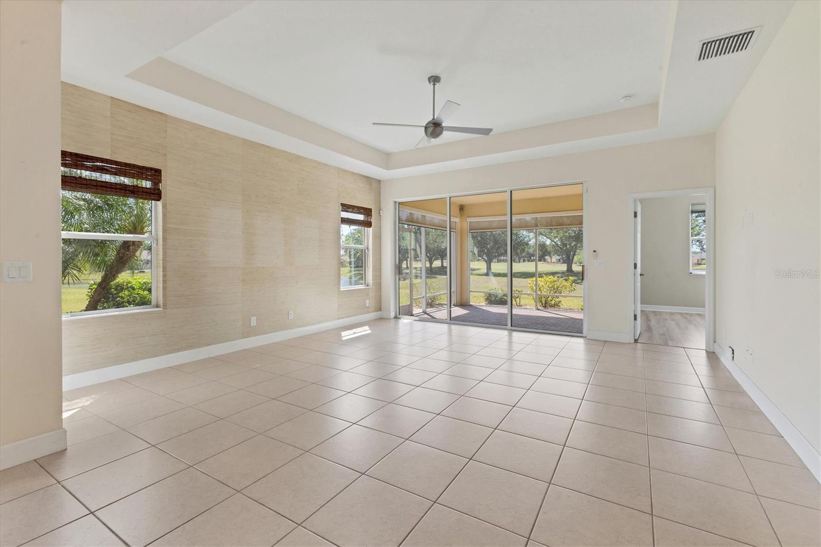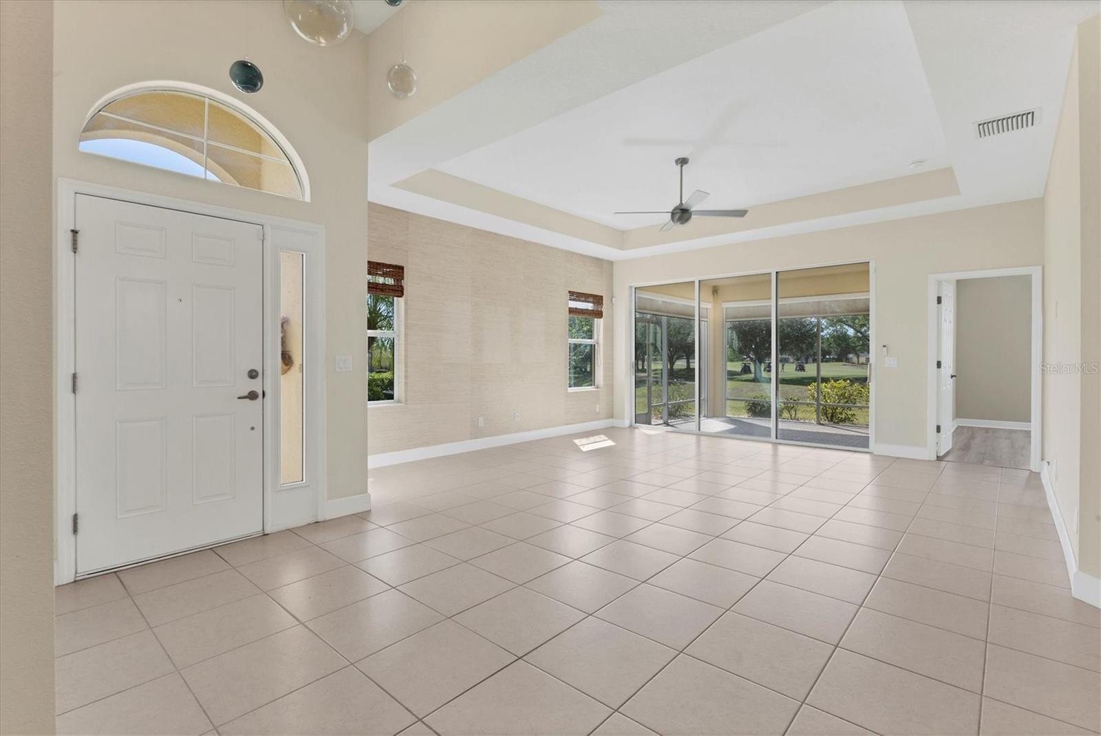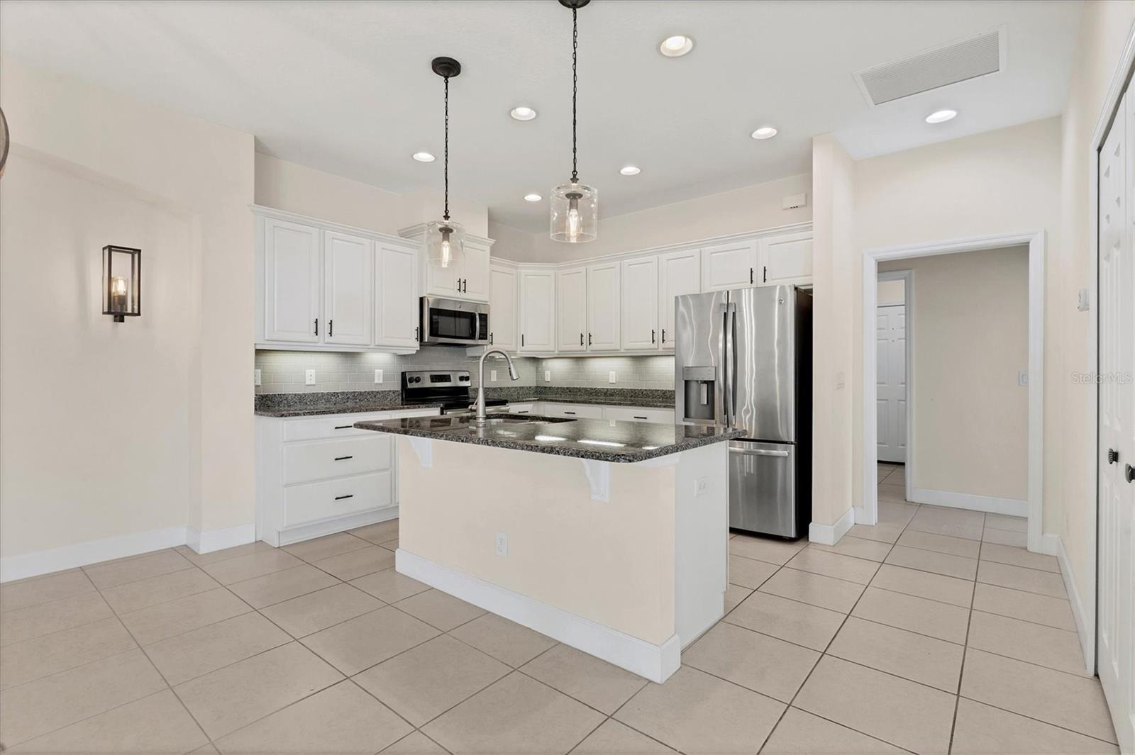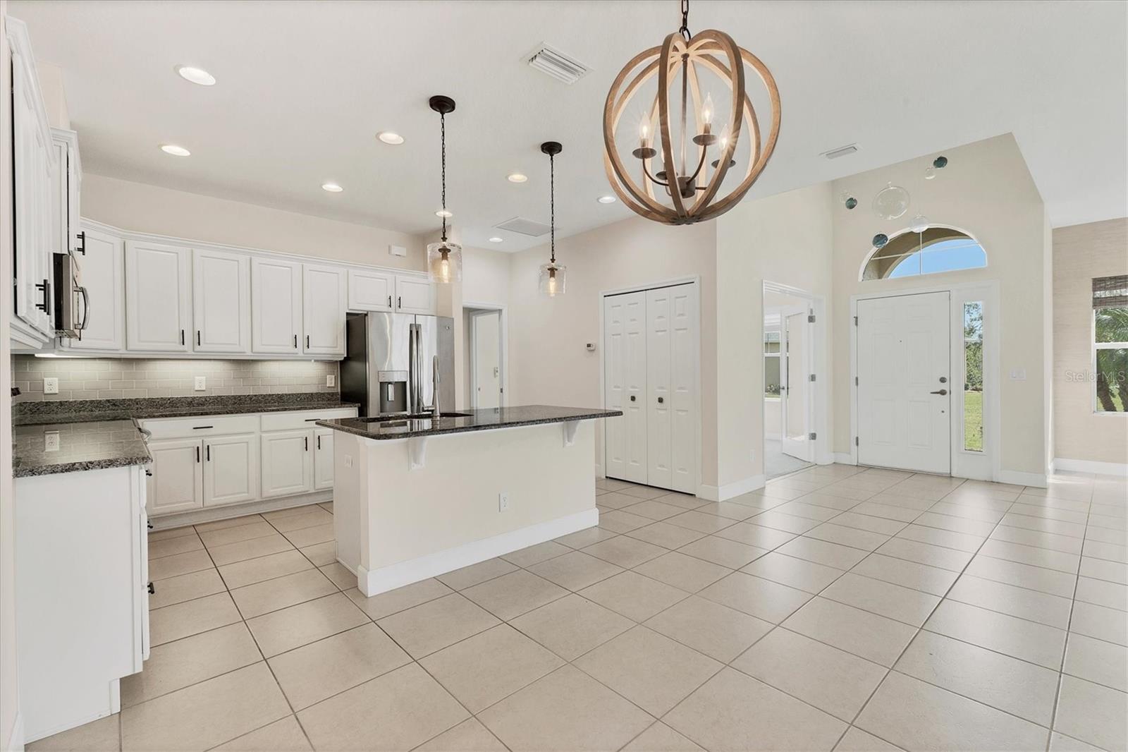 Welcome to your Dream Villa in the charming gated 55+ community of Verona in Sun City Center. This beautifully designed Buttonwood Model home located on a cul-de-sac, seemlessly blends modern elegance with comfortable living. This well maintained 3 bedroom, 2 bathroom home with a spacious 2 car garage has been lovingly cared for by the original owner who never had pets and is smoke-free. You can't help but notice as you walk up the oversized brick paved driveway how much distance is between you and your neighbor. When you step inside the home you will love the open floor plan with tall ceilings, neutral colors, 18" tile and plenty of natural light that create a warm, cohesive flow throughout. The kitchen, perfect for daily living and entertaining, is a chef's dream featuring solid white wood cabinets with crown molding, pull out drawers for pots and pans, granite countertops, pretty tile backsplash, upgraded stainless steel appliances, spacious island, and a large pantry with abundant storage. The well-equipped laundry room provides added convenience with ample storage and a counter for folding clothes. In the great room, you'll find a tray ceiling, sliding glass doors, and easy access to the large fully screened-in paver lanai that has BREATHTAKING WATER VIEWS overlooking two serene ponds and the RENAISSANCE Golf Course, an ideal spot to unwind and relax while enjoying the sunset and peaceful nature in your backyard retreat. The electric shades are an added feature allowing shade and privacy when needed. The owners suite is a tranquil escape located in the back of the home with amazing water views, complete with a tray ceiling and NEW laminate flooring (2023). The ensuite bathroom offers a spa-like ambiance, featuring double sinks, sleek glass-enclosed shower and a huge walk-in closet with plenty of space for all your personal belongings. The 2nd bedroom is on the opposite end of the home which has a pocket door to offer privacy and comfort. The 3rd bedroom has double glass doors with custom blinds that can also be used as an office/den. Additional features include a whole-home water softener, in-wall pest control system, 5 1/4" baseboards, security system and shutters which give the homeowner peace of mind. This Villa has many upgrades including a NEW Electric Water Heater (2021), NEW Roof (2022), Exterior Freshly Painted (2023), Disposal (2022), Kitchen Faucet & Drain (2024) and many more. Verona HOA has their very own heated pool and pool house and offers hassle free living covering lawn cutting, weeding, fertilization, and trimming of bushes and trees. Exterior upkeep is also included, with house painting every 7 years and routine roof replacements. Verona residents also have access to the incredible amenities at Club Renaissance with a resort-style heated pool with food and drink service, a private fine dining restaurant, and a 24 hour state of the art fitness center offering exercise classes, sauna, steam room and full-service spa, just to name a few. You'll also have the enjoyment of all the Sun City Center amenities, such as numerous social clubs, pickleball, a library, shopping, restaurants and so much more. This exceptional villa boasts Spectacular water views from every window in the home and truly offers the best of Florida living. This villa is move-in ready and waiting for you to call it HOME!