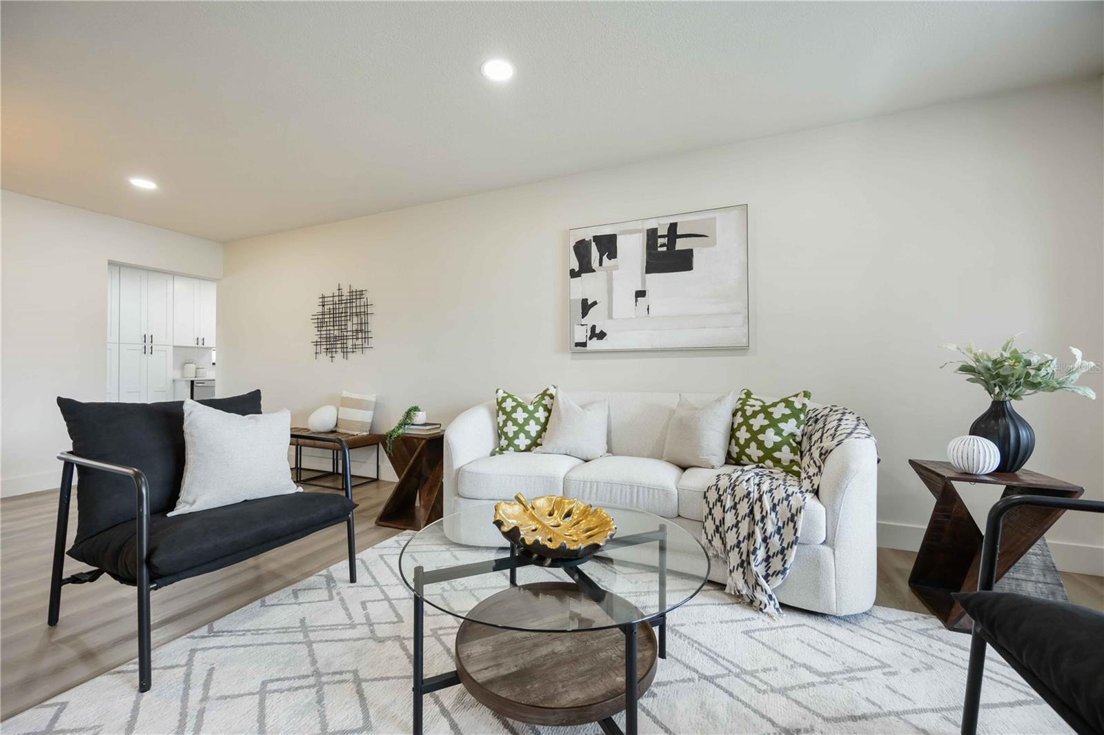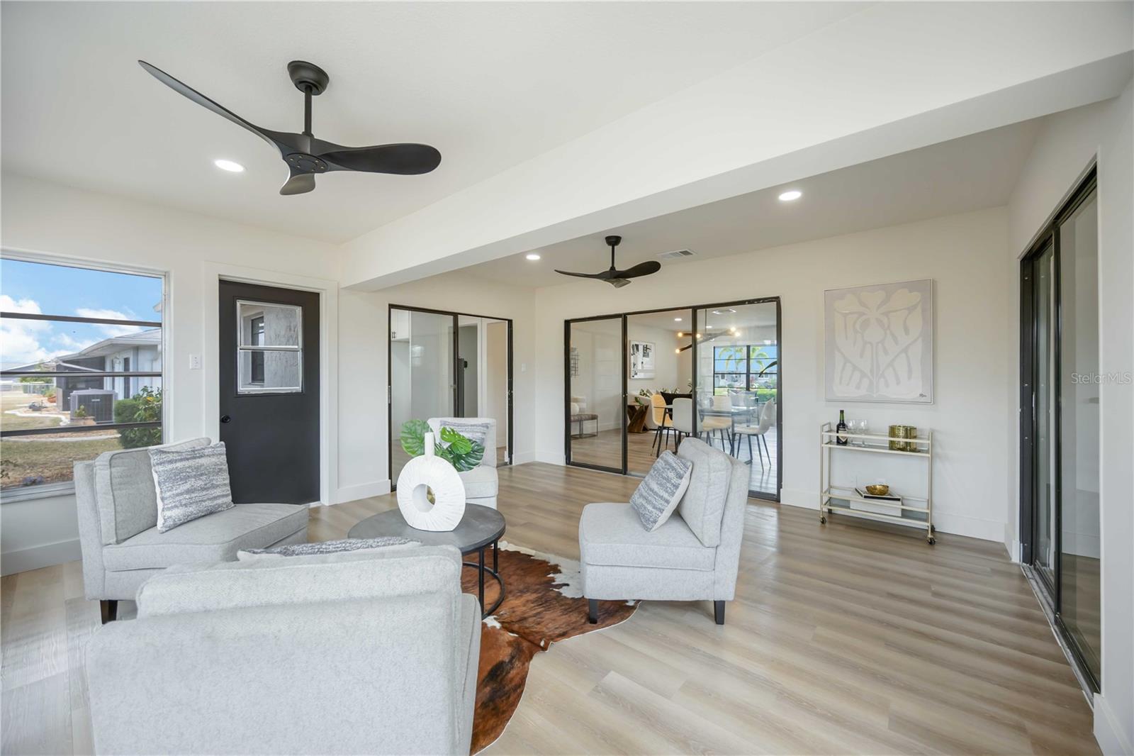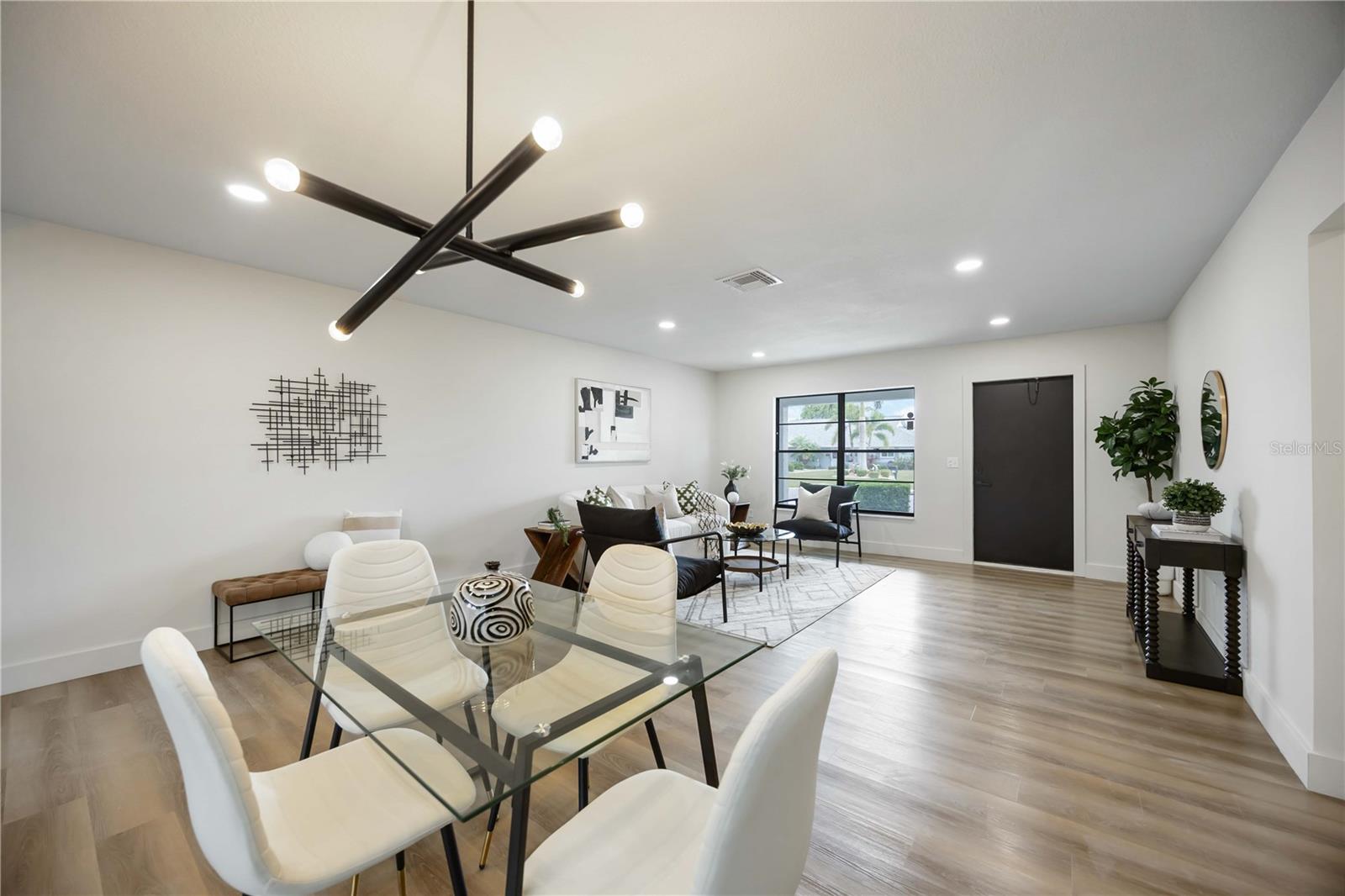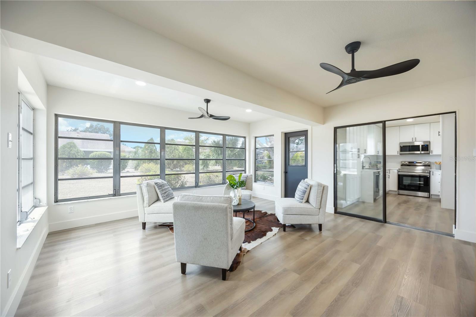Welcome to your dream home! This stunning renovated single-family residence offers a perfect blend of style and functionality. Enjoy brand new flooring throughout, a gorgeous updated kitchen featuring quartz countertops, a spacious farmhouse sink, and modern cabinetry. The open layout is perfect for everyday living and entertaining. This home boasts two fully renovated bathrooms, a generous laundry room, and a cozy sunroom — the ideal spot for morning coffee or evening chats with family and friends. The attached garage provides ample space for your car and golf cart, making it easy to access nearby courses. The beautifully landscaped yard adds to the charm and curb appeal, and the convenient location puts you just minutes from local golf, shopping, and dining. Don't miss out on this incredible opportunity —Priced to sell schedule your showing today!