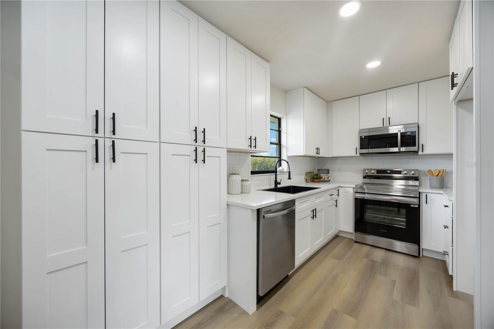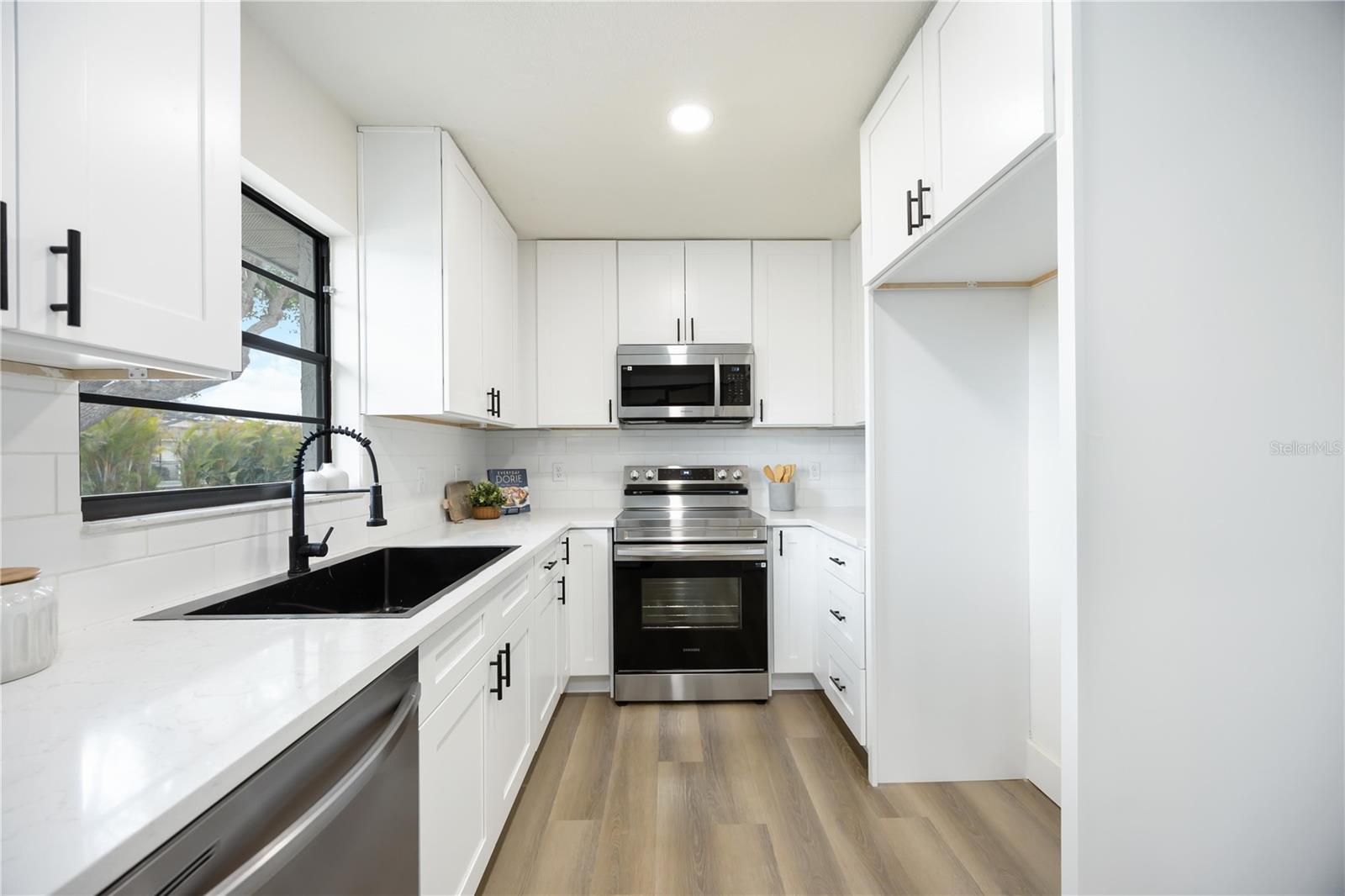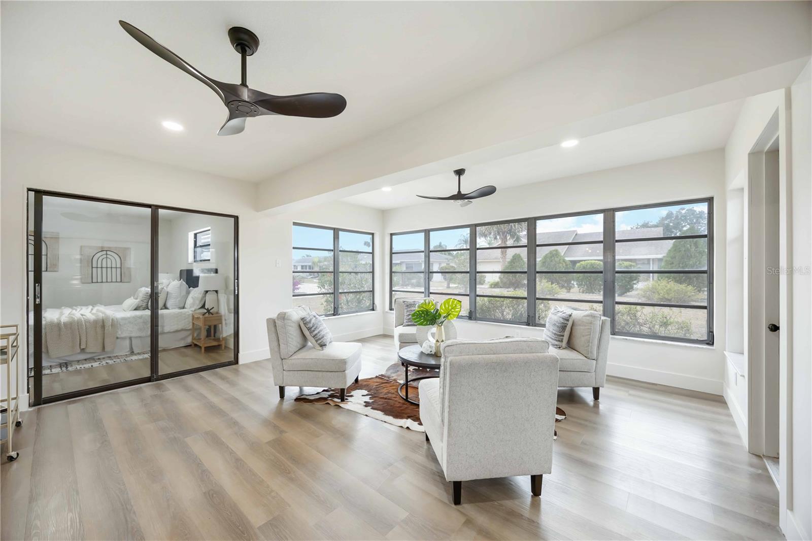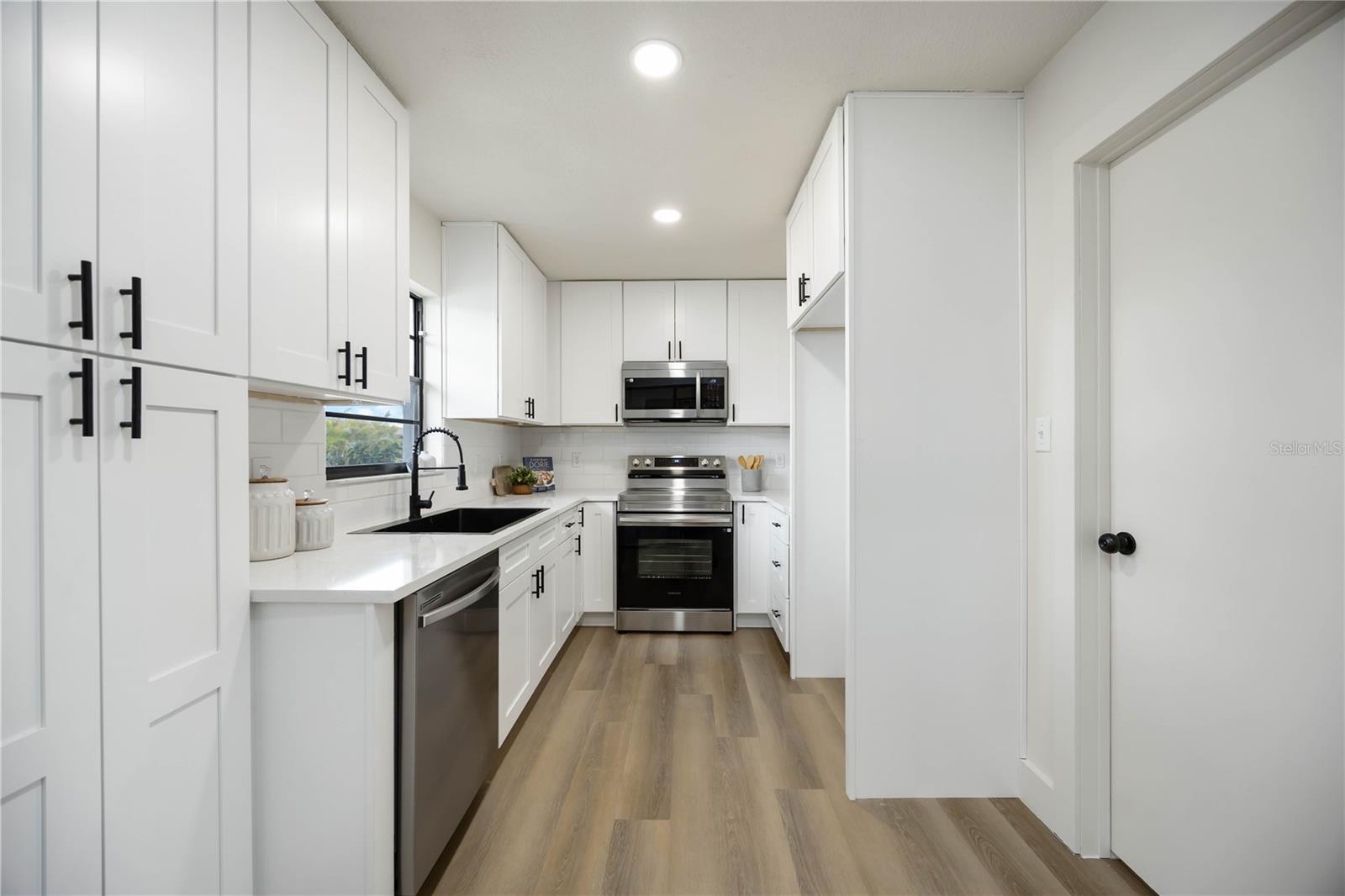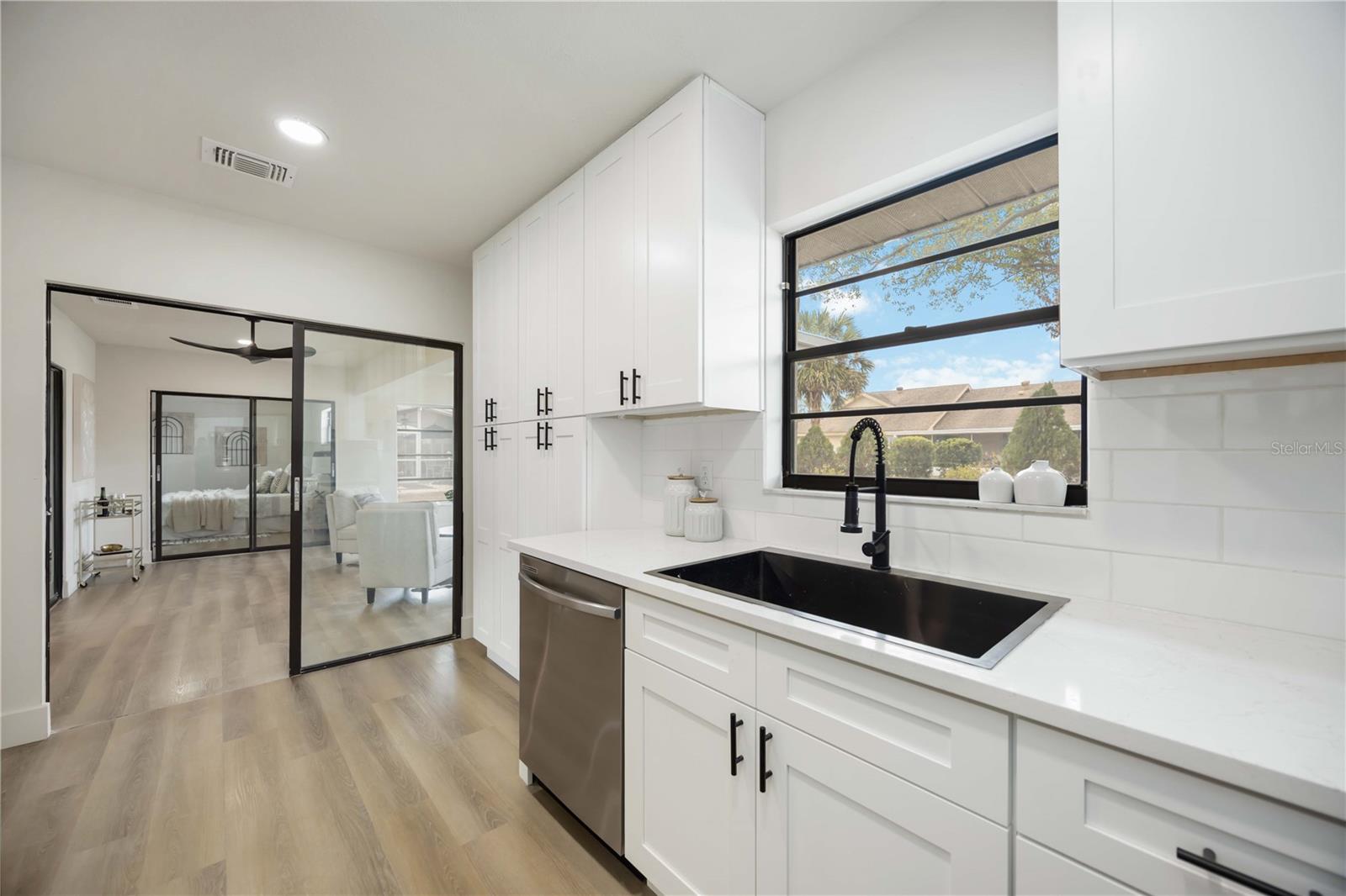 Welcome to your dream home! This stunning renovated single-family residence offers a perfect blend of style and functionality. Enjoy brand new flooring throughout, a gorgeous updated kitchen featuring quartz countertops, a spacious farmhouse sink, and modern cabinetry. The open layout is perfect for everyday living and entertaining. This home boasts two fully renovated bathrooms, a generous laundry room, and a cozy sunroom — the ideal spot for morning coffee or evening chats with family and friends. The attached garage provides ample space for your car and golf cart, making it easy to access nearby courses. The beautifully landscaped yard adds to the charm and curb appeal, and the convenient location puts you just minutes from local golf, shopping, and dining. Don't miss out on this incredible opportunity —Priced to sell schedule your showing today!