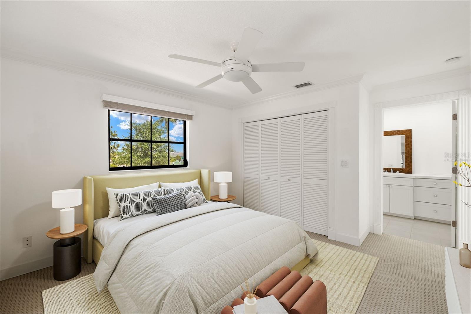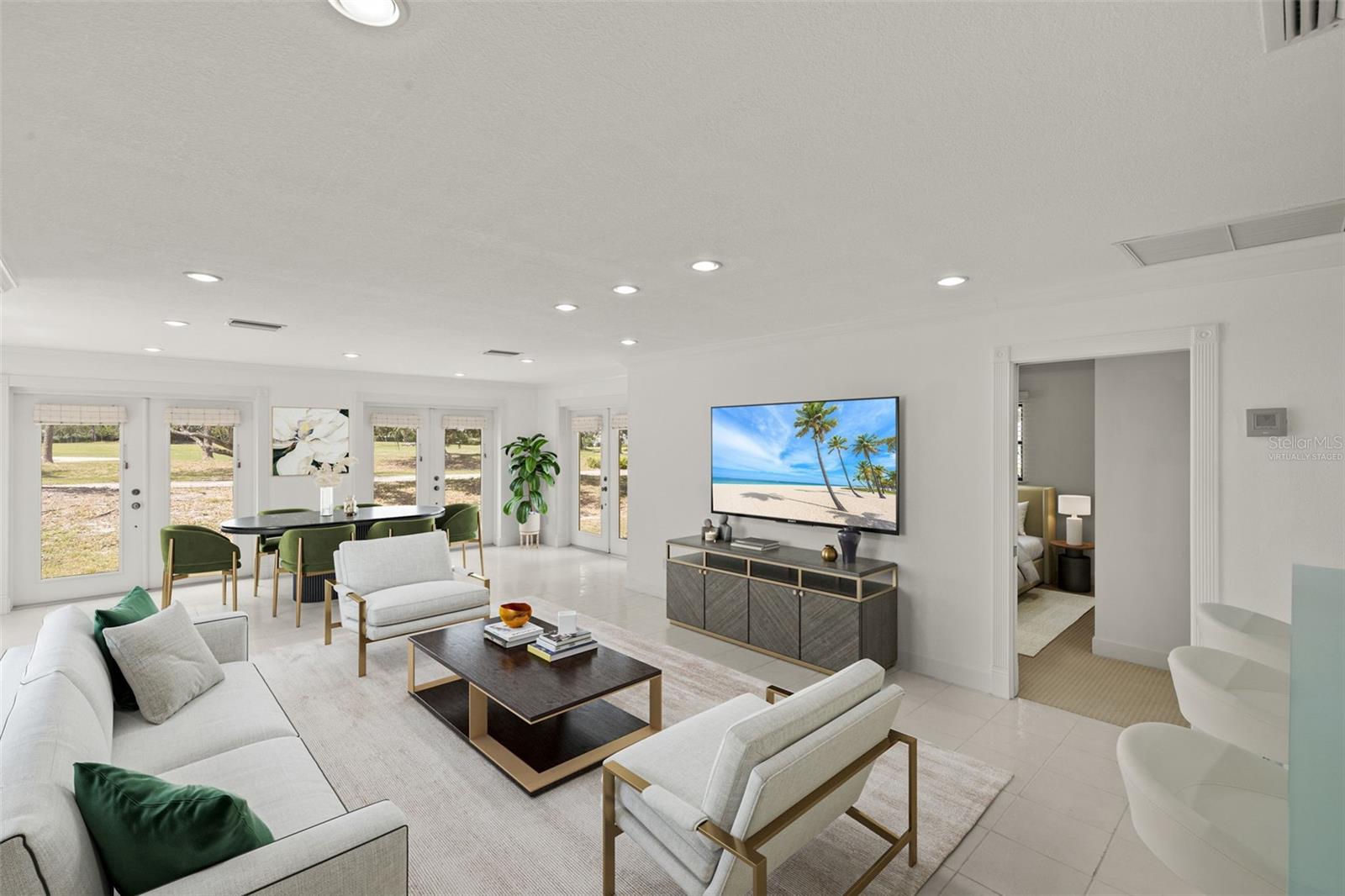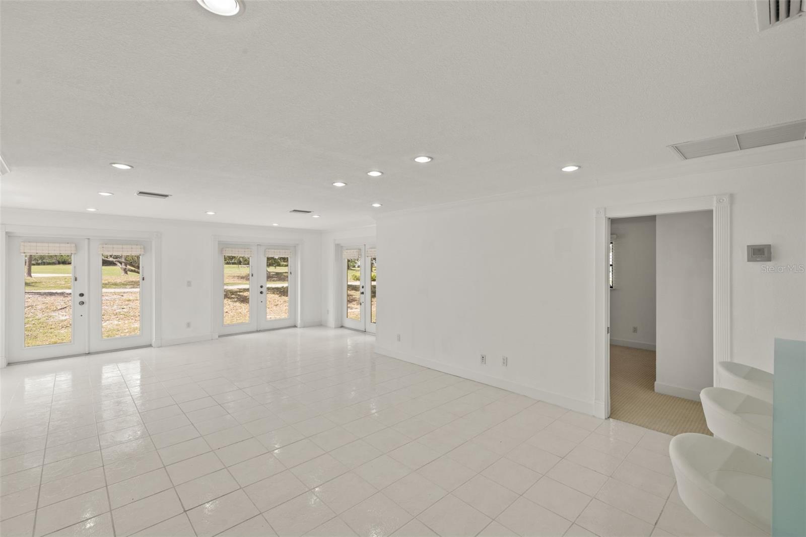 One or more photo(s) has been virtually staged. Live the Florida Dream in This Beautifully Upgraded Sun City Center Condo – Spacious, Stylish, and Sun-Soaked! Welcome to your new home in Sun City Center, FL, one of the nation’s premier 55+ golf cart-friendly active adult communities. This exceptional condo sits on a large corner lot and offers the perfect blend of comfort, function, and style—all nestled within a vibrant community featuring over 200 clubs and activities, three heated pools, golf, tennis and pickleball courts, a state-of-the-art fitness center, library, and modern community center. Step inside this expansive open-concept home and be greeted by hard tile floors that flow through the main living areas, recessed lighting, and crown molding that add an elegant touch throughout. The chef-inspired kitchen is the heart of the home, featuring updated appliances, a movable island for flexible workspace, triple divided sink, tempered glass bar top, island range with hood, hard surface countertops, and ample storage—all perfect for cooking, entertaining, or simply enjoying the space.Natural light pours in through beautiful French doors, which lead to multiple outdoor living areas—including four separate patios, ideal for entertaining or soaking in the serene sunset views with no rear neighbor to interrupt your peace. Each bedroom offers the luxury of an ensuite bathroom, including a renovated primary suite with a zero-entry shower. Additional home upgrades include: NEW ROOF, newer AC, newer water heater, updated electrical panel, new pocket door entryway, hurricane impact garage door, garage and driveway with decorative pavers, garage storage and attic plywood flooring, whole-home water softener & kitchen reverse osmosis system, double pane windows & doors, soundproof barrier insulation, and plantation shutters. The spacious laundry room includes pantry storage and a beverage refrigerator, making every inch of this home both beautiful and functional. Located just a short golf cart ride away from restaurants, shopping, entertainment, and medical facilities, and a quick drive to Tampa, Sarasota, and world-class Gulf Coast beaches, this home offers the best of both worlds—a relaxed beach-town vibe with big city conveniences. Don’t miss this rare opportunity to own a thoughtfully upgraded, move-in-ready home in a community that truly has it all. Enjoy maintenance free living, the association covers water, sewer, insurance, professional management, landscaping, and exterior lighting. Schedule your private tour today and start living the Sun City Center lifestyle you’ve been dreaming of!