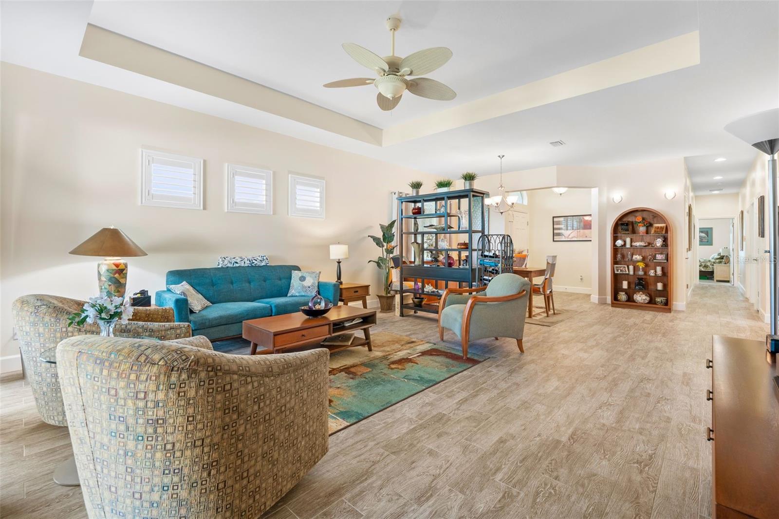 Welcome to 703 Chipper Drive in Verona, a private gated 55+ enclave within the Renaissance section of Sun City Center, FL—where low-maintenance living meets an active, lifestyle-focused community. Situated on a premium corner lot, this home offers major peace-of-mind upgrades including a NEW roof (2023), exterior paint (2023), fresh interior paint (2025), and accordion shutters that make storm prep fast and simple. Inside, you’ll love the bright, clean feel thanks to a fresh interior paint update (2025) and a smart, functional layout with spacious living areas and generous storage. The bathrooms are light and airy, featuring a beautifully tiled walk-in shower with glass enclosure and an easy everyday flow. You’ll also appreciate the separate laundry room with extra cabinetry and counter space—ideal for staying organized. Verona features a private gated entrance and a community pool right inside the neighborhood, and is comprised of homes built by Minto Communities. In addition, your fees provide access to Sun City Center’s incredible lifestyle: 150+ activity and social clubs, 45 holes of golf, tennis, pickleball and shuffleboard courts, indoor and outdoor swimming pools, miles of walking and biking trails, and dog parks—plus recreational centers with an art studio, dance studio, pottery room, and state-of-the-art fitness facilities. Residents will also enjoy the 43,000-square-foot Club Renaissance, offering an indoor running/jogging track, wellness center, full-service Spa Celeste, two restaurants, and a lounge. Another unique perk of life here: residents can drive their golf carts on local streets. And when you’re ready to enjoy the Florida lifestyle, you’re in the right place—this active 55+ neighborhood offers tons of amenities to keep your calendar full, plus a community pool right inside the neighborhood. If you want a move-in ready home with big-ticket updates completed and a lifestyle-focused community, schedule your showing today—homes like this don’t last long.