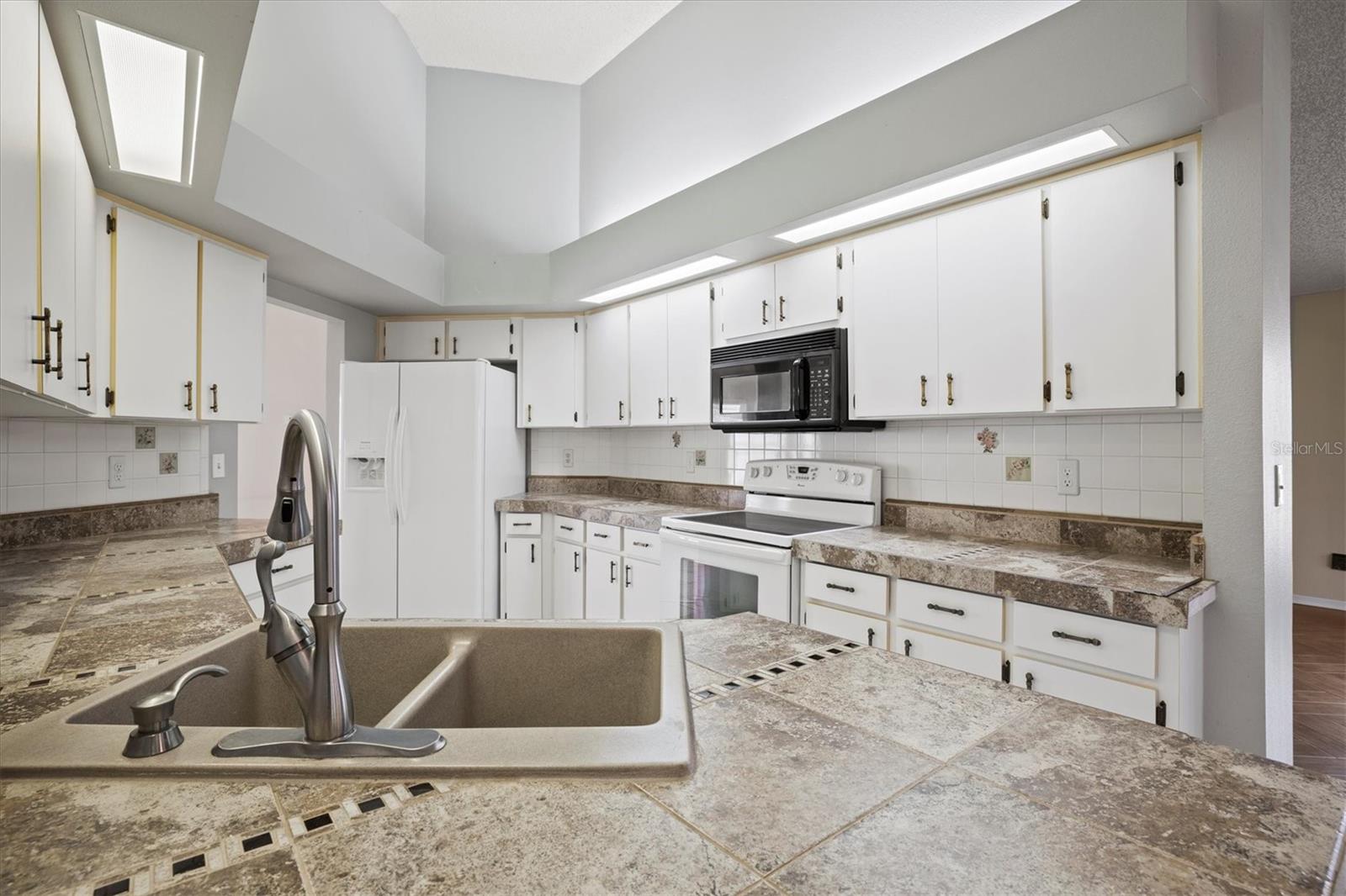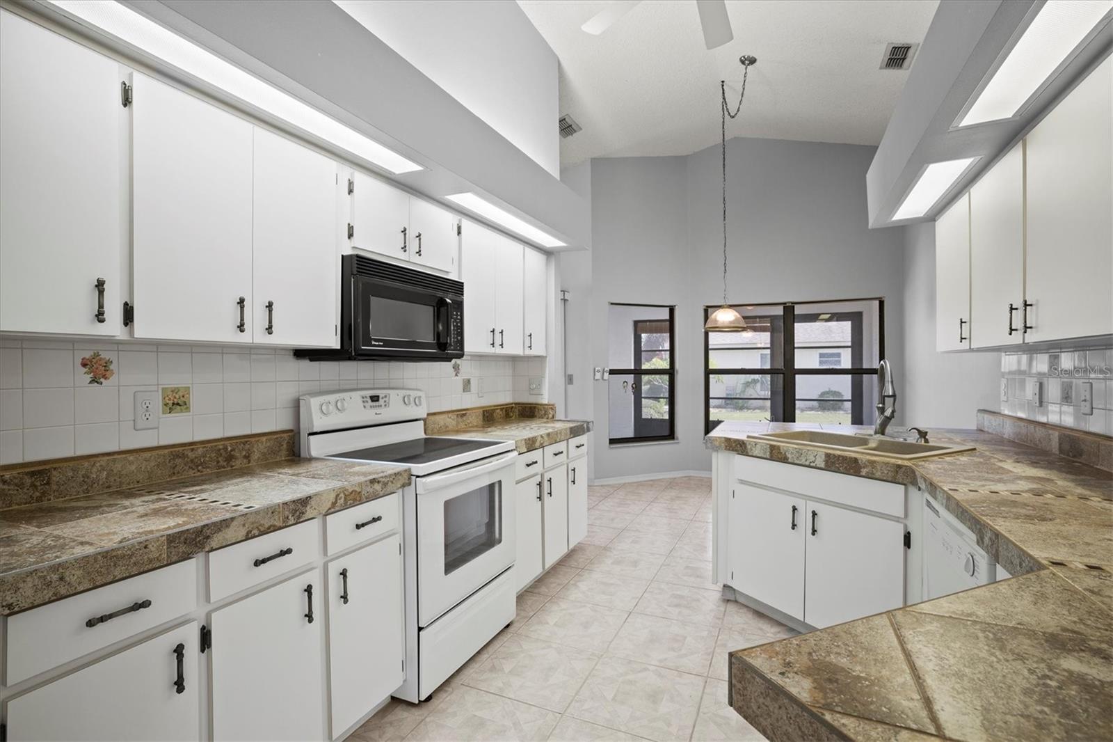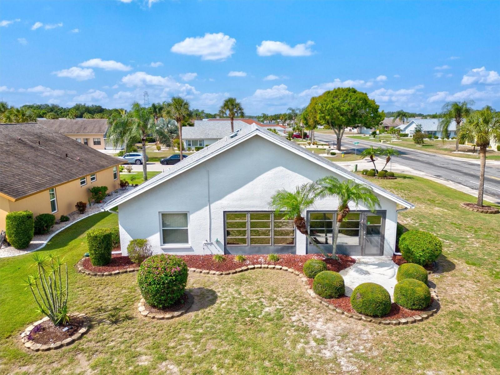 Welcome home to beautiful Sun City Center, FL! This three bedroom, two bathroom split floor plan home, sits on a corner lot in this beautiful 55+ community. The back of the house features a Florida room that is perfect for quiet mornings, or entertaining friends in the evenings. Abundant natural light lends a bright, welcoming atmosphere to the rooms. The home features a formal dining room as well as a breakfast nook, a spacious kitchen and living room with vaulted ceilings, indoor utility room, and a large master suite. The master suite boasts a walk in closet, walk in shower and separate garden tub as well as his and her sinks. The home has tile flooring throughout. Sun City Center is a golf cart friendly community, with easy access to all amenities, restaurants and hospitals. There are multiple club houses, pools, a fitness center and golf course, dog parks and more! Seller is offering a credit towards roofing! Note: Roof 2007, HVAC 2021, Hot Water Heater 2012