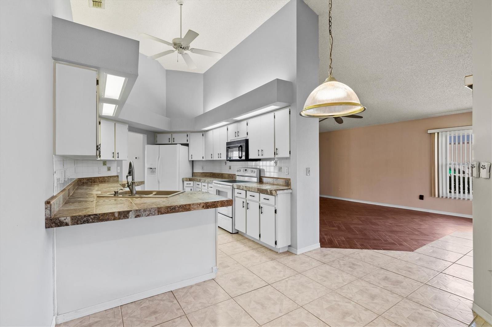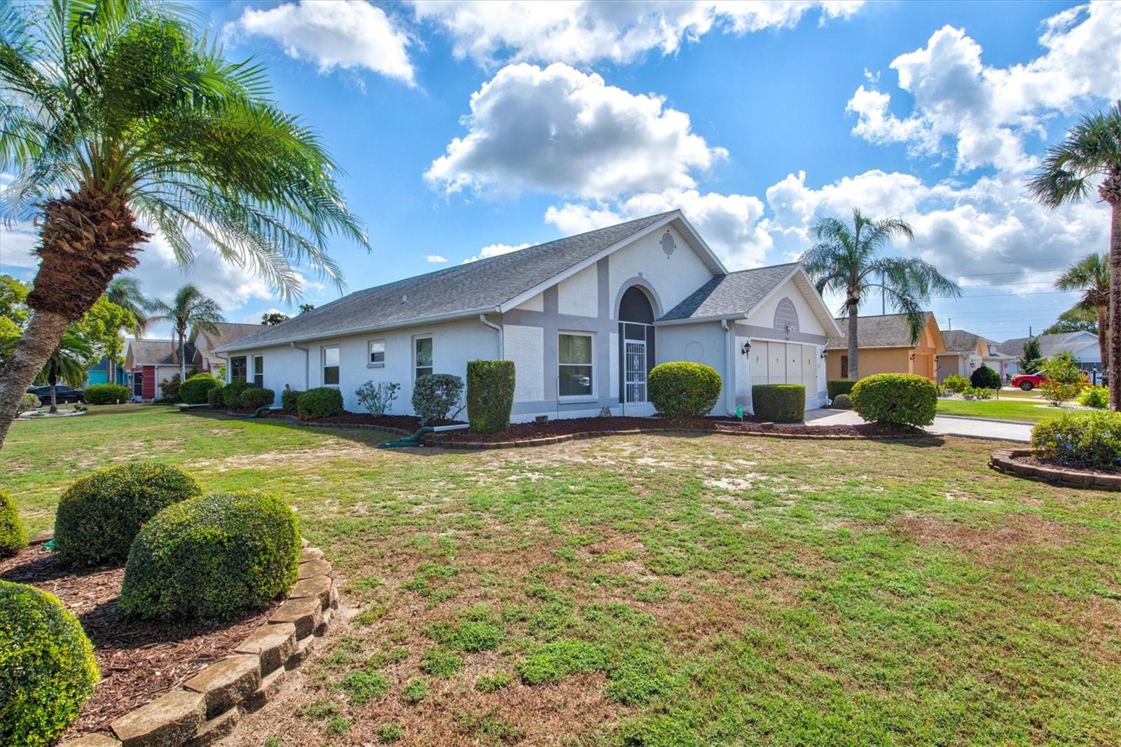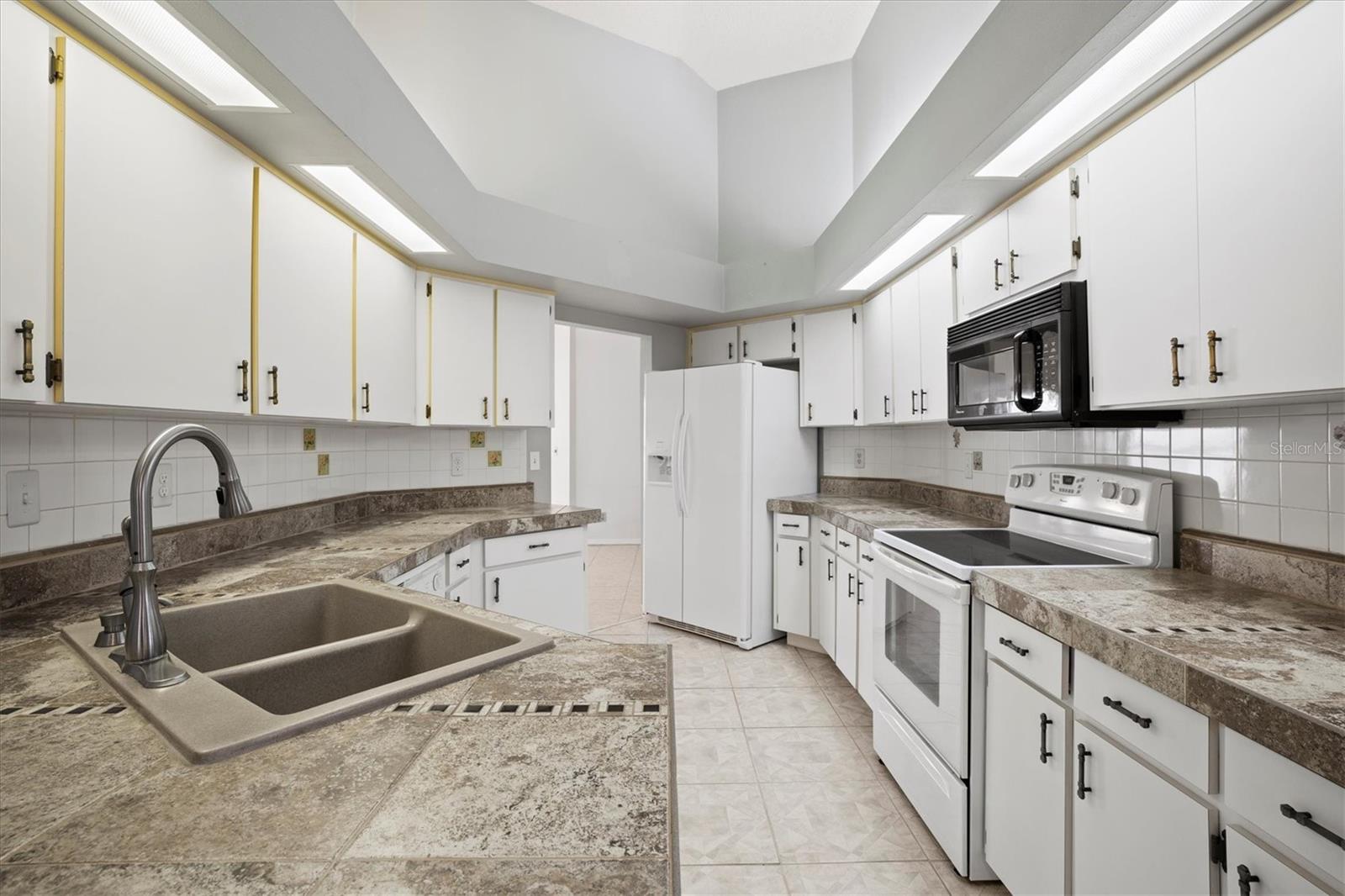 Welcome home to beautiful Sun City Center, FL! This three bedroom, two bathroom split floor plan home, sits on a corner lot in this beautiful 55+ community. The back of the house features a Florida room that is perfect for quiet mornings, or entertaining friends in the evenings. Abundant natural light lends a bright, welcoming atmosphere to the rooms. The home features a formal dining room as well as a breakfast nook, a spacious kitchen and living room with vaulted ceilings, indoor utility room, and a large master suite. The master suite boasts a walk in closet, walk in shower and separate garden tub as well as his and her sinks. The home has tile flooring throughout. Sun City Center is a golf cart friendly community, with easy access to all amenities, restaurants and hospitals. There are multiple club houses, pools, a fitness center and golf course, dog parks and more! Seller is offering a credit towards roofing! Note: Roof 2007, HVAC 2021, Hot Water Heater 2012