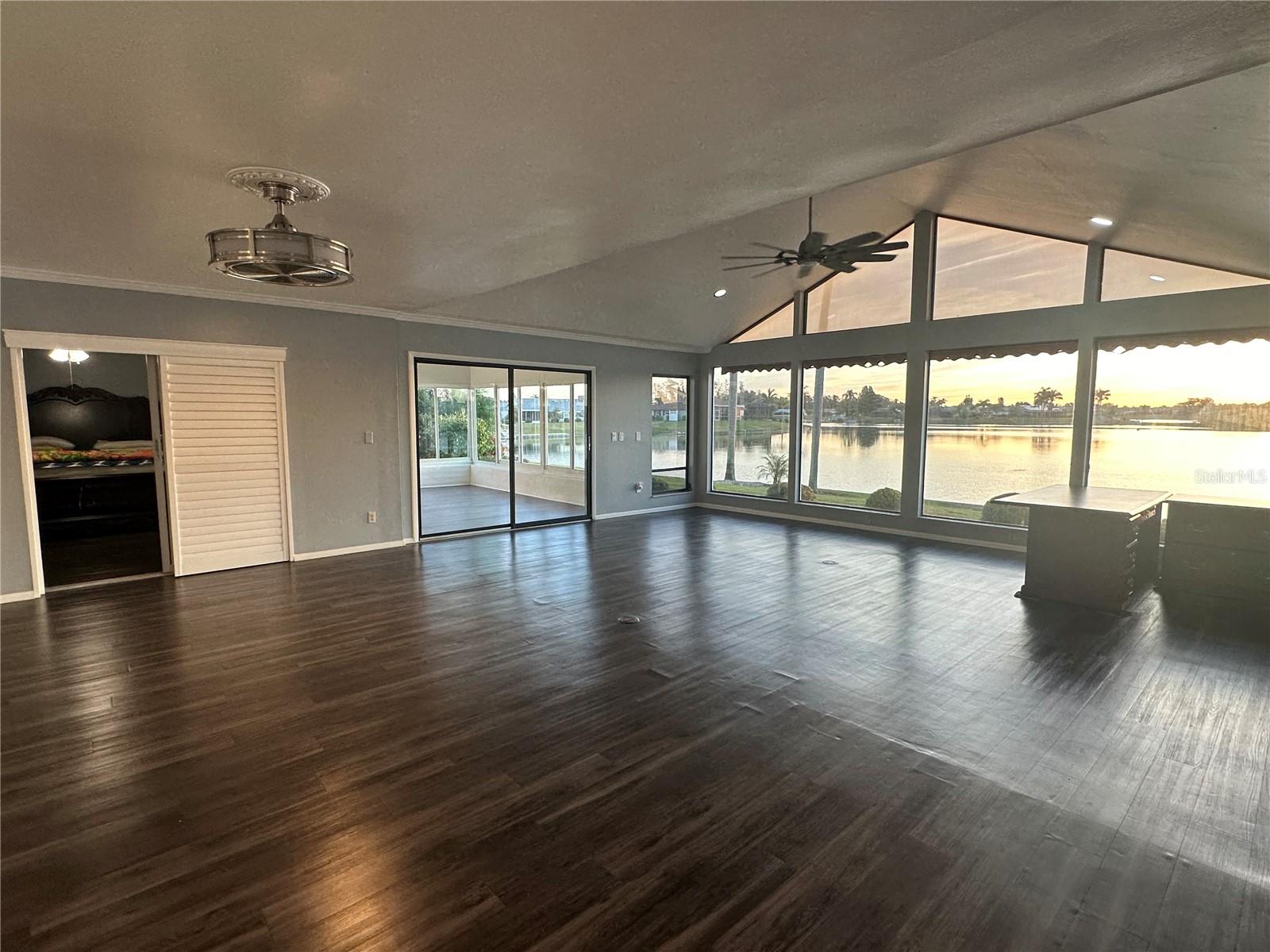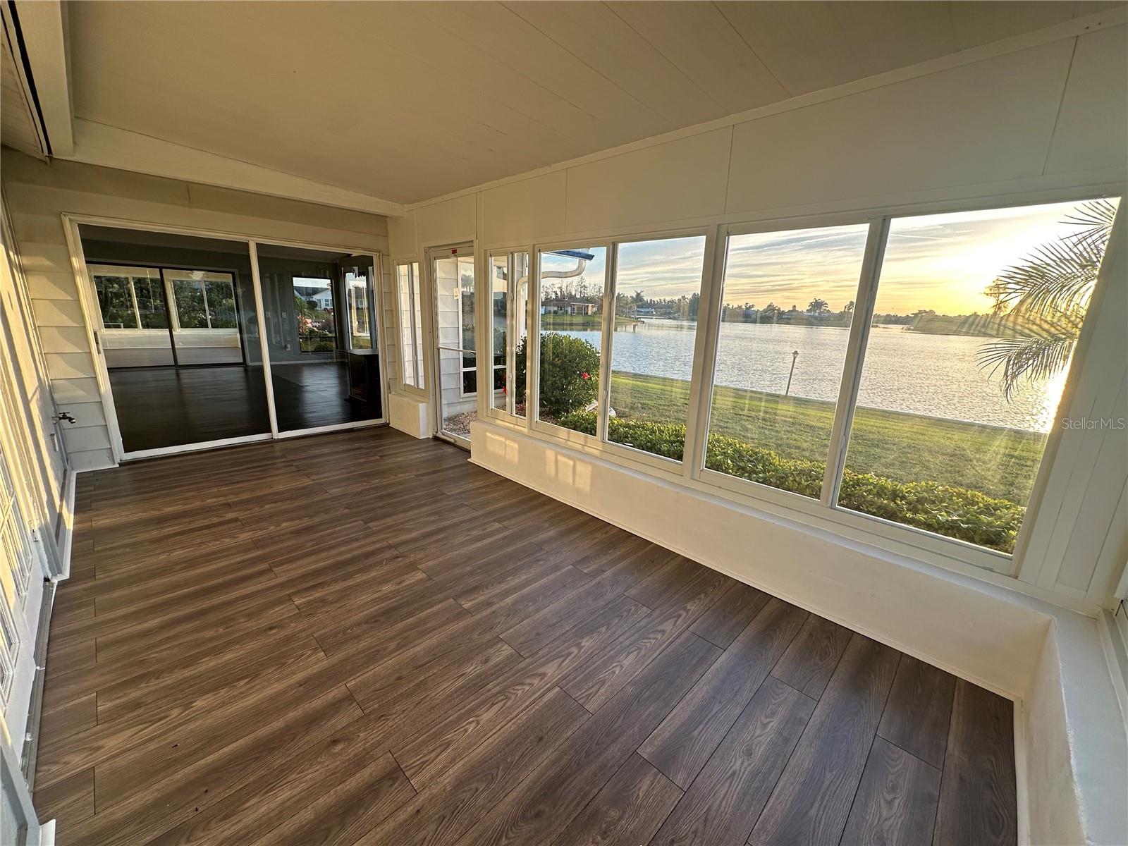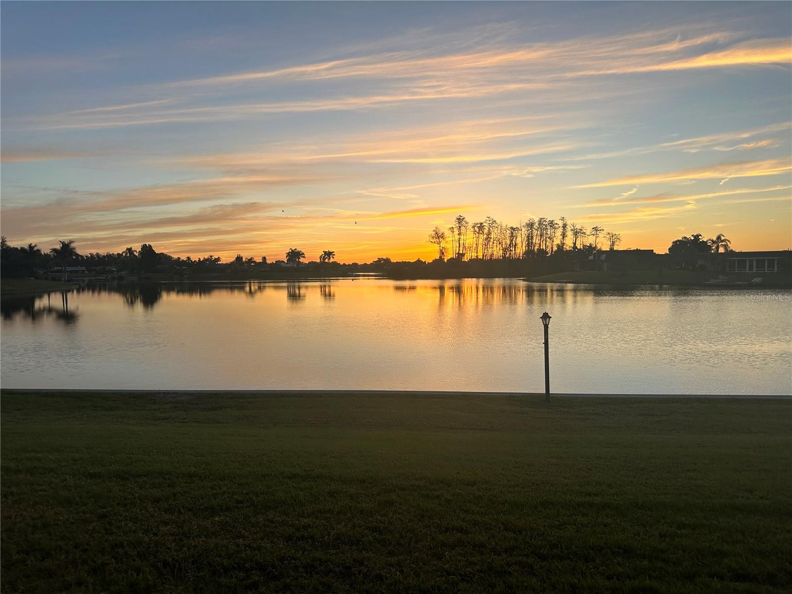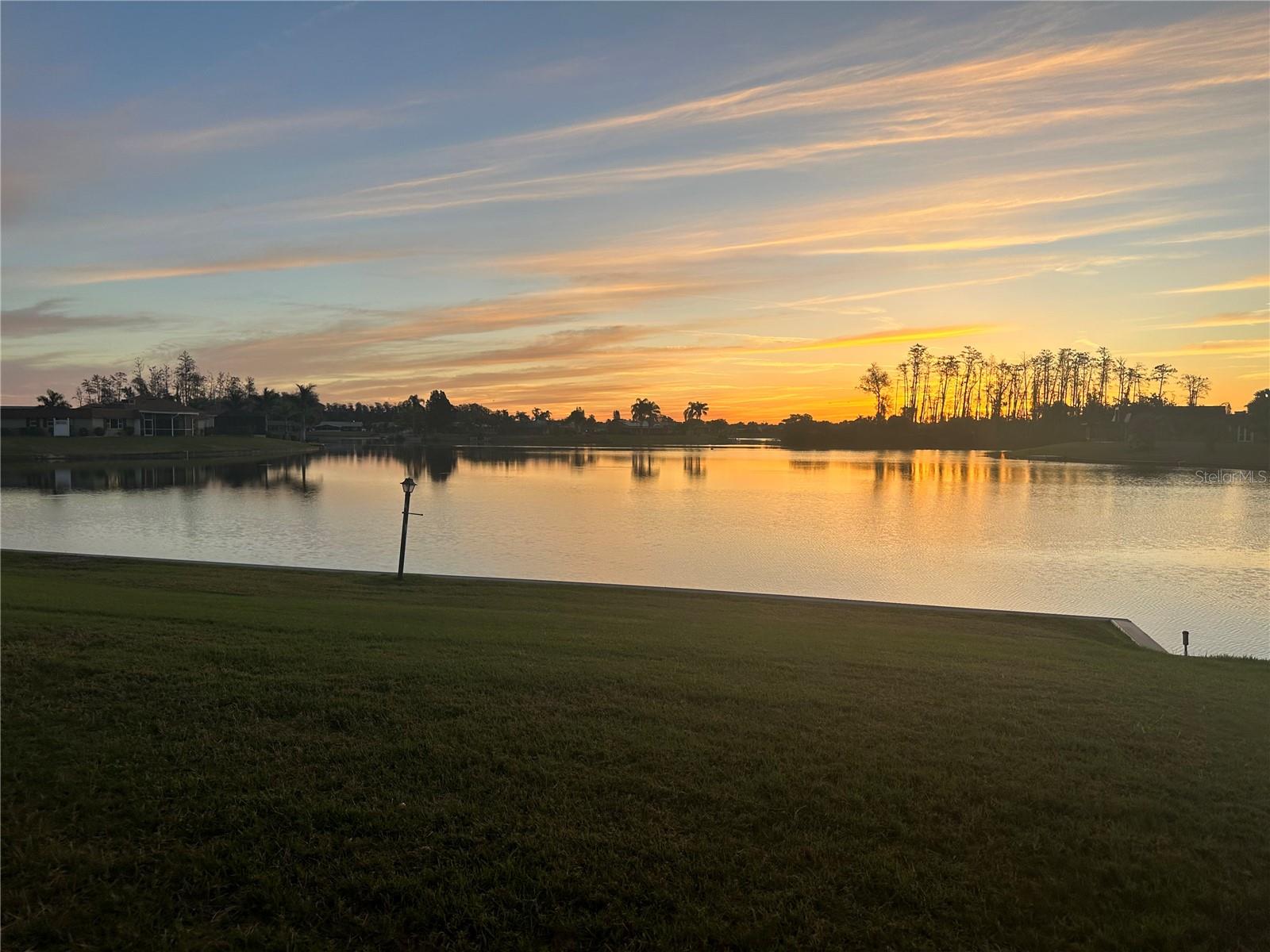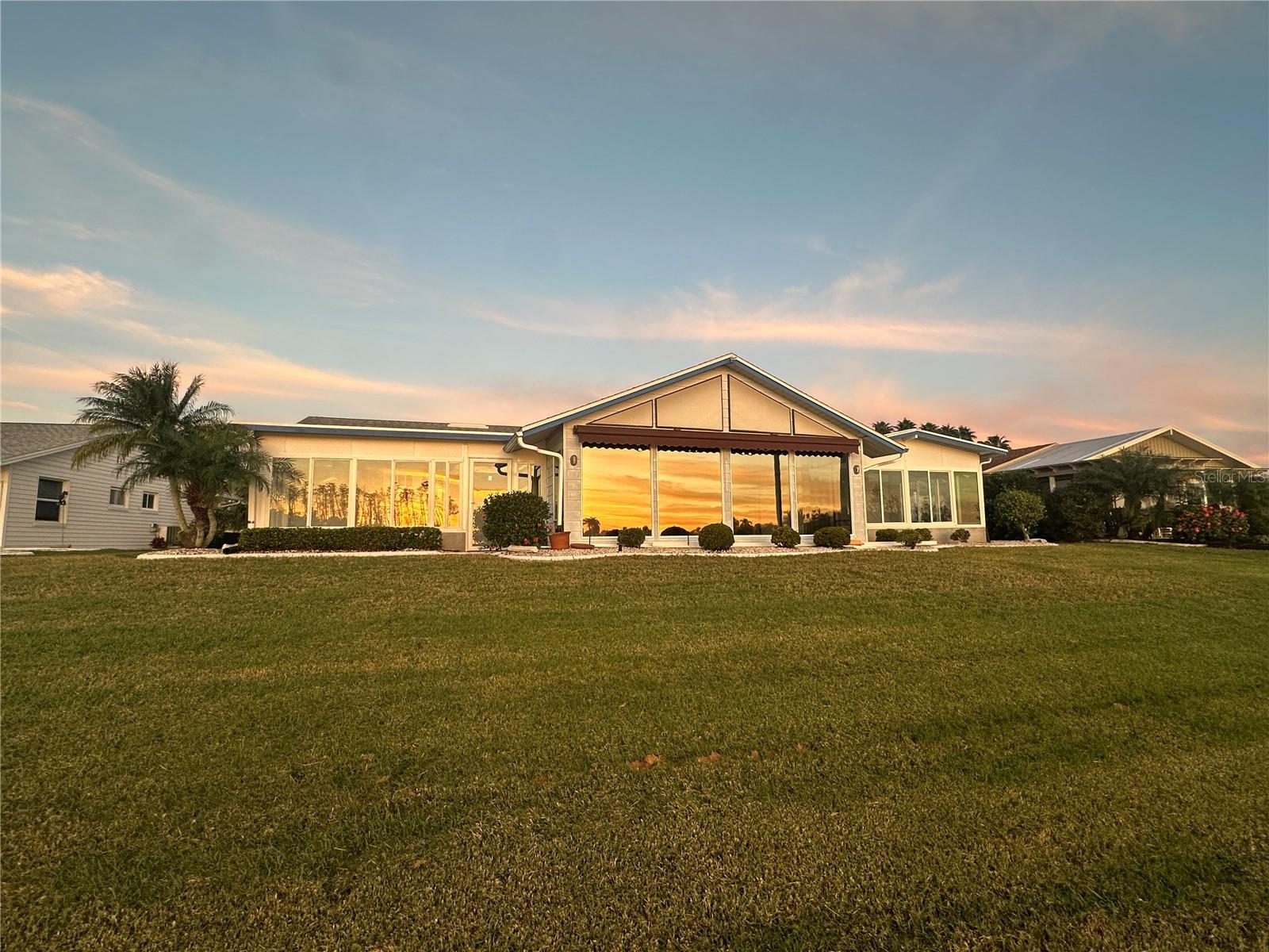 This stunning home offers unparalleled views of a tranquil lake, with a breathtaking sunrise greeting you every morning. Boasting 3 bedrooms and 3 bathrooms, this residence epitomizes comfort and luxury. Step inside to discover an open-concept layout, where the spacious living room flows seamlessly into the large dining area, perfect for hosting gatherings and entertaining guests. The wood-style laminate flooring flows thought the entire home. The upgraded kitchen features top-of-the-line appliances, sleek countertops, and ample cabinet space. The large master bedroom has a perfect view of the water and direct access to one of the two separate sunrooms. In addition to the master suite, two more bedrooms provide plenty of space for family, guests, or office space. The expansive laundry room boasts a convenient sink and ample storage. The 2-car garage also has an added storage section that can be used as a workshop. Outside, the beautifully landscaped yard invites you to relax and unwind. Located just moments away from shopping, medical facilities, golf courses, and more, this home offers the perfect blend of tranquility and convenience. Whether you're seeking a peaceful retreat or a place to entertain. Don’t miss the chance to make this house your home.
