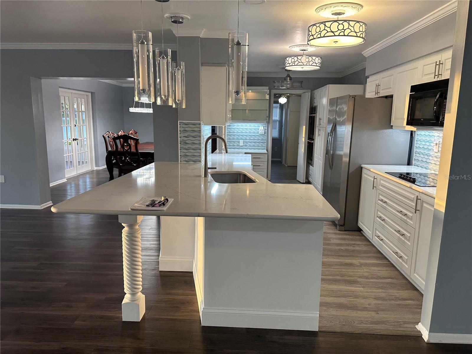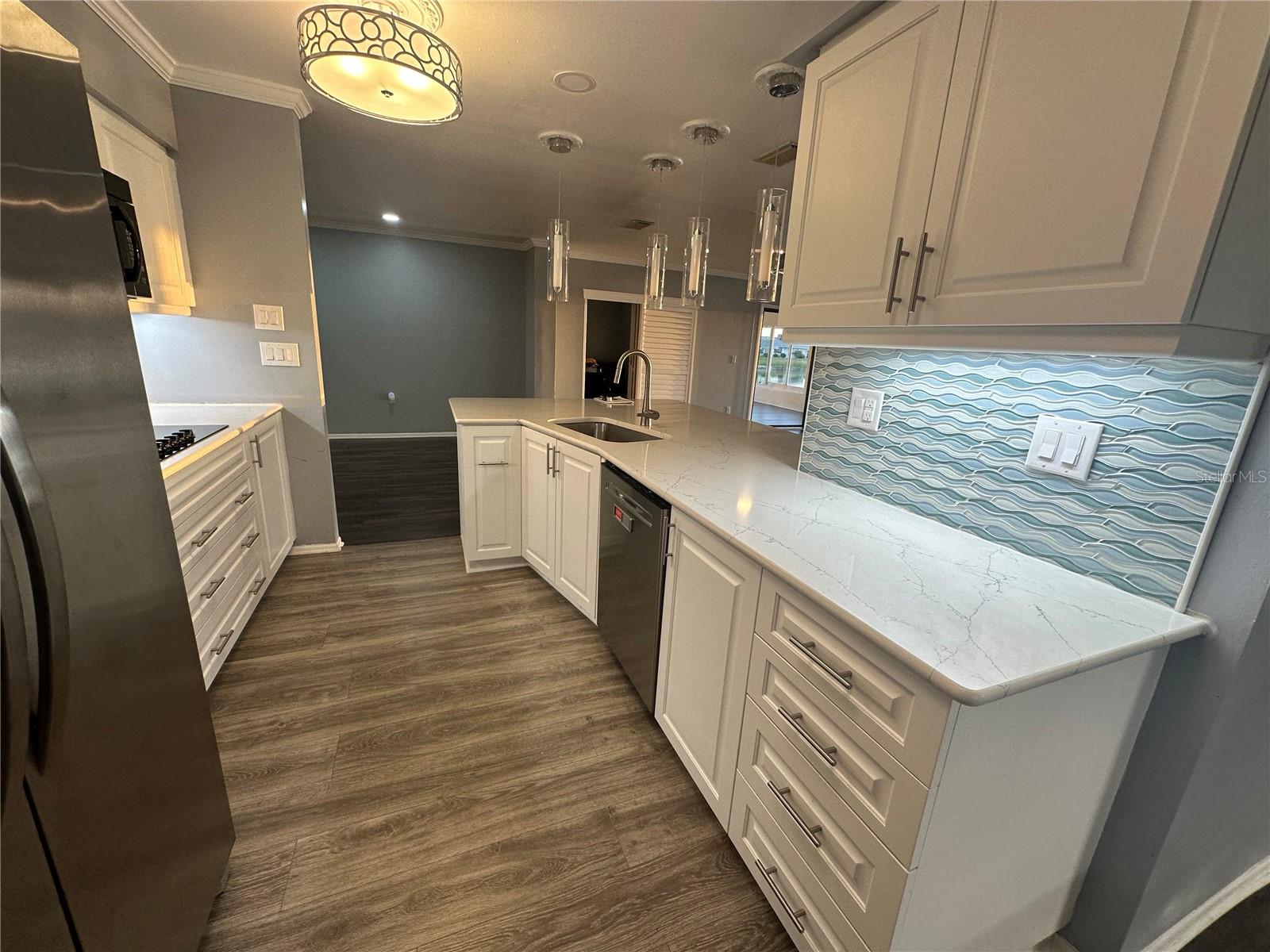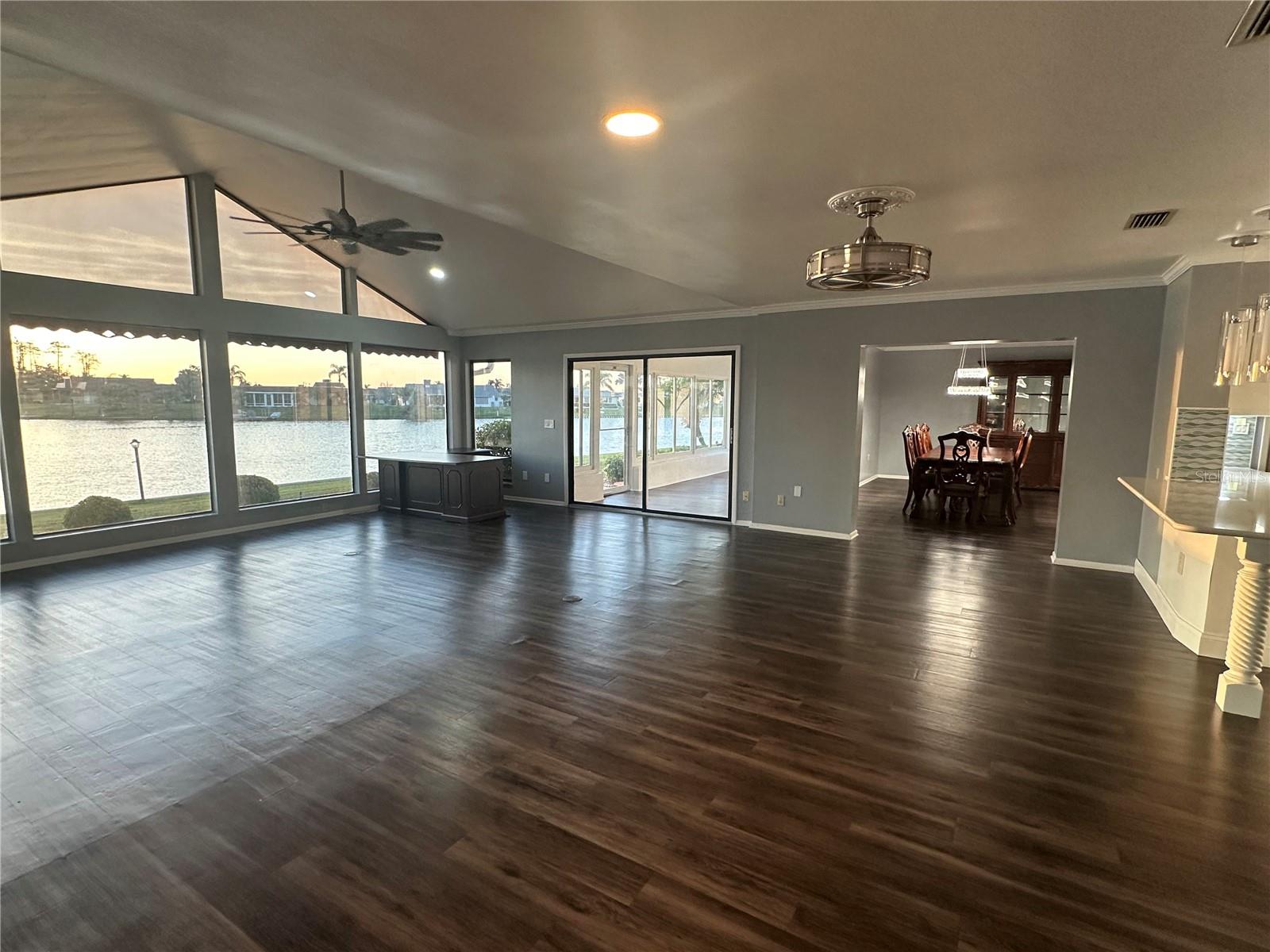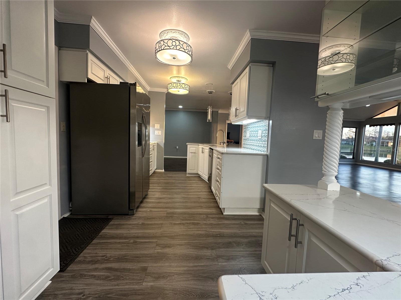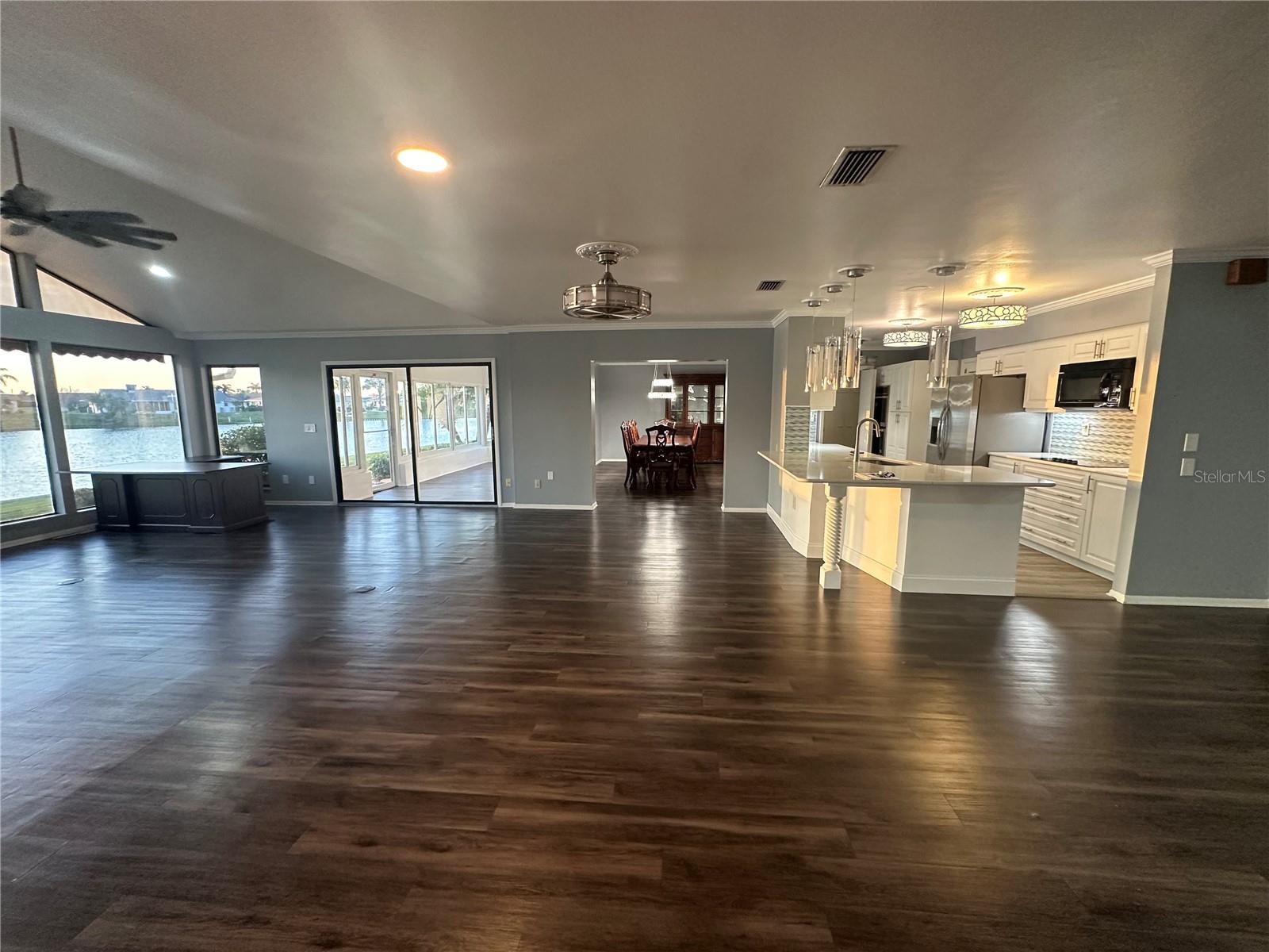 This stunning home offers unparalleled views of a tranquil lake, with a breathtaking sunrise greeting you every morning. Boasting 3 bedrooms and 3 bathrooms, this residence epitomizes comfort and luxury. Step inside to discover an open-concept layout, where the spacious living room flows seamlessly into the large dining area, perfect for hosting gatherings and entertaining guests. The wood-style laminate flooring flows thought the entire home. The upgraded kitchen features top-of-the-line appliances, sleek countertops, and ample cabinet space. The large master bedroom has a perfect view of the water and direct access to one of the two separate sunrooms. In addition to the master suite, two more bedrooms provide plenty of space for family, guests, or office space. The expansive laundry room boasts a convenient sink and ample storage. The 2-car garage also has an added storage section that can be used as a workshop. Outside, the beautifully landscaped yard invites you to relax and unwind. Located just moments away from shopping, medical facilities, golf courses, and more, this home offers the perfect blend of tranquility and convenience. Whether you're seeking a peaceful retreat or a place to entertain. Don’t miss the chance to make this house your home.