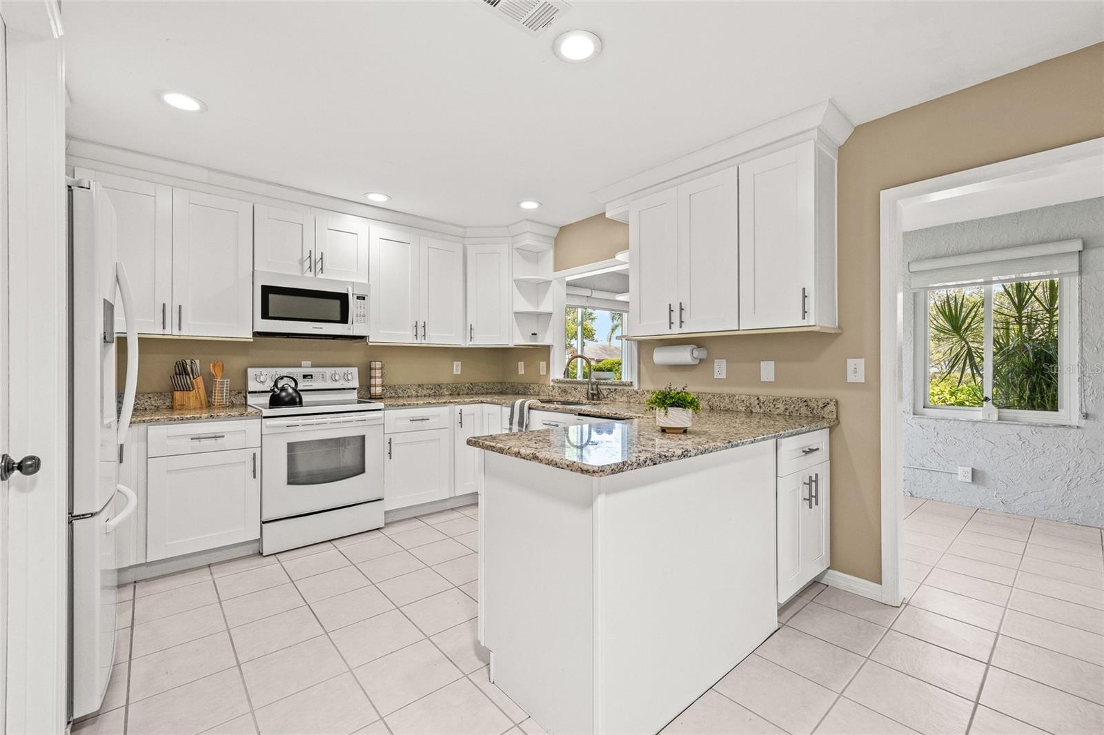 ** PRICE REDUCED ** This is your chance to own a beautifully maintained home that offers it's owners the chance to enjoy the comforts of vacation style living, all year round. This home is move-in ready and new owners should feel confident with its NEW ROOF (May 2025) and Newer AC Unit (installed 2 years prior). Windows have been upgraded to Hurricane Impact resistant double pane energy efficient windows. The expanded Florida Room has been updated to include in the total heated square footage of the home (1642 sqft). Enjoy the natural light offered by the large windows throughout, as well as the Solar Tubes in both the breakfast area as well as the two bathrooms. This Active Community offers its residents the best amenities, resembling only those found in a Florida Resort. Enjoy the 20/20 Fitness/Spa Building, Outdoor Pools, Spas, Veteran's Theater, Lawn Bowling, Pickle Ball and Tennis courts, not to mention the wood working shop, stained glass studio, pottery, card clubs, multiple dining options, and much, much, more! Feel safe and secure in this gated community with its staff on hand to ensure your privacy is protected and your fun time is not interrupted. King's Point is fully accessible in golf cart and there are no time restrictions. Welcome to the Best 55+ community in Sun City !