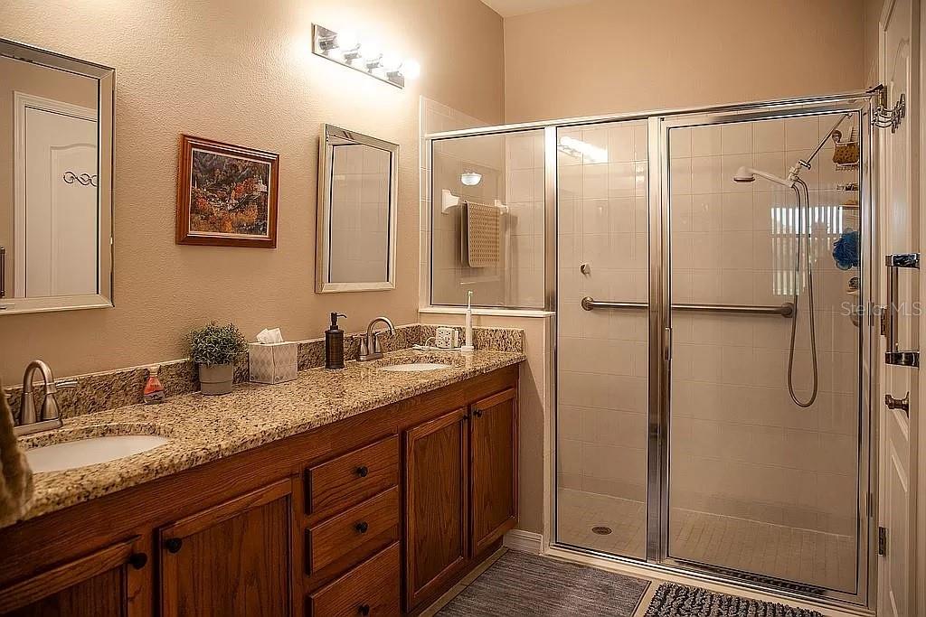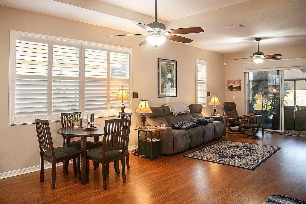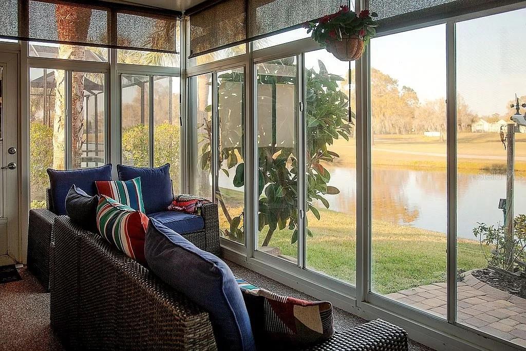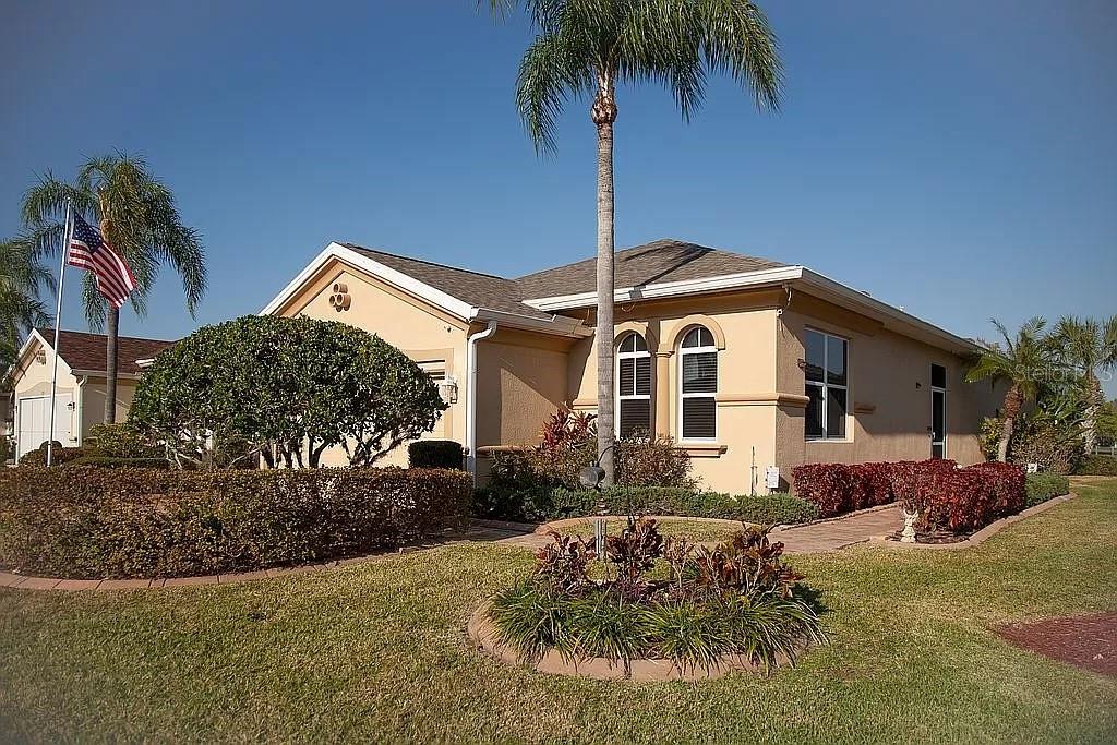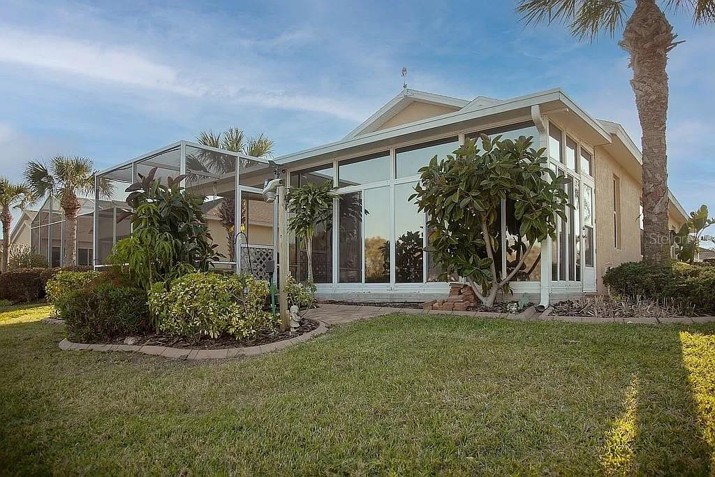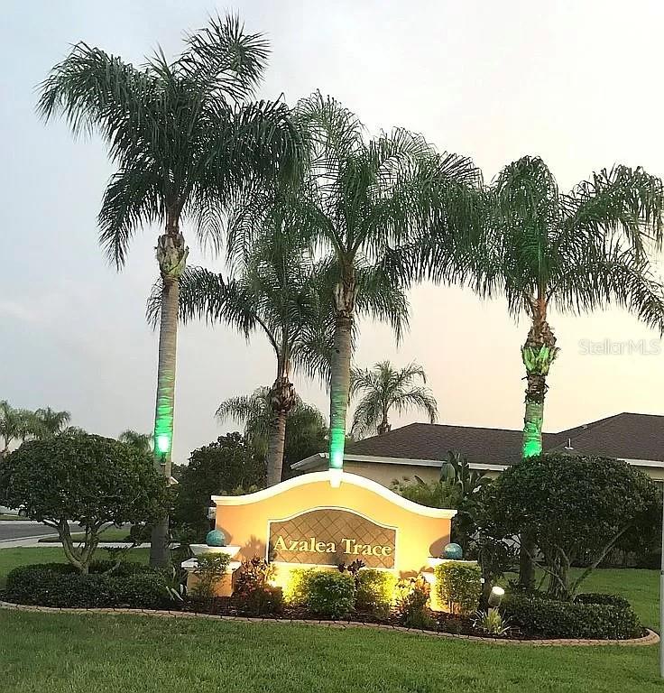 Waterfront and membership owned golf course view. 3-bedroom 2 bath open floorplan in 55+ community: secluded, highly desirable Azalea Trace enclave! The home has plantation shutters. Few homes in the area offer such a unique and private setting. The floor plan is Plumeria with the extended great room option. Screened lanai PLUS an enclosed lanai that has PGT high impact window panels and Coolaroo shades for maximum privacy, security, temperature control and separate AC/Heat. Tile and wood laminate flooring in living area. Two car garage has power roll up screen; Garage has steel tool cabinets. Front entry area is enclosed and screened. Bedrooms are spacious, and there is storage galore. Master bathroom is handicap accessible, with a walk-in shower. All appliances included…even the washer and dryer. New Roof 2022, HOA only $125/month (includes lawn, common areas and pond maintenance) No Storm issues Home s set on a high certified elevation and totally high and dry.