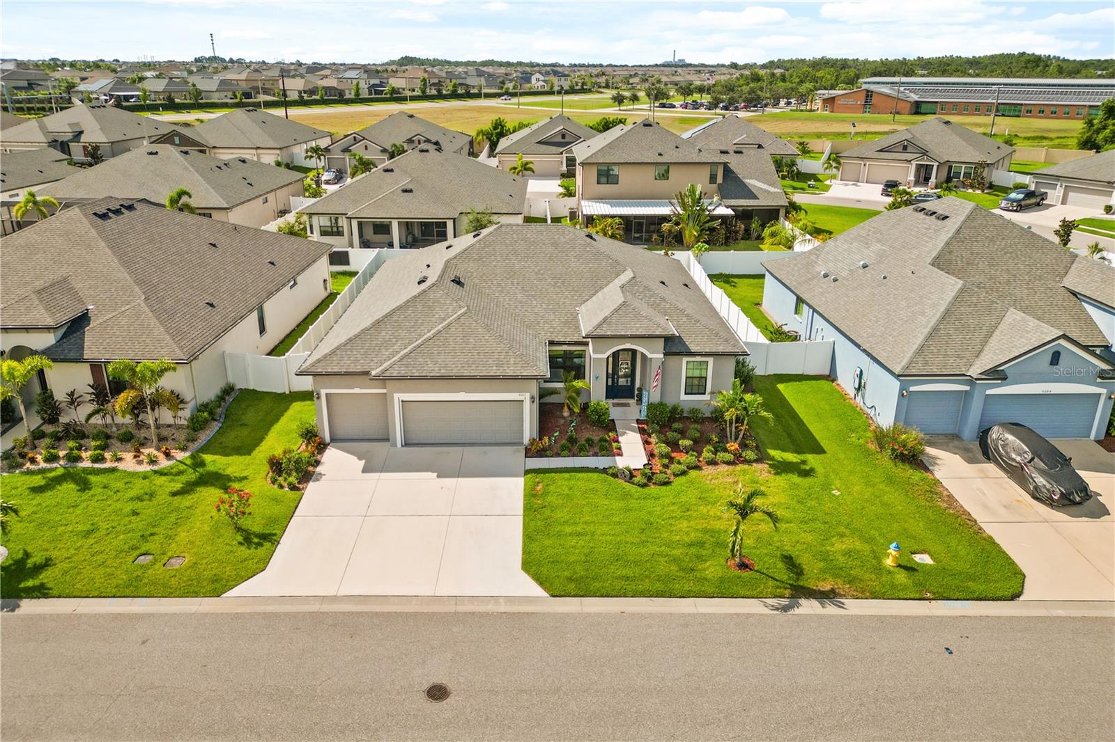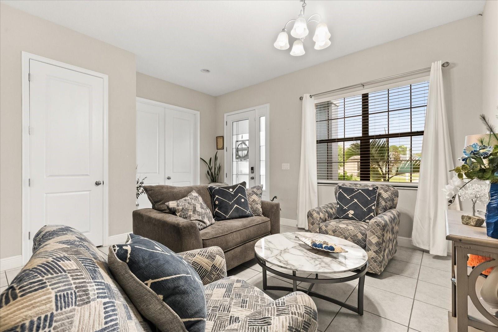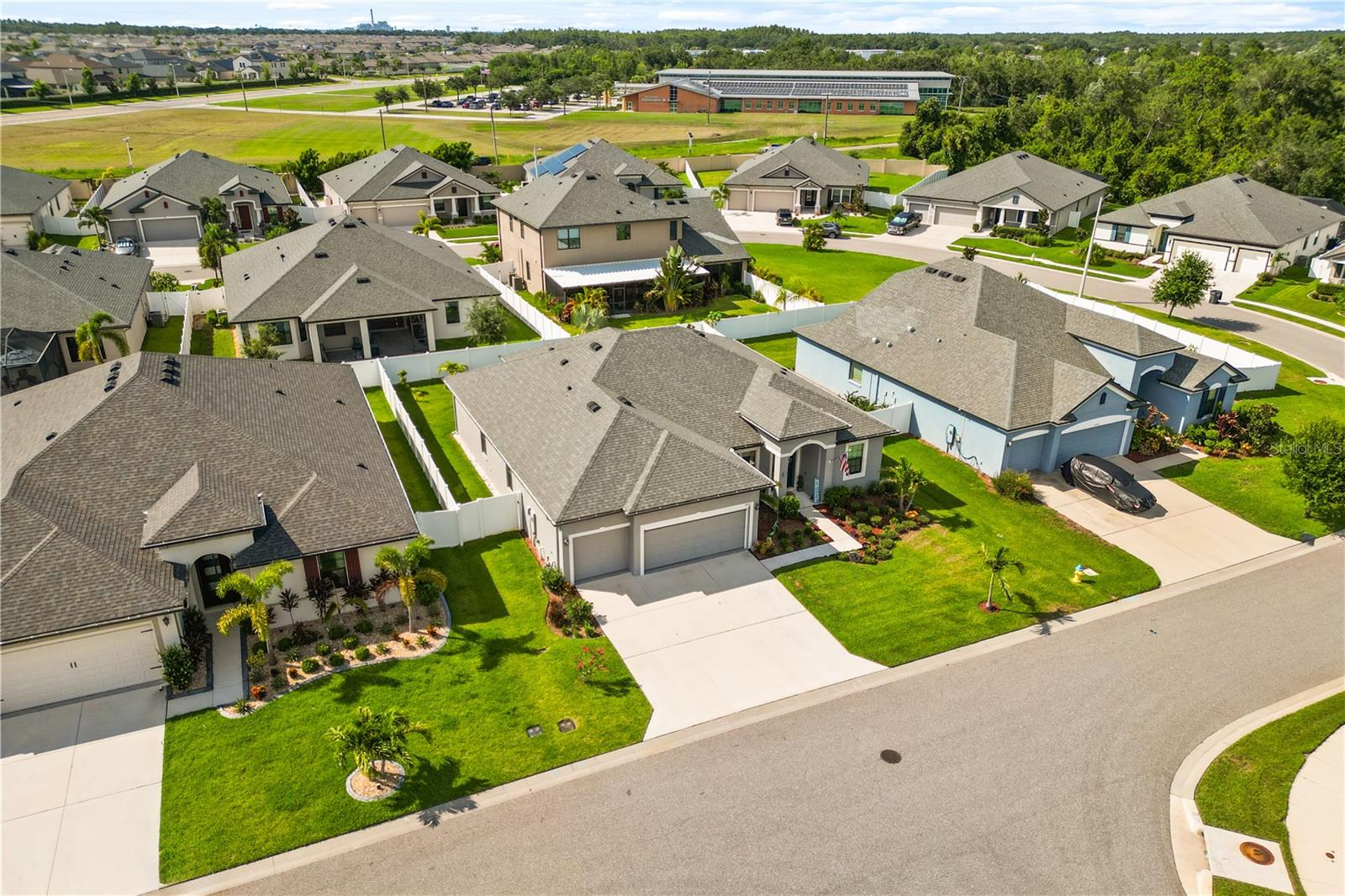 Welcome to this exceptional, move-in ready home located in the heart of Sun City Center, Florida. Nestled in a quiet neighborhood, this gorgeous residence offers the perfect balance of comfort and luxury. The open-concept living spaces are thoughtfully designed to create an inviting atmosphere, while large windows frame panoramic views of the lush surrounding landscape. Upon entering, you are greeted by a spacious foyer that leads into a bright and airy living room, perfect for entertaining. The gourmet kitchen is equipped with top-of-the-line appliances, ample cabinetry, and a large island that serves as the heart of the home, ideal for both casual dining and hosting guests. Adjacent to the kitchen, the dining area seamlessly flows into the living space, creating an ideal layout for modern living. The home boasts generously sized bedrooms with plenty of natural light, providing serene retreats for rest and relaxation. The master suite is a standout, featuring a walk-in closet and a luxurious en-suite bath with a soaking tub, separate shower, and dual vanities. Step outside to enjoy the tranquil, private backyard where you can unwind in the serene surroundings or host family and friends. The community provides access to a range of amenities, offering a lifestyle that blends relaxation and convenience. This home is a true gem, offering elegance, functionality, and a location that provides easy access to shopping, dining, and recreational opportunities in Sun City Center.