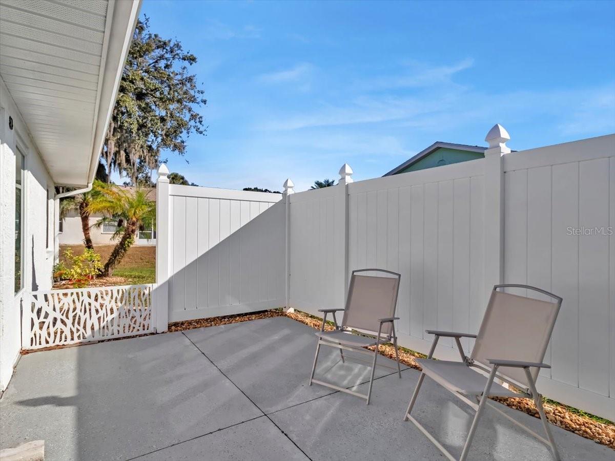 This 2 Bedroom / 2 Bathroom Villa is located in the very desirable Cypressview II Community in Sun City. The brand new kitchen has modern cabinets with granite countertops, open living room and dining room, and a patio with durable vinyl fencing for privacy. The master bedroom has a larger walk-in closet, the guest bedroom could also be used as an office or guestroom. The garage has plenty of room for your car and a space for your golf cart. Everything about this property looks new- meticulously maintained. Nearly entire house has been upgraded. Experience what Sun City has! with it's many amenities including indoor and outdoor pools, a huge fitness center, tennis courts, shuffleboard, pickle ball, and over 200 clubs to keep you busy, and much more. You can drive a car or take a golf cart to get you around town. The low monthly HOA covers lawn care and water for irrigation. Welcome home!