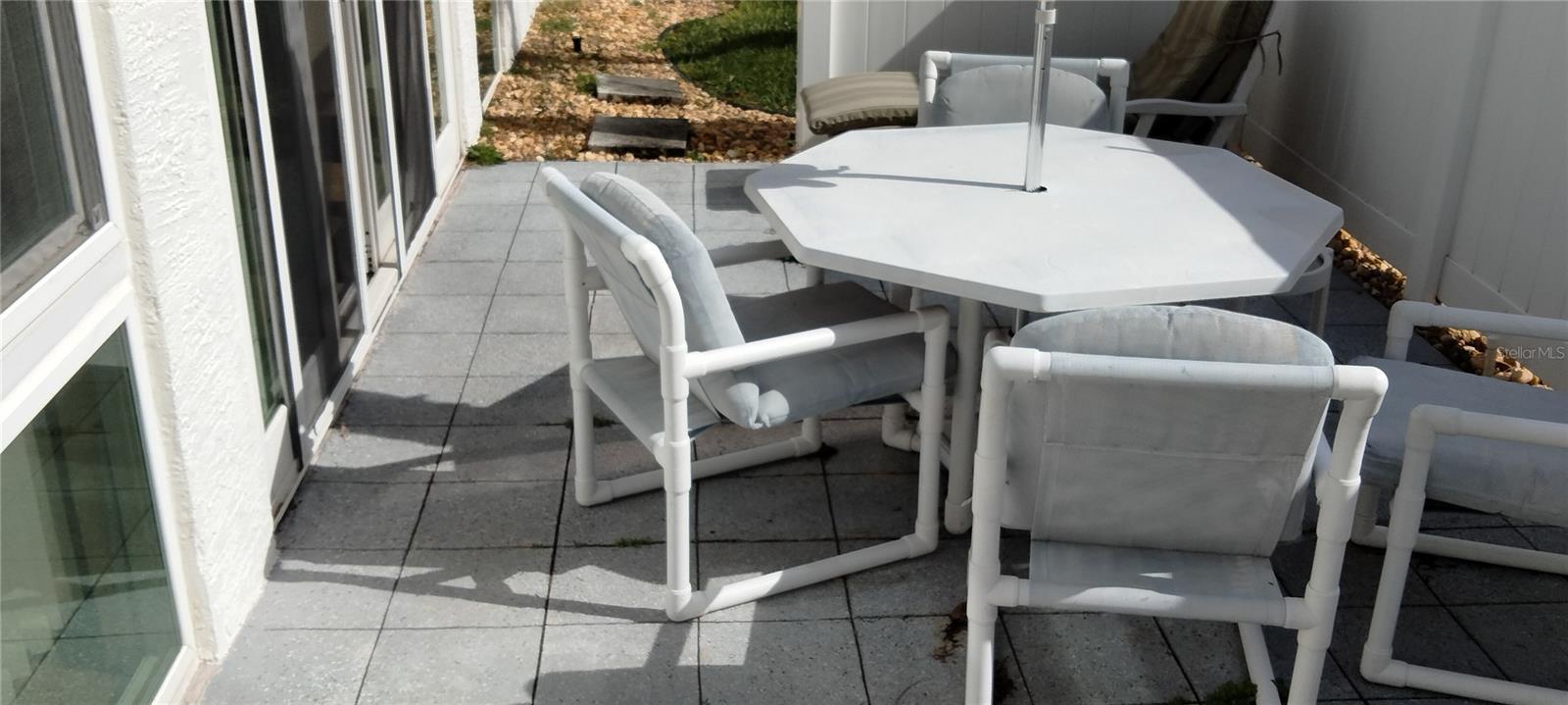 This 2 Bedroom / 2 Bathroom corner Villa is in the very desirable Cypressview II Community in Sun City. Walk into an open concept home with a wall of windows and sliding glass doors looking onto the patio. The kitchenhas backsplash and newer fridge, stove and microwave. Home features an open living room, large sitting/dining room with patio surrounded by durable vinyl fencing for privacy. The primary bedroom is currently used as an office with large desk, queen sofa bed, en-suite full bath with shower and walk-in closet. 2nd bedroom has a King size BeautyRest mattress and boxspring and large closet. The garage has plenty of room for your car, storage and space for your golf cart. There is currently a golf cart at property which is for sale. Everything about this property has been well maintained. Home is located on a quiet cul-de-sac with plenty of overflow parking. Attached Villa is also for sale (different owners). Great Investment potential: buy both units for double rental income or live on one side and rent out the other to pay the mortgage! Experience what Sun City Center has! Many amenities including indoor and outdoor pools, a huge fitness center, tennis courts, shuffleboard, pickle ball, entertainment and over 200 clubs, to keep you busy. You can drive a car or take a golf cart to get you around town. The low monthly HOA covers lawn care and water for irrigation. Welcome home!