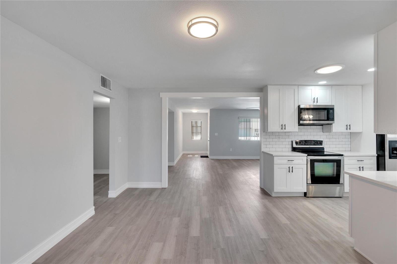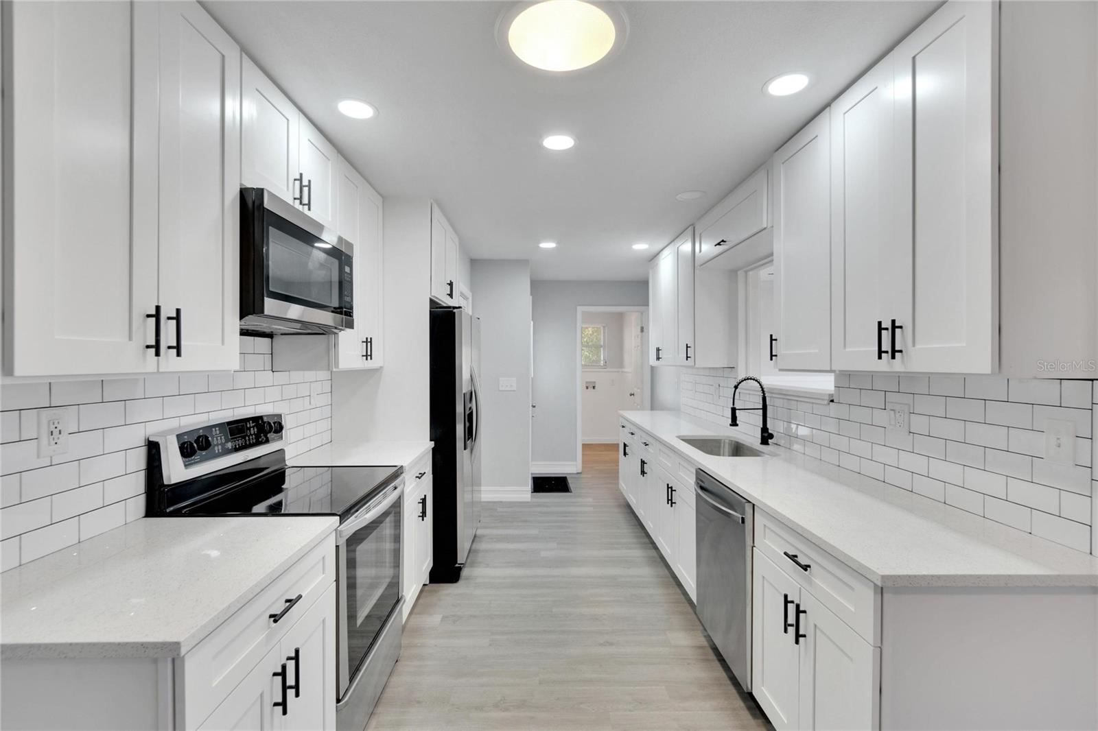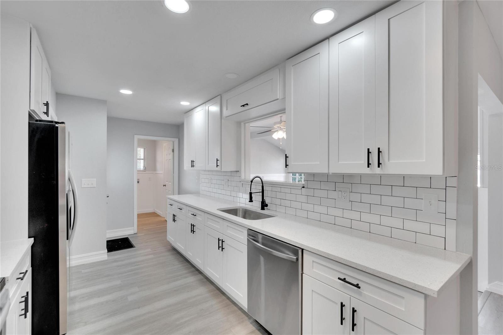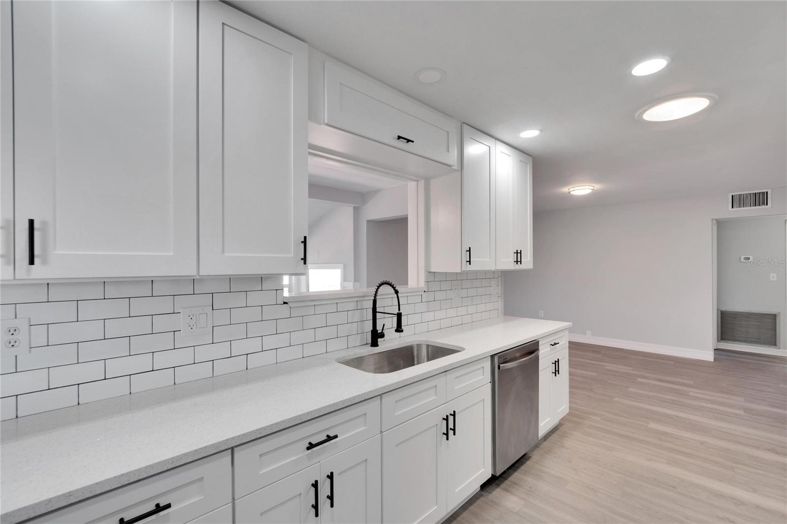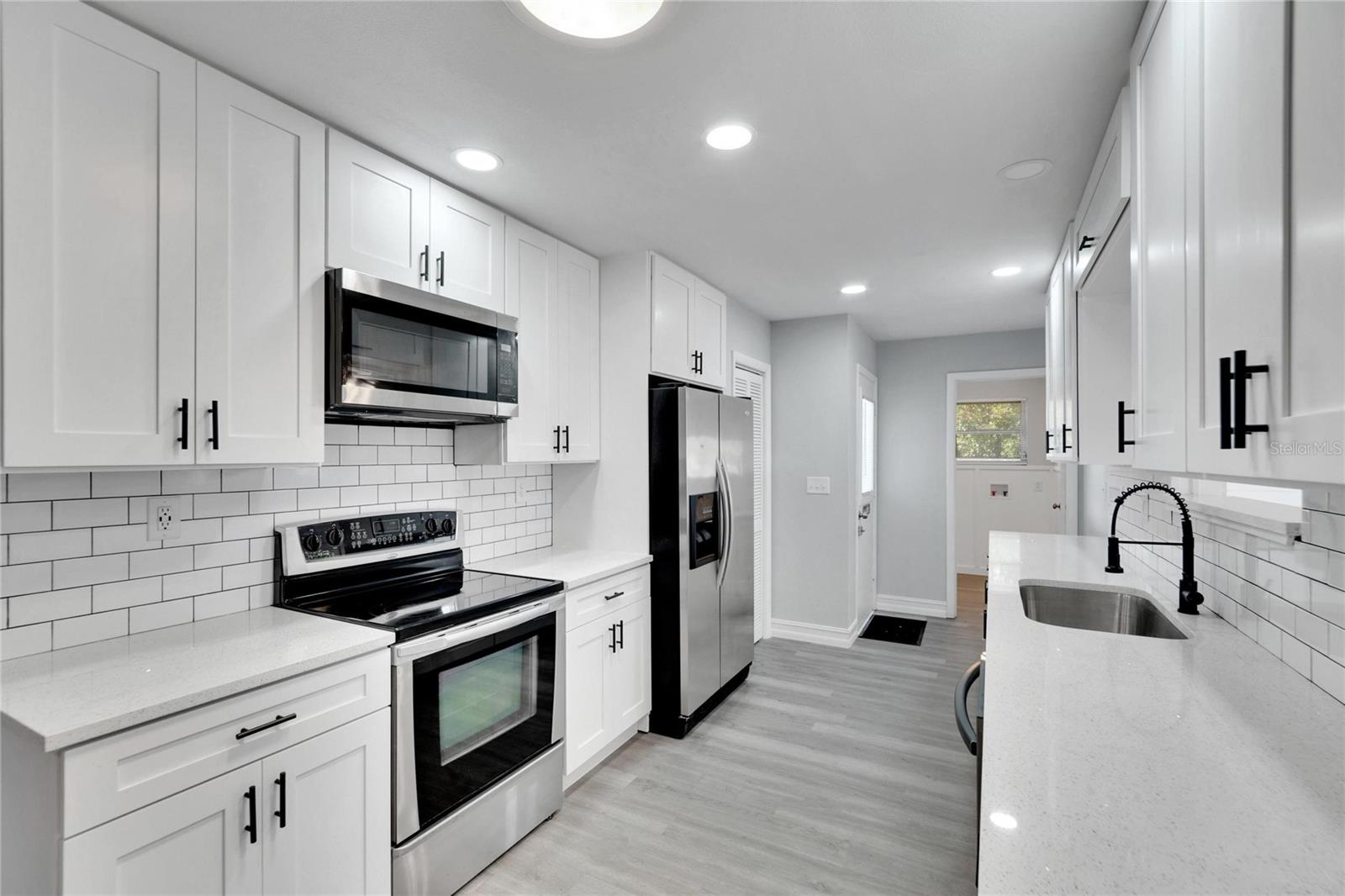 This fully remodeled, turnkey home in desirable 55+ community in Sun City Center, FL, offers a comfortable and stylish living space. 2 Bedrooms, 2 Baths, New roof installed in December 2023. New luxury vinyl flooring throughout, fresh paint inside and out. Kitchen remodeled with new cabinets, soft-close drawers, beautiful backsplash, stainless steel appliances, a single deep sink with a designer faucet, and bright quartz countertops providing ample workspace. Bathrooms are beautifully renovated with stunning quartz in the primary bath and 2nd bath. Community Features allows golf carts, making nearby shopping easily accessible. Recreation: Sun City Center offers various amenities such as indoor and outdoor swimming pools, a large fitness center, tennis courts, dog parks, pickleball, and clubs for various interests. Easy access to I-75, conveniently located near the sunny beaches of Sarasota or St. Petersburg, and within reach of events in Tampa, Sarasota, and Orlando. Book your tour today.