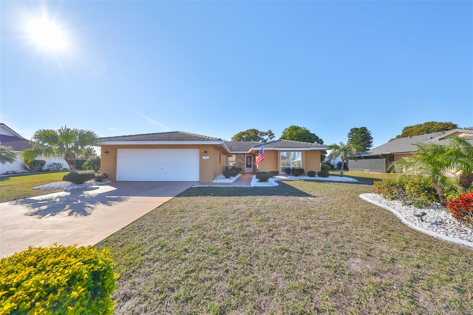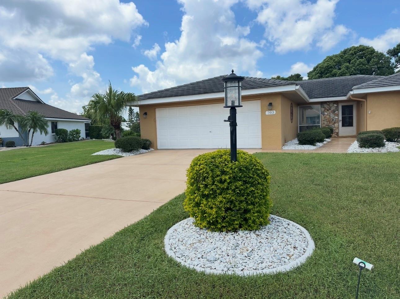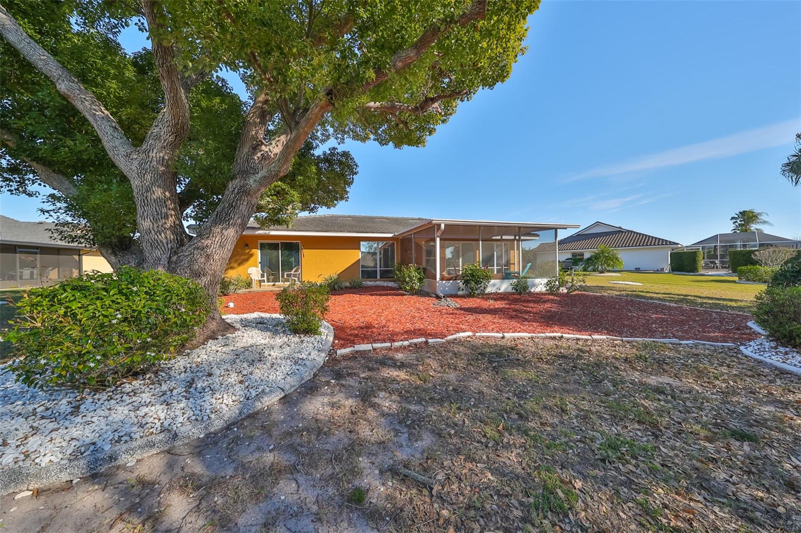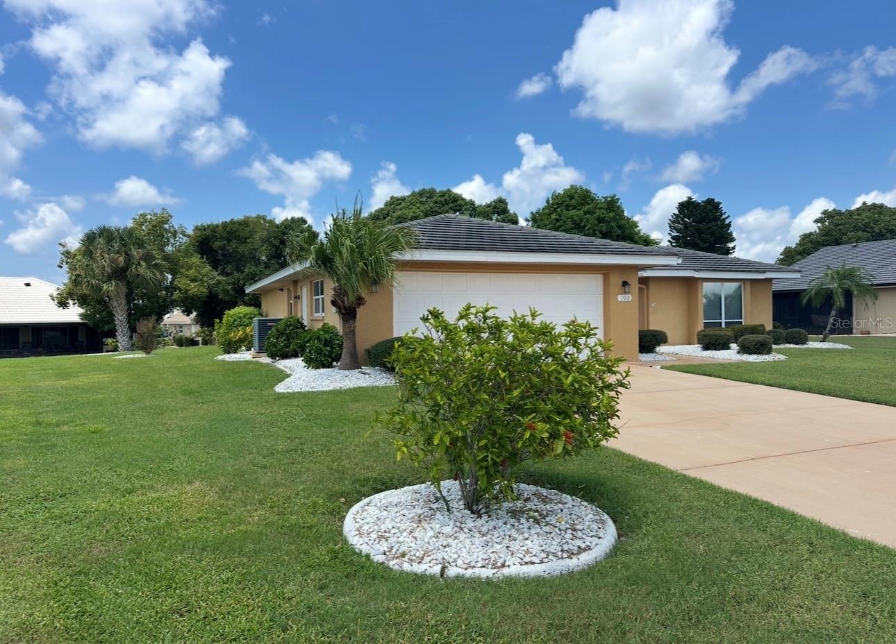 Charming Augusta Floor Plan - 2 Bed, 2 Bath Home in Greenbriar, Sun City Center 55+ Community Discover the epitome of comfortable living in this meticulously maintained 2-bedroom, 2-bath home, featuring the sought-after Augusta floor plan. Nestled in the desirable Greenbriar neighborhood within Sun City Center's vibrant 55+ community, this residence invites you to experience the best in active senior living. Key Features: * Customized Layout: Enjoy a thoughtfully designed 18x10 Family room, seamlessly connected to the kitchen, creating a warm and inviting space for gatherings. * Curb Appeal: Aesthetically pleasing with a flat tile roof, a wood-looking front door, and a tiled walkway leading to the entrance, this home captivates from the moment you arrive. * Interior Elegance: Laminate flooring throughout, complemented by tile in wet areas, provides both practicality and style. * Kitchen Delight: The kitchen is a chef's dream, featuring a solar tube for natural light, light cabinets, solid surface counters, loads of drawers, lazy Susan, and newer stainless appliances. * Masterful Baths: Both baths boast tall vanities with double sinks, new faucets, and a granite counter in the Primary bath, creating a spa-like retreat. Outdoor Oasis: * Relish the outdoors on the new (2021) private covered screened 17x15 patio, set in an attractively landscaped private backyard. Modern Comforts: * Stay comfortable with a newer HVAC system installed in 2019. * Greenbriar offers an attractive low HOA fee of only $115 a year. Community Amenities: * Immerse yourself in the vibrant Sun City Center community, featuring 3 heated pools, a state-of-the-art fitness center, a sports complex, arts & crafts building, two clubhouses, and over 150 social and sports clubs—all accessible by golf cart. Location Highlights: Conveniently located to Tampa, Sarasota, St. Petersburg, Tampa International Airport, sporting events, beaches, theaters, shopping, dining, and more, Sun City Center is an amazing place to call home. Experience the joy of active living in this charming home—come and make lasting memories in Sun City Center!