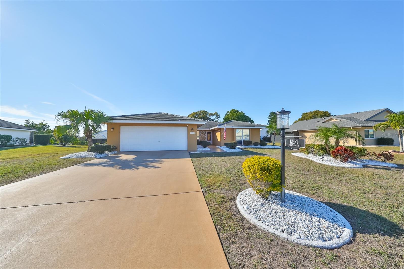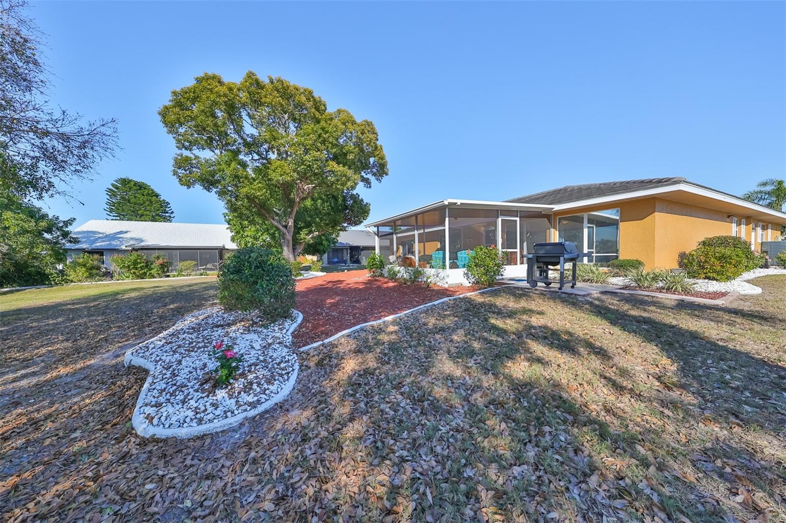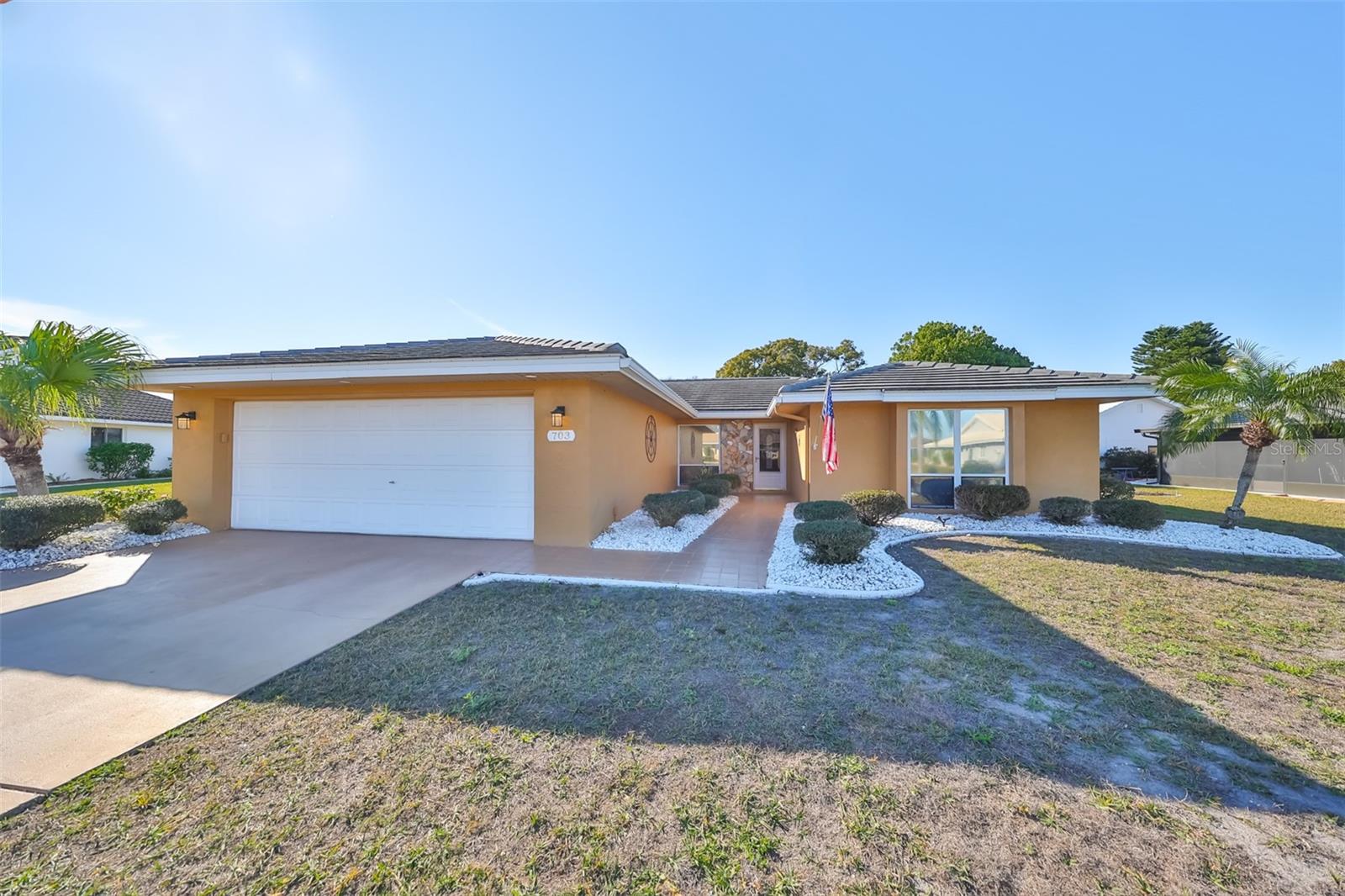 Charming Augusta Floor Plan - 2 Bed, 2 Bath Home in Greenbriar, Sun City Center 55+ Community Discover the epitome of comfortable living in this meticulously maintained 2-bedroom, 2-bath home, featuring the sought-after Augusta floor plan. Nestled in the desirable Greenbriar neighborhood within Sun City Center's vibrant 55+ community, this residence invites you to experience the best in active senior living. Key Features: * Customized Layout: Enjoy a thoughtfully designed 18x10 Family room, seamlessly connected to the kitchen, creating a warm and inviting space for gatherings. * Curb Appeal: Aesthetically pleasing with a flat tile roof, a wood-looking front door, and a tiled walkway leading to the entrance, this home captivates from the moment you arrive. * Interior Elegance: Laminate flooring throughout, complemented by tile in wet areas, provides both practicality and style. * Kitchen Delight: The kitchen is a chef's dream, featuring a solar tube for natural light, light cabinets, solid surface counters, loads of drawers, lazy Susan, and newer stainless appliances. * Masterful Baths: Both baths boast tall vanities with double sinks, new faucets, and a granite counter in the Primary bath, creating a spa-like retreat. Outdoor Oasis: * Relish the outdoors on the new (2021) private covered screened 17x15 patio, set in an attractively landscaped private backyard. Modern Comforts: * Stay comfortable with a newer HVAC system installed in 2019. * Greenbriar offers an attractive low HOA fee of only $115 a year. Community Amenities: * Immerse yourself in the vibrant Sun City Center community, featuring 3 heated pools, a state-of-the-art fitness center, a sports complex, arts & crafts building, two clubhouses, and over 150 social and sports clubs—all accessible by golf cart. Location Highlights: Conveniently located to Tampa, Sarasota, St. Petersburg, Tampa International Airport, sporting events, beaches, theaters, shopping, dining, and more, Sun City Center is an amazing place to call home. Experience the joy of active living in this charming home—come and make lasting memories in Sun City Center!