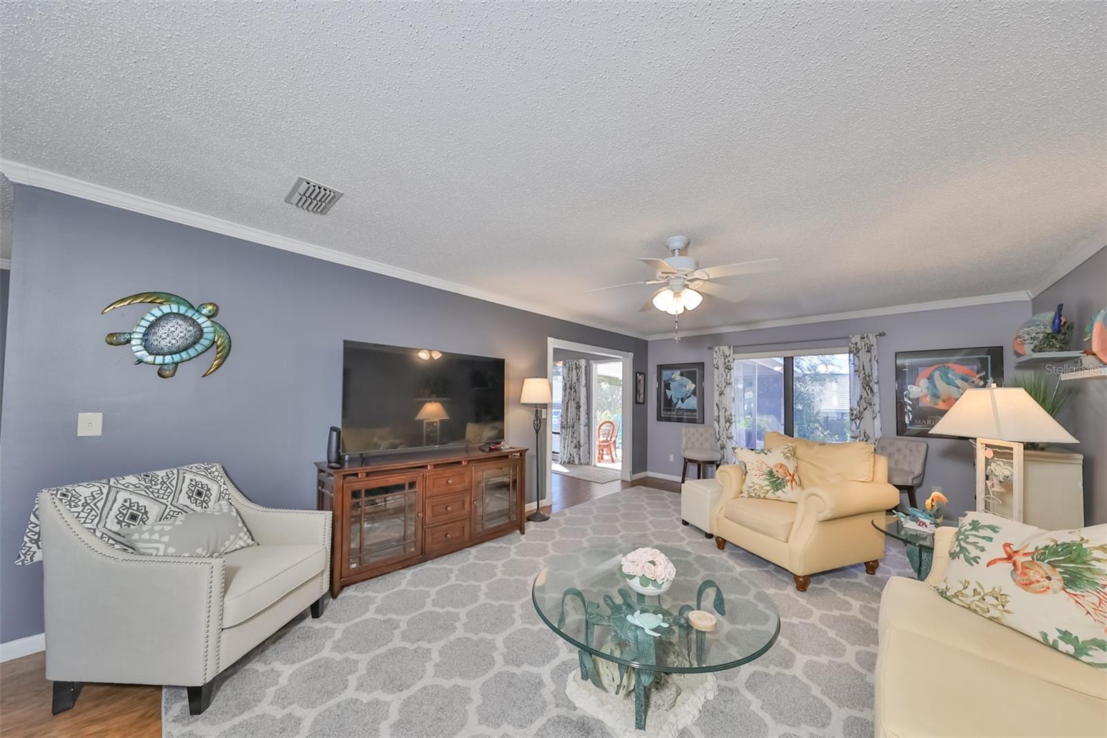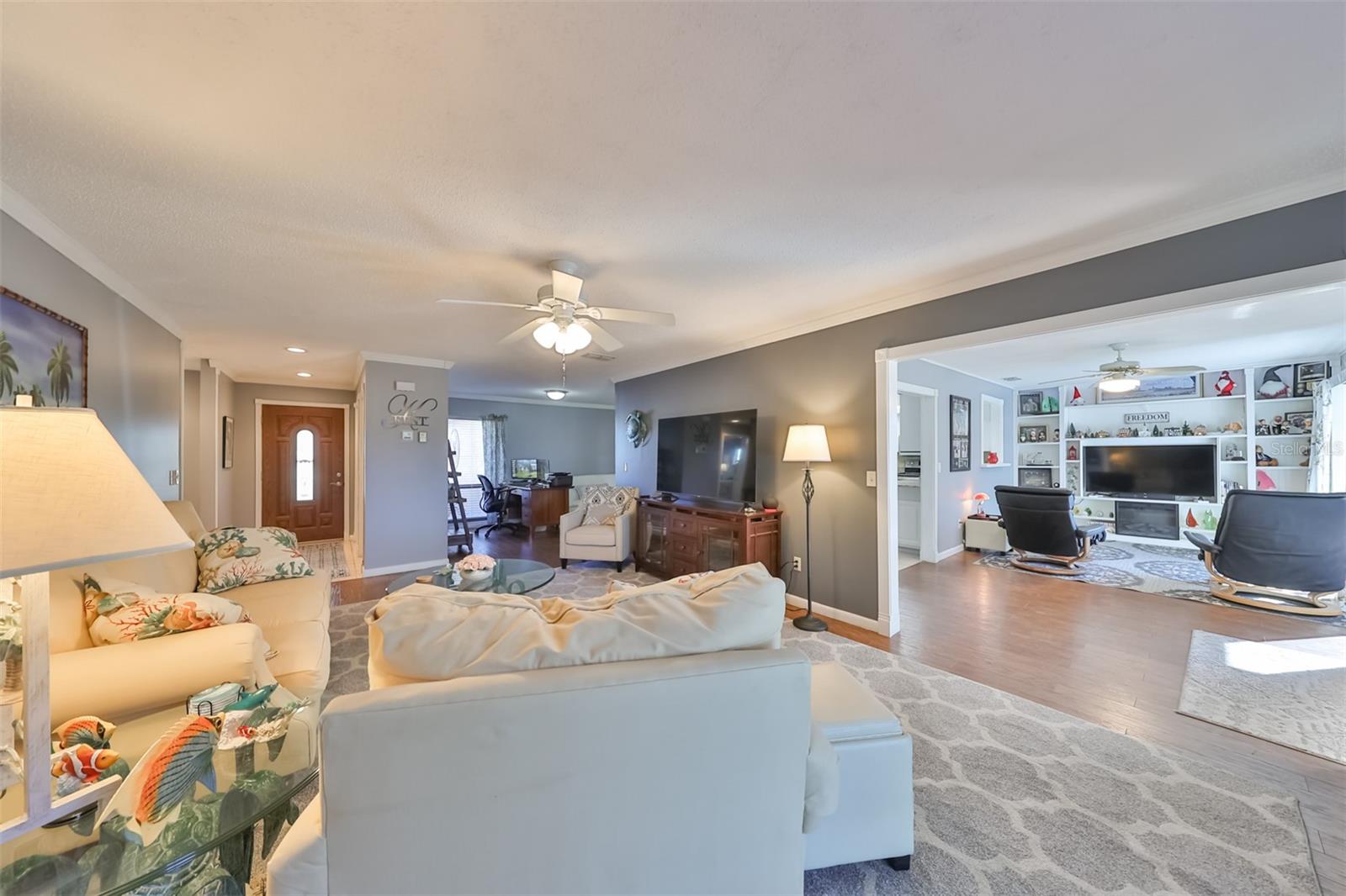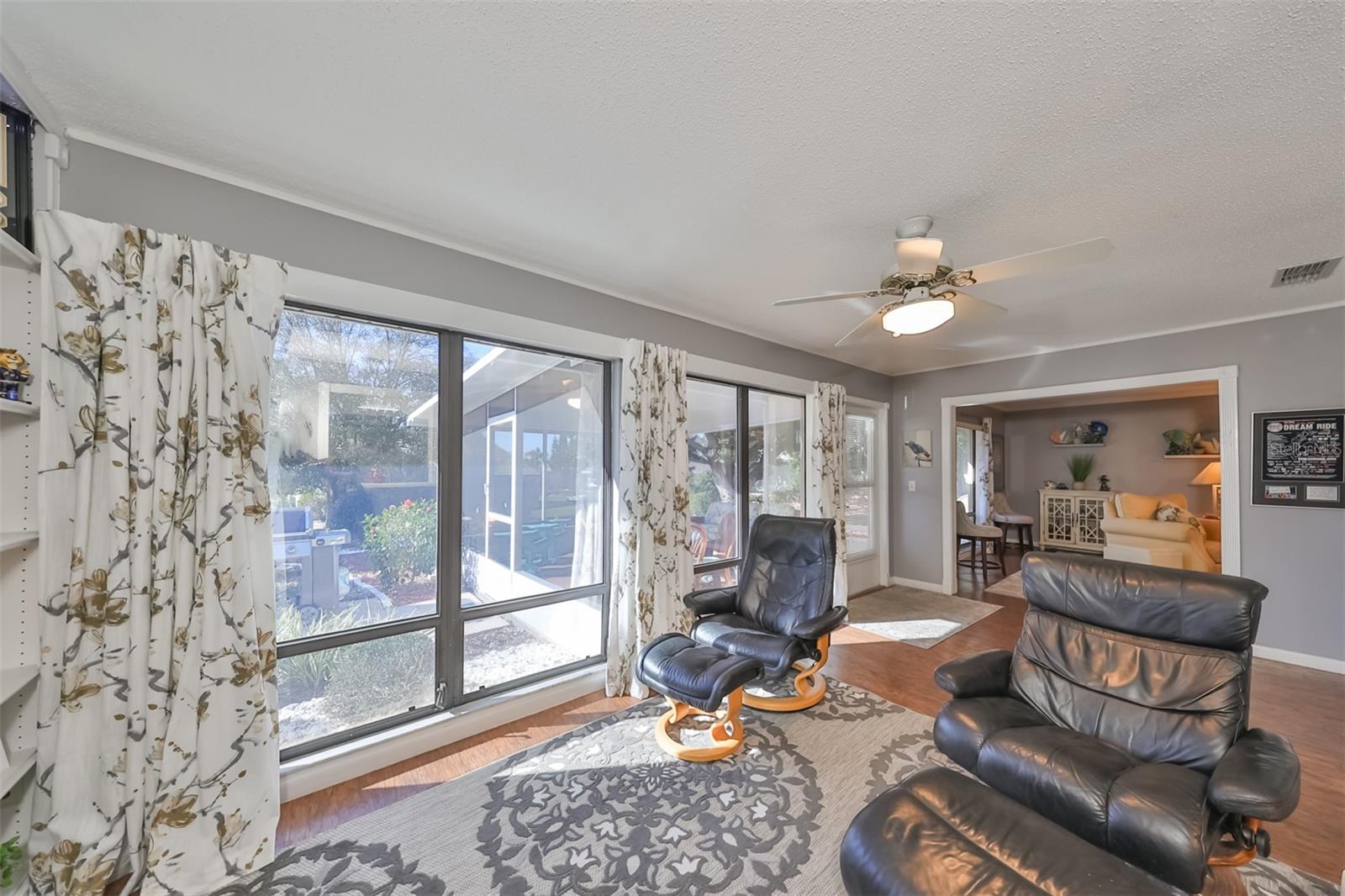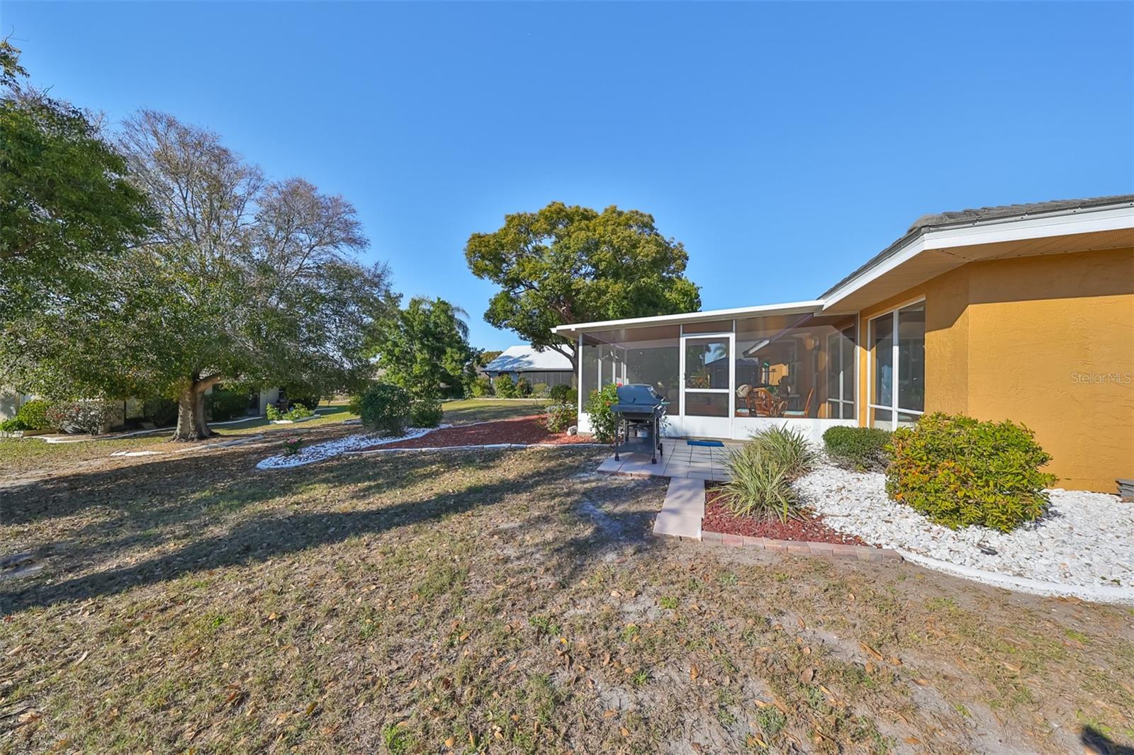 Charming Augusta Floor Plan - 2 Bed, 2 Bath Home in Greenbriar, Sun City Center 55+ Community Discover the epitome of comfortable living in this meticulously maintained 2-bedroom, 2-bath home, featuring the sought-after Augusta floor plan. Nestled in the desirable Greenbriar neighborhood within Sun City Center's vibrant 55+ community, this residence invites you to experience the best in active senior living. Key Features: * Customized Layout: Enjoy a thoughtfully designed 18x10 Family room, seamlessly connected to the kitchen, creating a warm and inviting space for gatherings. * Curb Appeal: Aesthetically pleasing with a flat tile roof, a wood-looking front door, and a tiled walkway leading to the entrance, this home captivates from the moment you arrive. * Interior Elegance: Laminate flooring throughout, complemented by tile in wet areas, provides both practicality and style. * Kitchen Delight: The kitchen is a chef's dream, featuring a solar tube for natural light, light cabinets, solid surface counters, loads of drawers, lazy Susan, and newer stainless appliances. * Masterful Baths: Both baths boast tall vanities with double sinks, new faucets, and a granite counter in the Primary bath, creating a spa-like retreat. Outdoor Oasis: * Relish the outdoors on the new (2021) private covered screened 17x15 patio, set in an attractively landscaped private backyard. Modern Comforts: * Stay comfortable with a newer HVAC system installed in 2019. * Greenbriar offers an attractive low HOA fee of only $115 a year. Community Amenities: * Immerse yourself in the vibrant Sun City Center community, featuring 3 heated pools, a state-of-the-art fitness center, a sports complex, arts & crafts building, two clubhouses, and over 150 social and sports clubs—all accessible by golf cart. Location Highlights: Conveniently located to Tampa, Sarasota, St. Petersburg, Tampa International Airport, sporting events, beaches, theaters, shopping, dining, and more, Sun City Center is an amazing place to call home. Experience the joy of active living in this charming home—come and make lasting memories in Sun City Center!