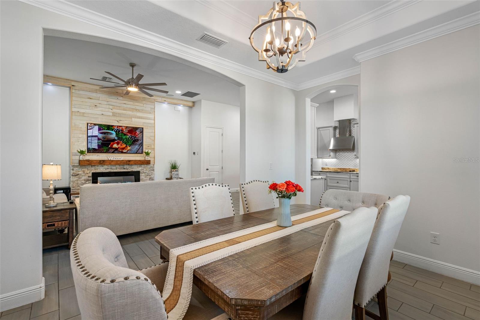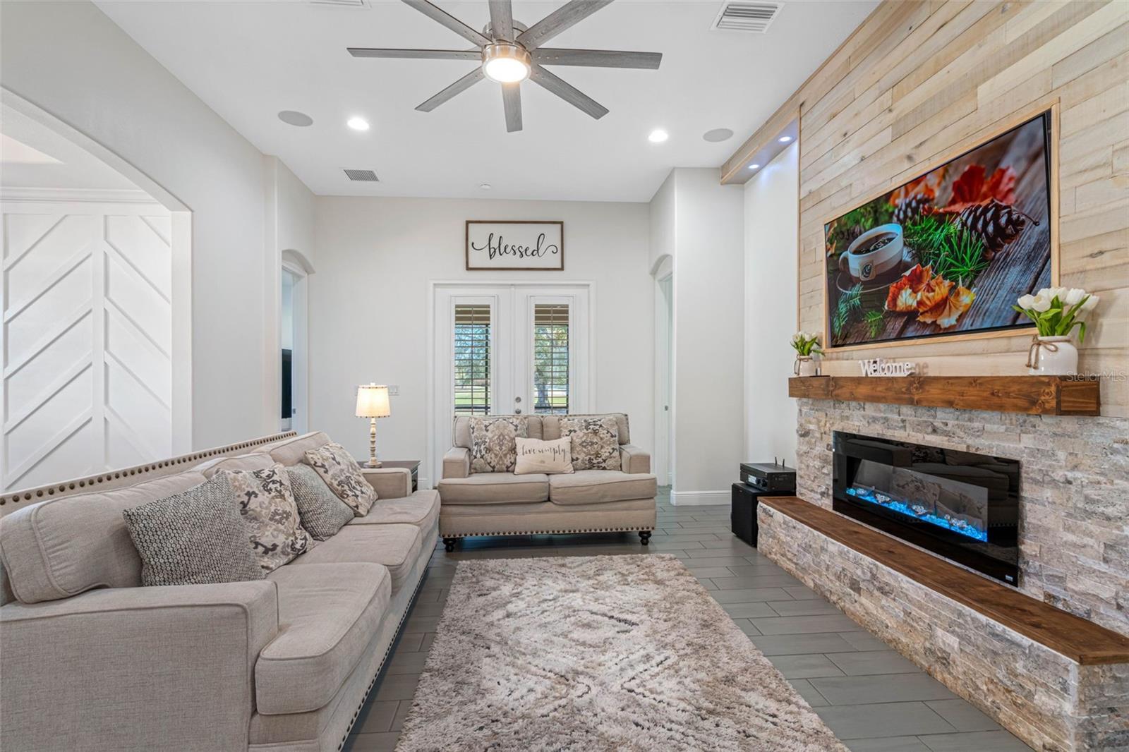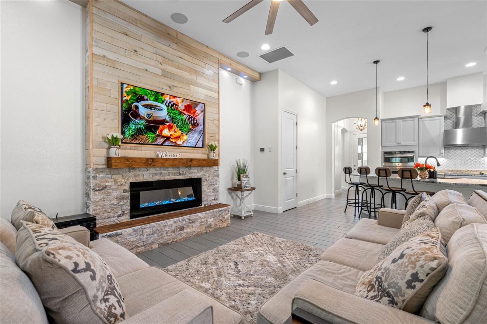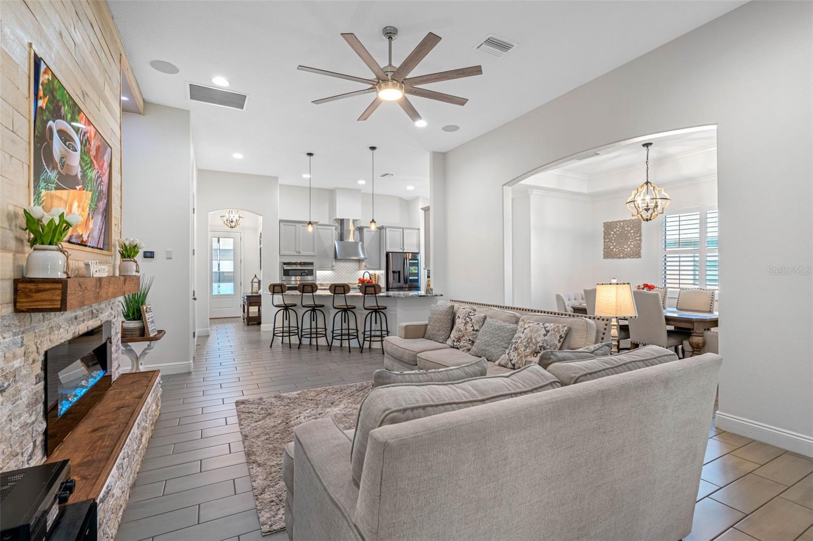 **BACK ON THE MARKET - BUYER FINANCING FELL THRU** Welcome to the exquisite Villa D'Este within The Villages at Cypress Creek, a gated and golf community nestled within a sprawling 1,600-acre golf course paradise. This stunning maintained home, constructed in 2021, boasts a spacious 3-car garage and features 4 bedrooms and 3 full bathrooms. The open floor plan seamlessly integrates a formal dining room, a comfortable living room, an inviting eat-in kitchen space, and a convenient inside laundry room, complete with a front loader washer and dryer. The kitchen is a chef's delight, outfitted with stainless steel appliances, premium granite countertops, and a stylish tiled backsplash. The living and dining areas showcase the latest in modern design, with stunning custom wood accent walls and a built-in electric fireplace, creating a cozy ambiance for gatherings. Residents of this community enjoy exclusive access to a community pool and golf course, all without the burden of CDD fees and with a low HOA. Additionally, the location is unbeatable, offering easy access to major interstates, shopping centers, top-notch medical facilities, and pristine beaches. This home comes with a myriad of desirable features, including: Gated community for added security, Stunning golf course views, Gourmet kitchen with premium finishes, Tile flooring throughout the house, Plantation shutters for privacy and style, Surround sound speakers for enhanced entertainment, Generator hookup with a separate breaker for peace of mind during power outages, Exterior pool outlet for convenience of building in the future, Storm shutters for added protection, Impressive 14-foot ceilings and 9-foot doors, Screened lanai for outdoor enjoyment. Don't miss this opportunity to own a piece of luxury living in this esteemed community.