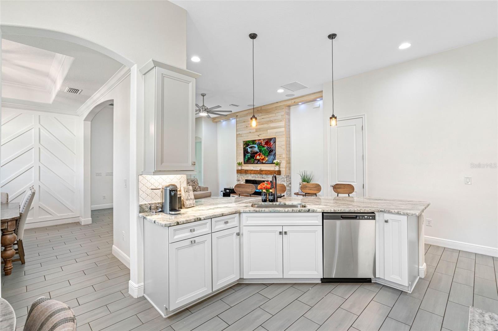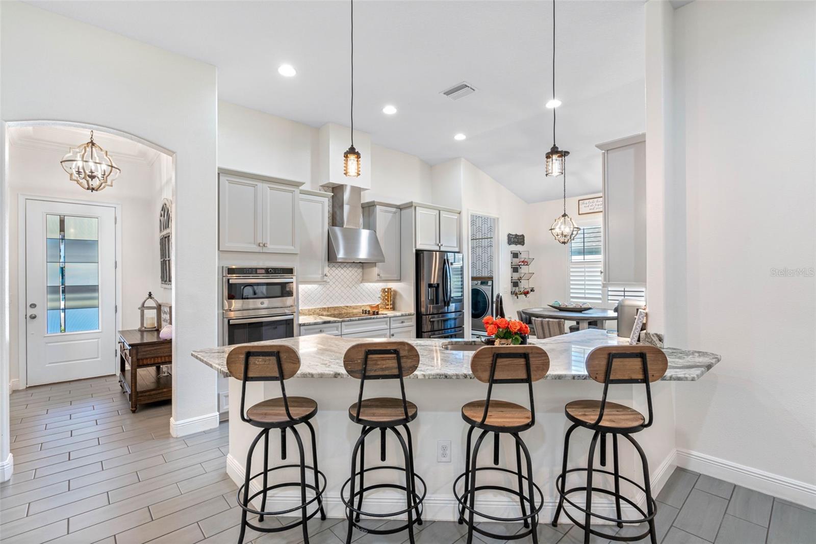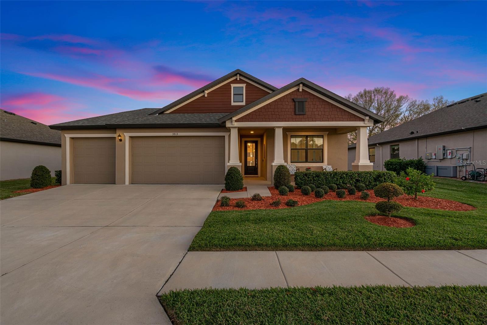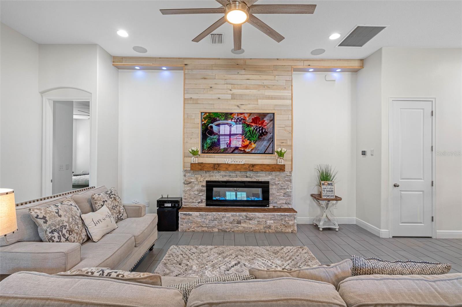 **BACK ON THE MARKET - BUYER FINANCING FELL THRU** Welcome to the exquisite Villa D'Este within The Villages at Cypress Creek, a gated and golf community nestled within a sprawling 1,600-acre golf course paradise. This stunning maintained home, constructed in 2021, boasts a spacious 3-car garage and features 4 bedrooms and 3 full bathrooms. The open floor plan seamlessly integrates a formal dining room, a comfortable living room, an inviting eat-in kitchen space, and a convenient inside laundry room, complete with a front loader washer and dryer. The kitchen is a chef's delight, outfitted with stainless steel appliances, premium granite countertops, and a stylish tiled backsplash. The living and dining areas showcase the latest in modern design, with stunning custom wood accent walls and a built-in electric fireplace, creating a cozy ambiance for gatherings. Residents of this community enjoy exclusive access to a community pool and golf course, all without the burden of CDD fees and with a low HOA. Additionally, the location is unbeatable, offering easy access to major interstates, shopping centers, top-notch medical facilities, and pristine beaches. This home comes with a myriad of desirable features, including: Gated community for added security, Stunning golf course views, Gourmet kitchen with premium finishes, Tile flooring throughout the house, Plantation shutters for privacy and style, Surround sound speakers for enhanced entertainment, Generator hookup with a separate breaker for peace of mind during power outages, Exterior pool outlet for convenience of building in the future, Storm shutters for added protection, Impressive 14-foot ceilings and 9-foot doors, Screened lanai for outdoor enjoyment. Don't miss this opportunity to own a piece of luxury living in this esteemed community.