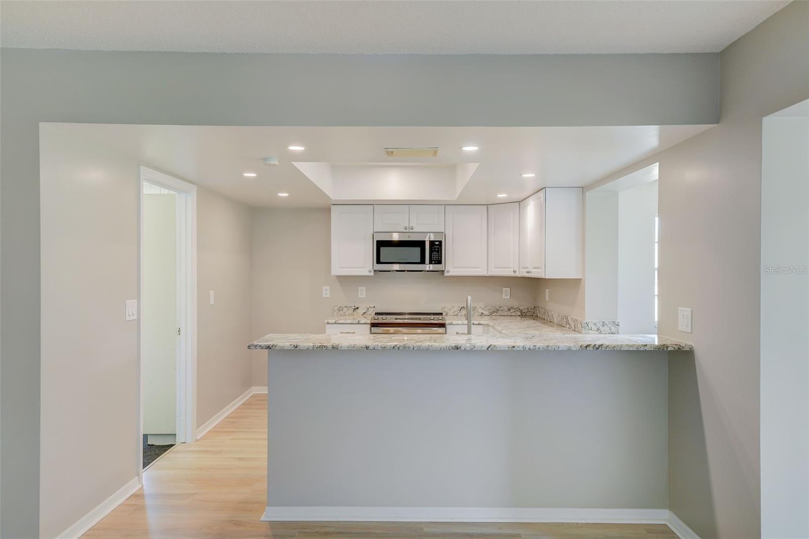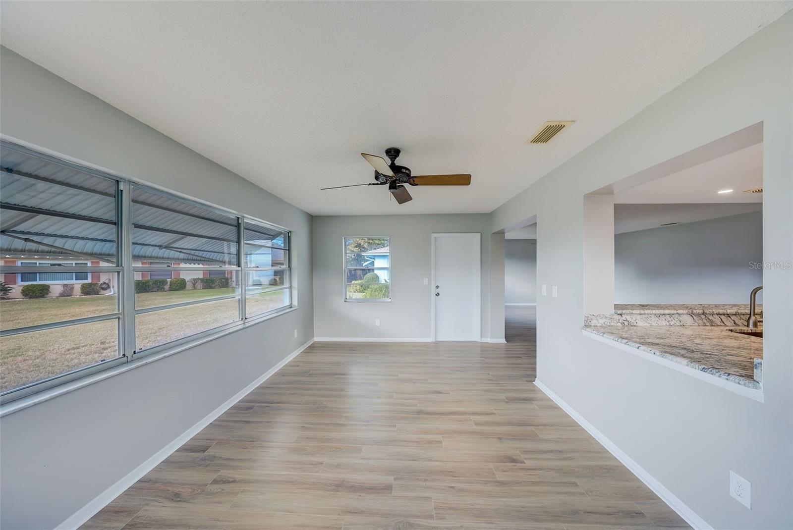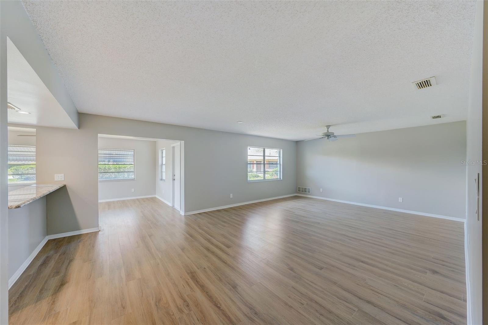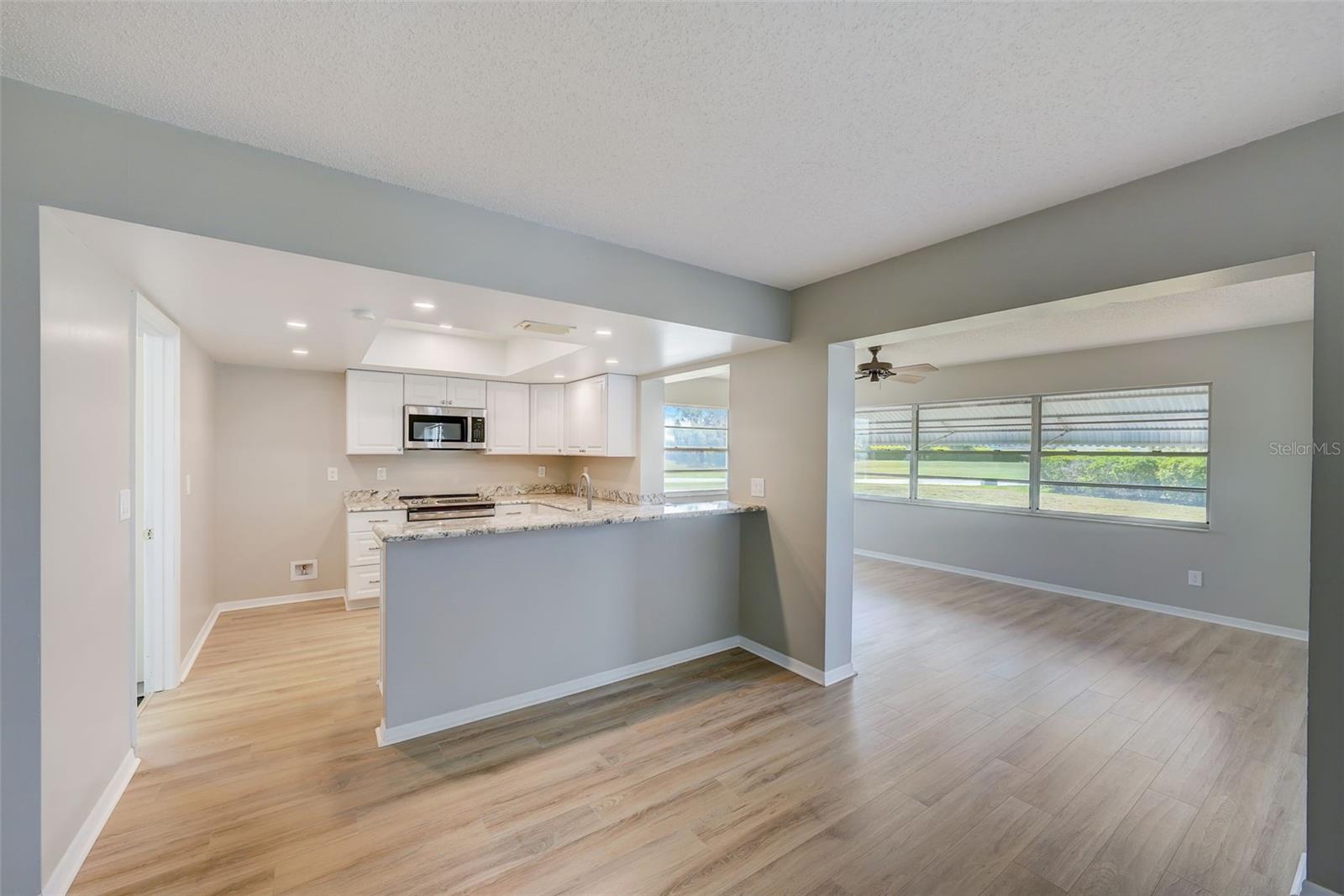 **UPDATED CONDO - Pick your own refrigerator! One of the biggest closets in Kings Point!** ________________________________________________________________________________________________________________ Don't miss out! This beautifully updated 2 bedroom, 2 bathroom Kings Point condo is maintenance-free and ready for its new owner! As you approach, the quiet street with mature landscaping are very inviting. The openness and natural light from the new LVP flooring and large windows throughout greet you as you enter. The large kitchen features NEW granite countertops, NEW bright cabinetry, NEW stainless steel appliances, NEW lighting, and a large bar top for seating. The spacious primary bedroom sleeps a king size bed with extra room for other furnishings, and features a GIANT walk-in closet with built-in shelving, plus a renovated ensuite bathroom with standalone shower, linen closet, and modern lighting and vanity. The sunlit secondary bedroom serves as an excellent space for guests or a home office, featuring a recently modernized hallway bathroom conveniently situated just across the hall. This home boasts ample living and entertaining space. The generous combination of the living room and dining area easily accommodates any size furniture. Additionally, the extended family room, equipped with a kitchen pass-through window, offers versatility, serving as a potential office space, a separate TV room, or an extra dining area. Indulge in the vibrant resort-style living experience at Kings Point in Sun City Center with its two guard gated entrances, beautiful North and South clubhouses, multiple indoor and outdoor pools, café dining with full service bar, an 850-seat Veterans Theater, fitness centers, pickleball, golfing, tennis, billiards, golf, over 200 social clubs, and much more. Embrace a year-round active lifestyle at your own pace. Kings Point, a premier planned retirement community, is conveniently situated just a short drive away from the acclaimed Gulf Coast beaches. It offers proximity to Tampa, St. Pete, and Sarasota, as well as cruise ports, upscale dining, shopping destinations, and hospitals. Lawn care, water, sewer, pest control, standard internet, basic cable, exterior grounds maintenance, exterior insurance and use of amenities are included in the monthly dues. Experience the ultimate in carefree living in Florida! Refrigerator will be included with sale of home.