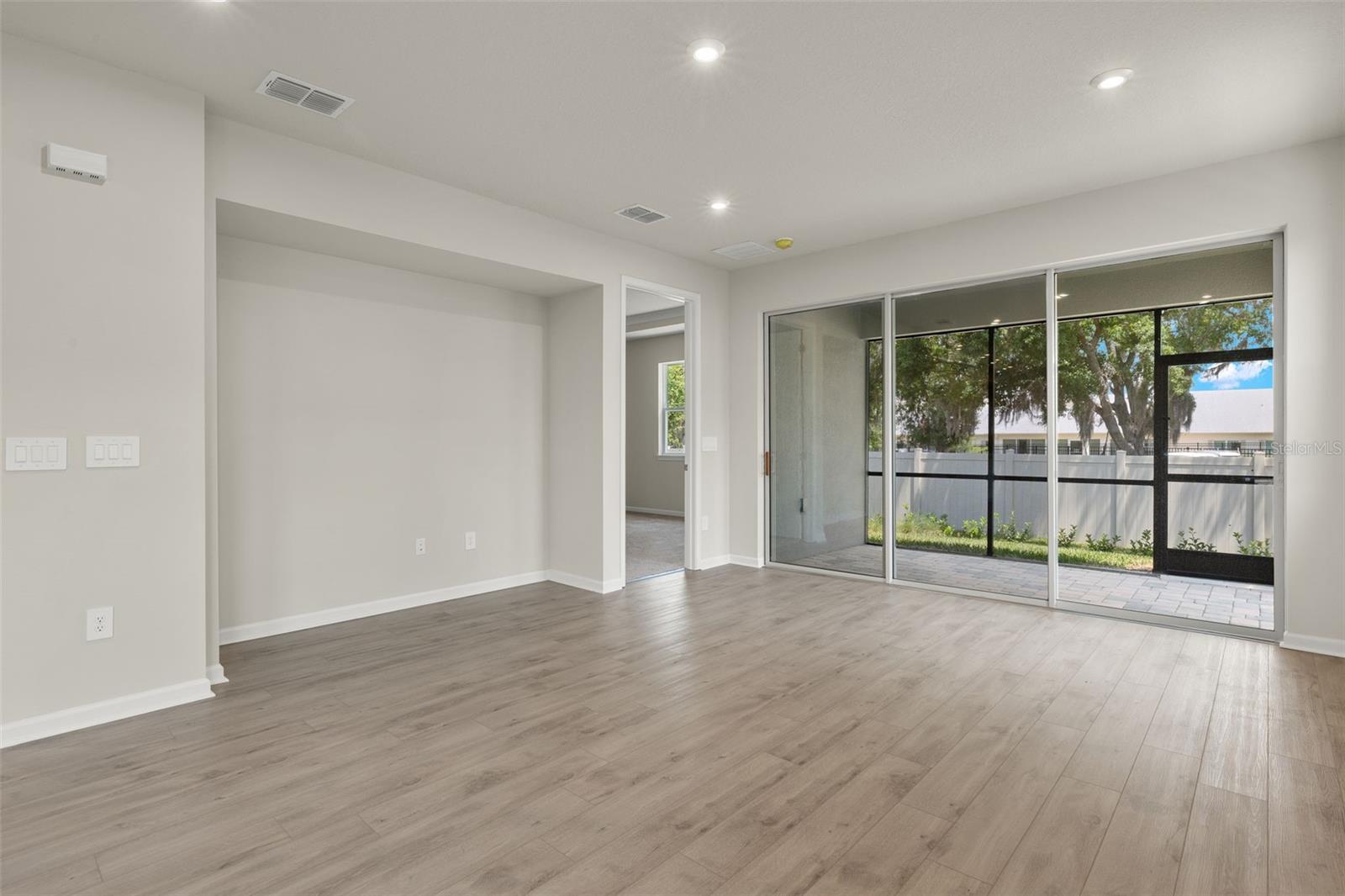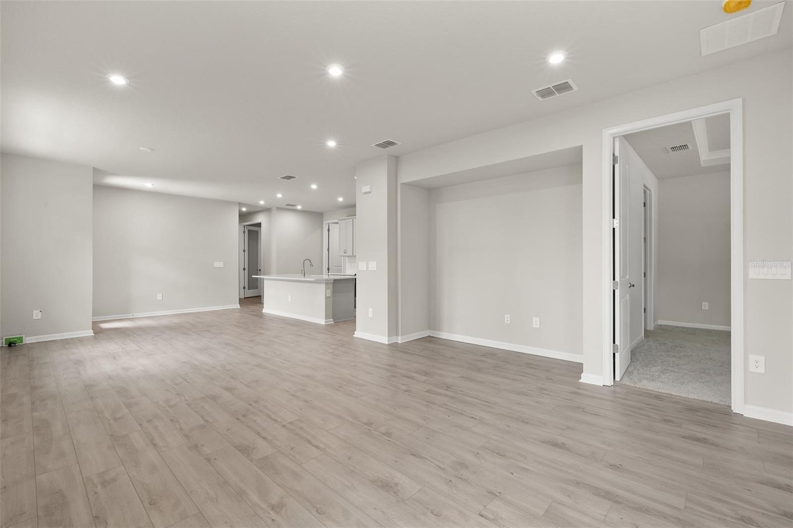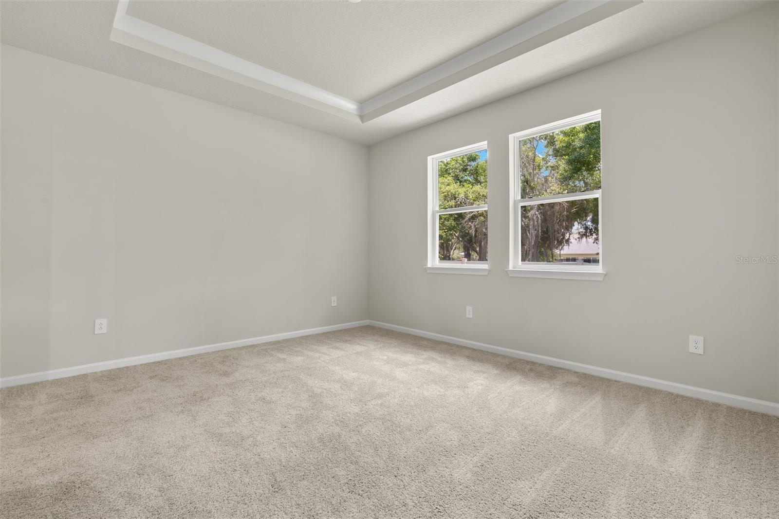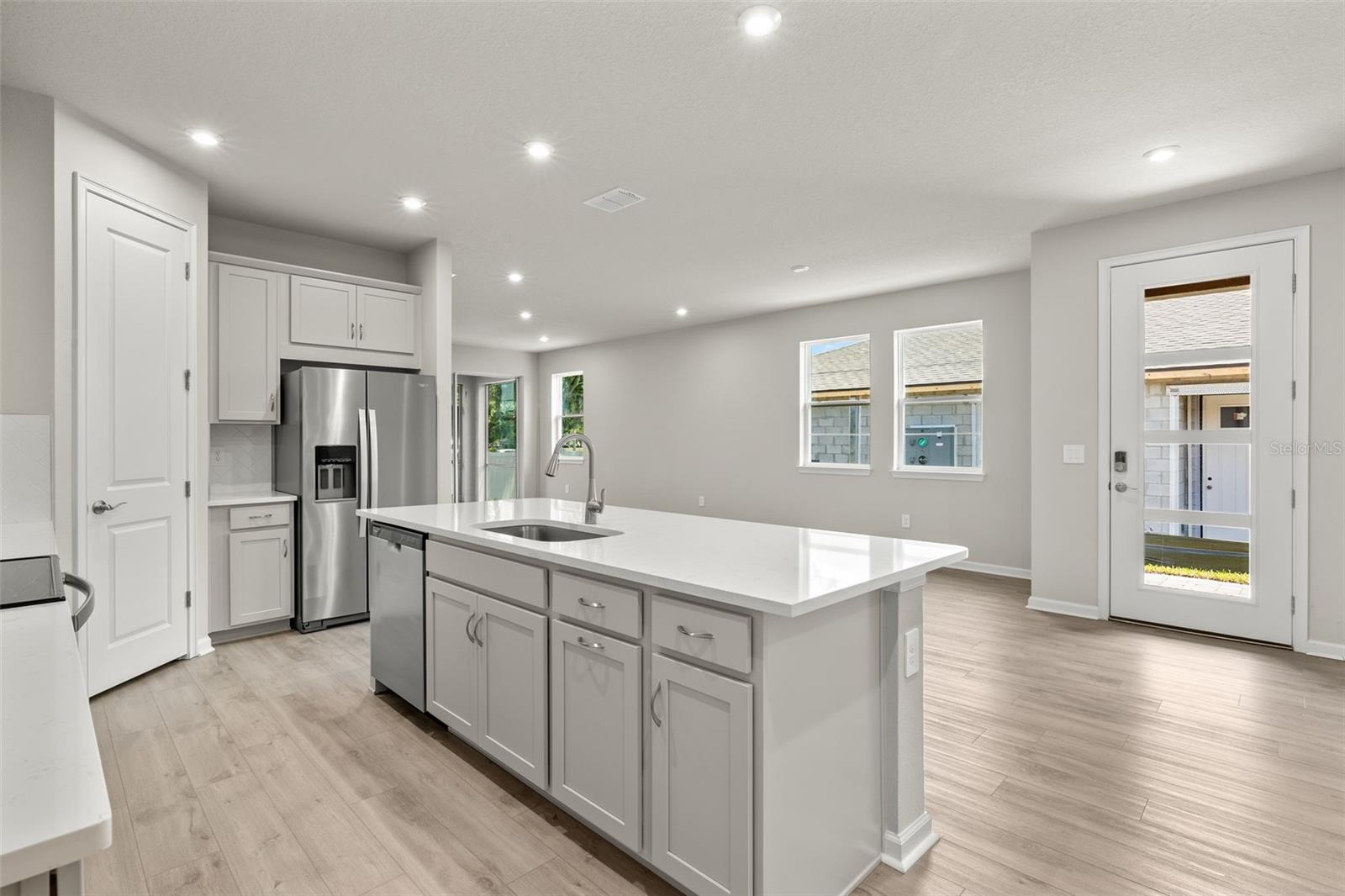 The Topsail model is an end unit villa with an open floor plan and lots of windows for natural light. This home boasts a Contemporary exterior and offers 3 bedrooms, 2 bathrooms, a dedicated study with 8’ French doors and a 2-car garage. The kitchen features light gray Harbor painted cabinetry, Carrara Marmi quartz countertops and has plenty of storage including a large pantry. The kitchen is open to the dining area that flows right into the great room and overlooks the paver screened lanai through 12’ sliding glass doors. All the main living area features luxury vinyl plank tile flooring. The lanai is a perfect spot for a morning cup of coffee or a relaxing evening. The owner’s suite is located at the rear of the villa for optimum privacy. The en suite bathroom offers a dual sink, raised vanity, a large shower, a private water closet and an oversized closet! There is lots of room in this 1,765 square foot home for guests. With this low-maintenance lifestyle, the gated community also offers pickleball, a pool with lap lines, a spa, fire pit area and is golf cart friendly. Photos, renderings and plans are for illustrative purposes only, and should never be relied upon and may vary from the actual home. All dimensions and square footage are approximate. The photos are from a furnished model home and not the home offered for sale. Room Feature: Linen Closet In Bath (Primary Bedroom).