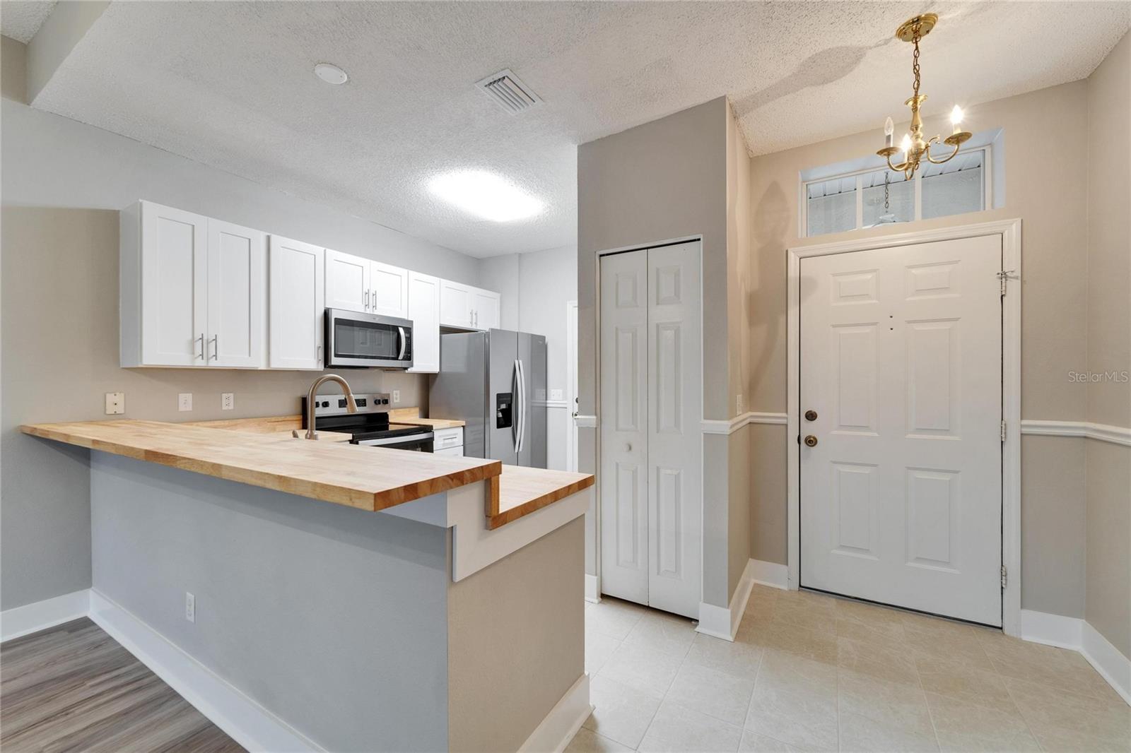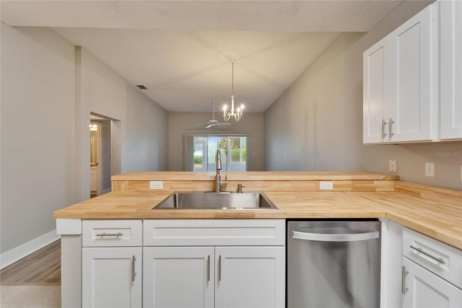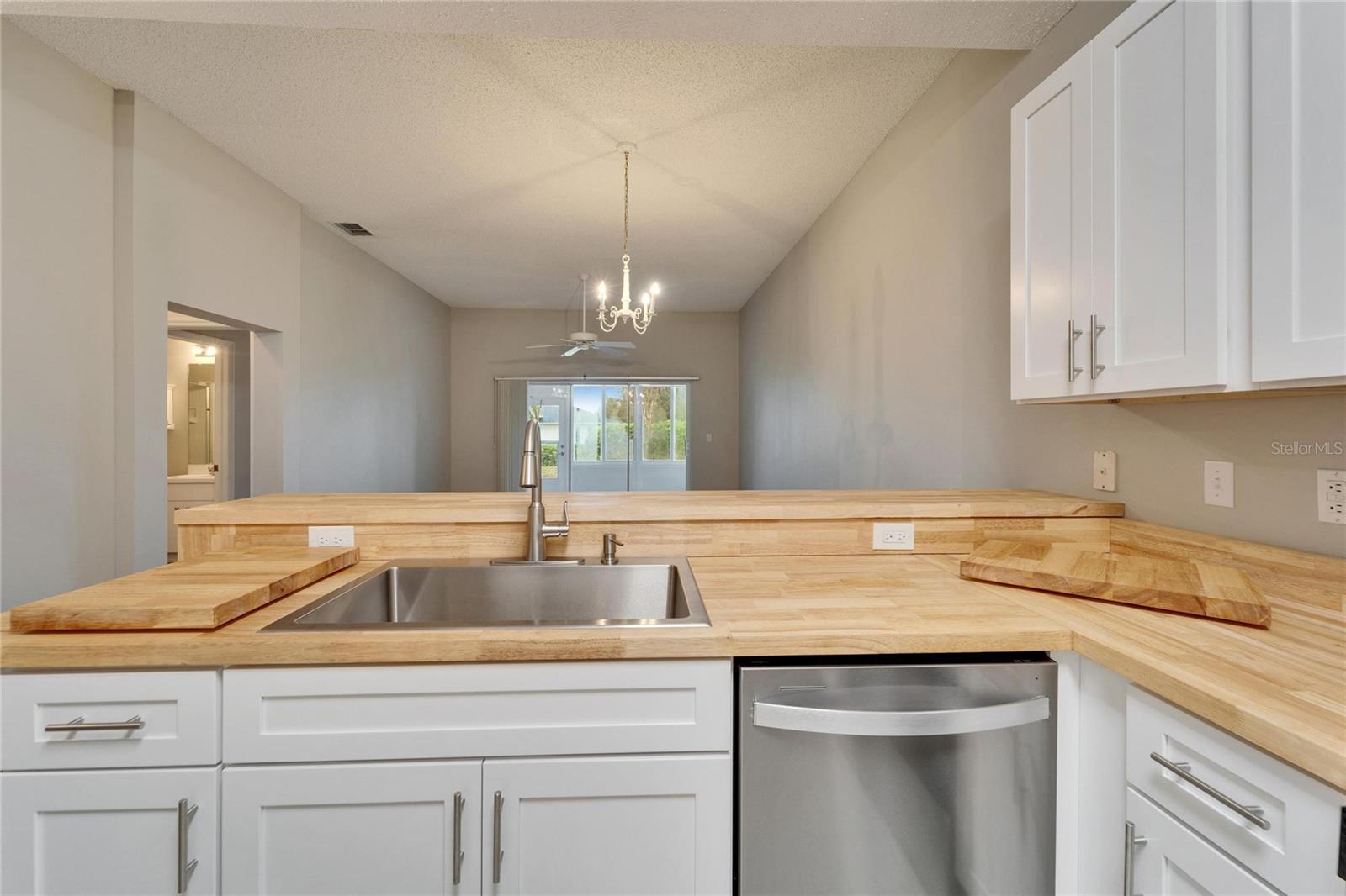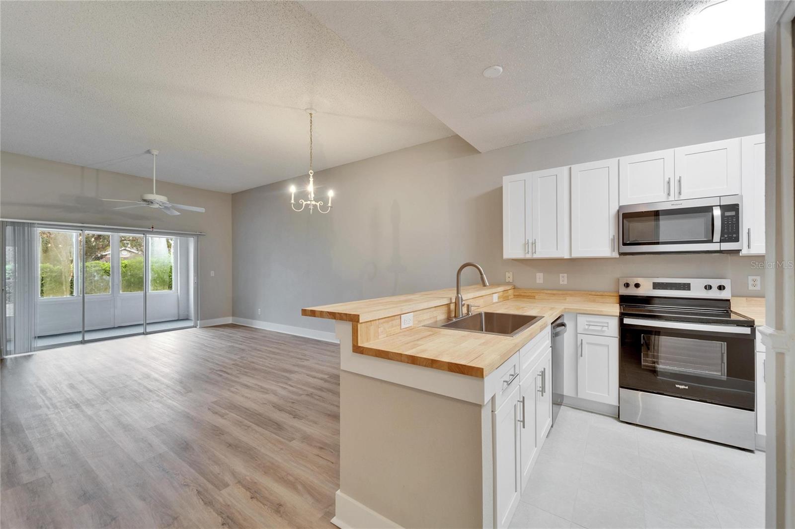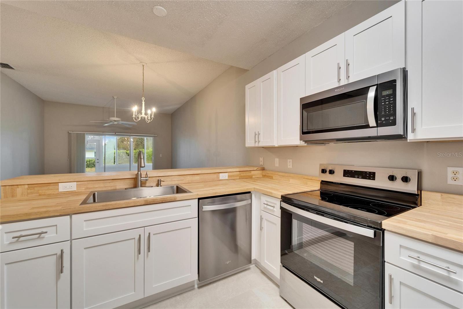 Owner says sell! One Owner Kings Point Condo (Radison 1) with two bedrooms, one and a half baths, one and a half car garage with washer and dryer plus a water softener and all new stainless-steel appliances. Fresh interior paint and new vinyl plank flooring plus a REMODELED kitchen with NEW cabinets (with soft-close drawers), butcher block countertops and farmhouse sink. VERY neutral for a new Owner to easily decorate and make their own. Nice rear Lanai for your morning coffee and evening sunsets. Conveniently located very close to the South Gate and Kings Point South Clubhouse and pool. Kings Point offers so many amenities including multiple restaurants, multiple pools (indoor and out), dedicated pickleball courts, numerous Clubs and daily activities plus much more. Contact us today for your personal tour of this condo home.