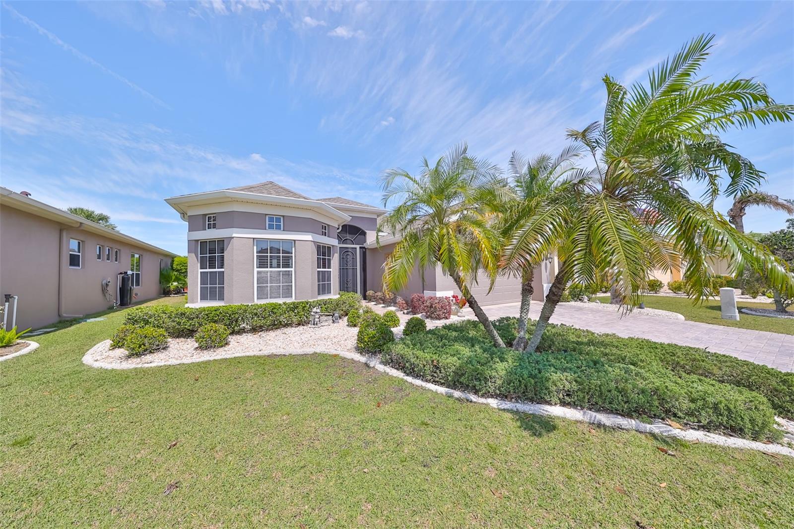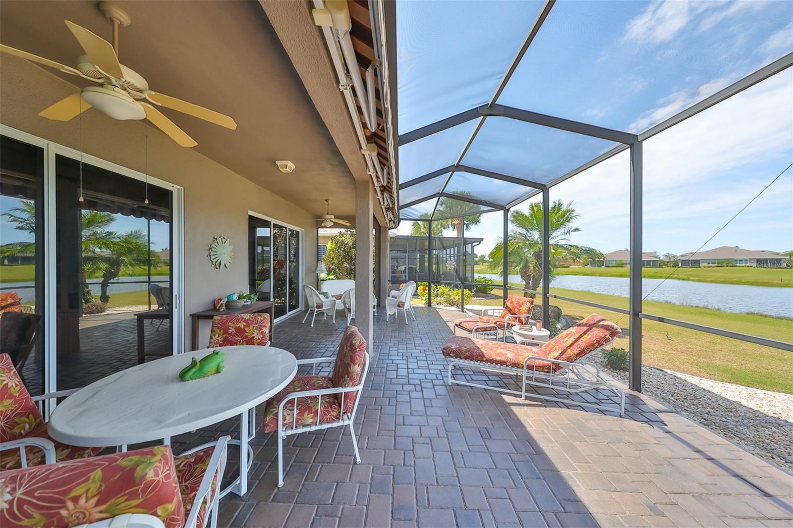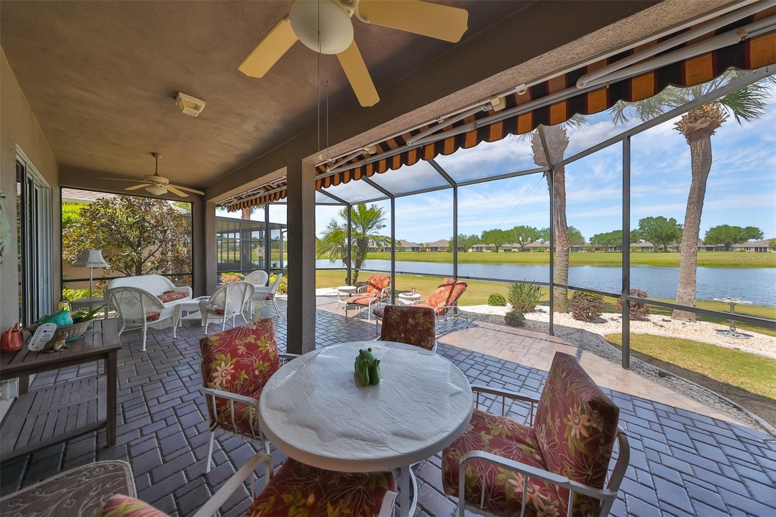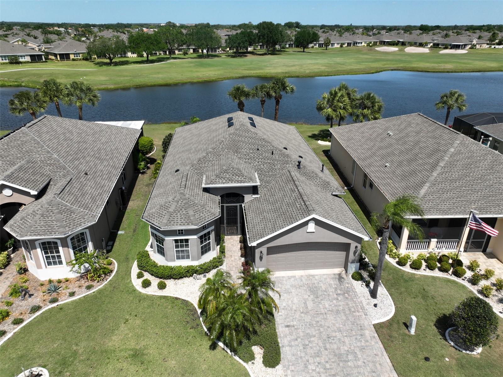 TERRIFIC PRICE IMPROVEMENT, FEATURING STUNNING WATER & GOLF COURSE VIEWS PLUS EXTENDED LANAI! Welcome to retirement living at its finest in the active 55+ community of Renaissance where you'll feel like you're on vacation every day. Situated on a premium lot, this immaculate "MONET" split floorplan boasts almost 2000 square feet of living space and has amazing water & golf course views across the rear of the home. You'll love the neutral decor, high ceilings, plantation shutters and 3 large separate sliders leading to the lanai. The eat-in kitchen has white cabinetry, granite counters and a built-in wall unit adding beauty and function to the breakfast area. The comfortable living room/dining room is the perfect space for all your entertainment needs. The large owner's suite has an extra "bump out" area for your office or reading nook, 2 large closets, double sink vanity and a tiled walk-in shower. The 2nd spacious bedroom & bathroom are at the opposite end of the home for extra privacy. The den can easily be used for a 3rd bedroom if needed. Retreat to the huge, brick paver & screened lanai where you can enjoy the peaceful water views and the 3rd hole of the Renaissance Golf Course. This home has been meticulously maintained: water heater (replaced in 2023), roof (replaced in 2022),air conditioner compressor (replaced 2024). As an extra bonus, the buyers will receive a 1 year home warranty for worry free living. This lovely home is just a short distance to the neighborhood Club Renaissance where you can enjoy dinner, drinks, resort style pool, fitness classes, social activities and so much more. This home is also conveniently located to all community amenities such as restaurants, shopping, banking, doctors and social clubs, all accessible by golf cart & the sellers will include their used golf cart with an accepted offer. So come and view this beauty today and see why you'll want to call it home!