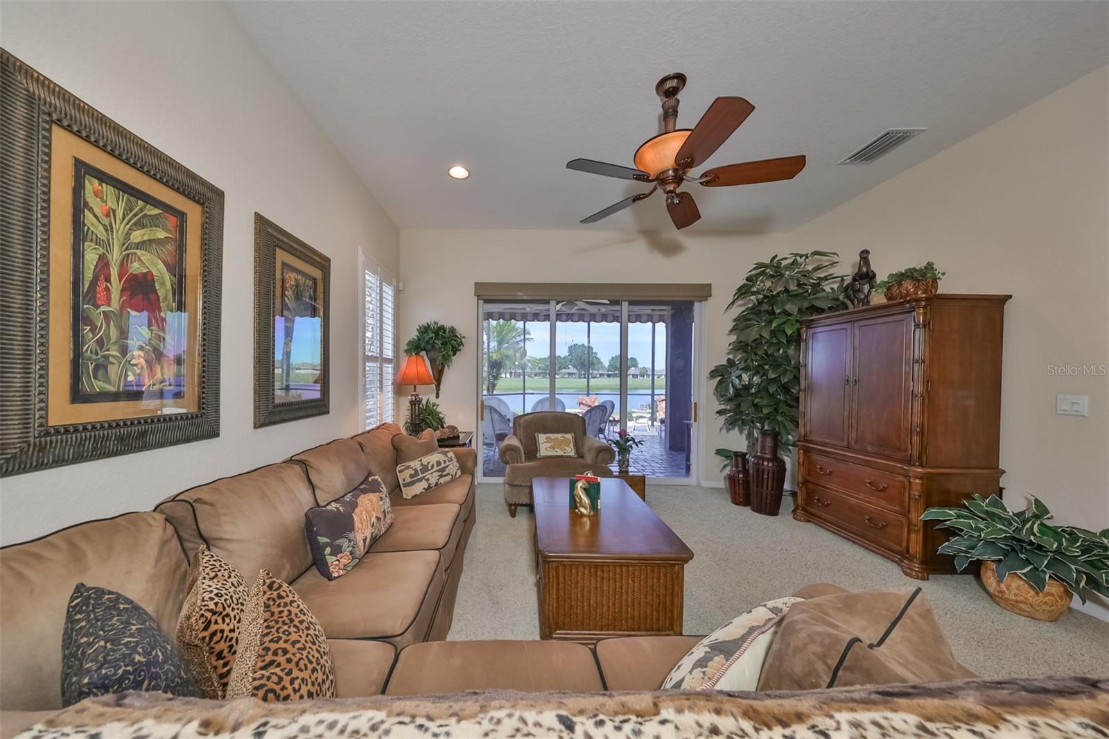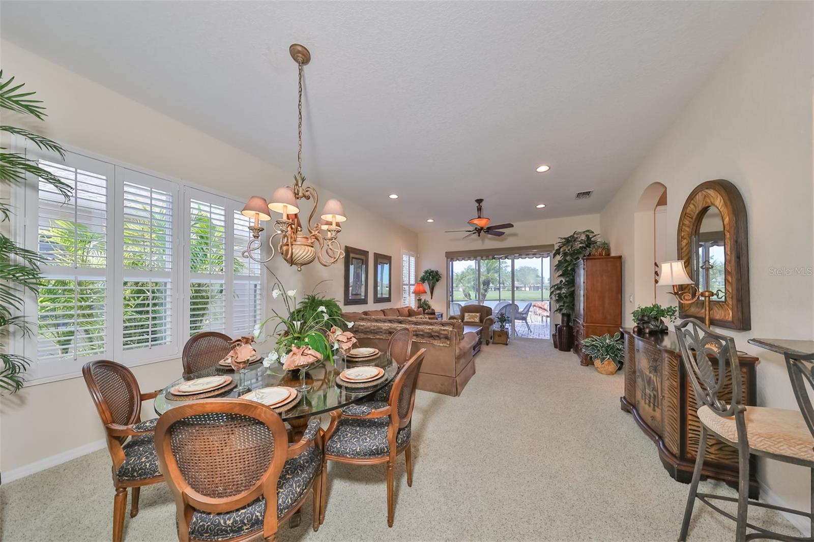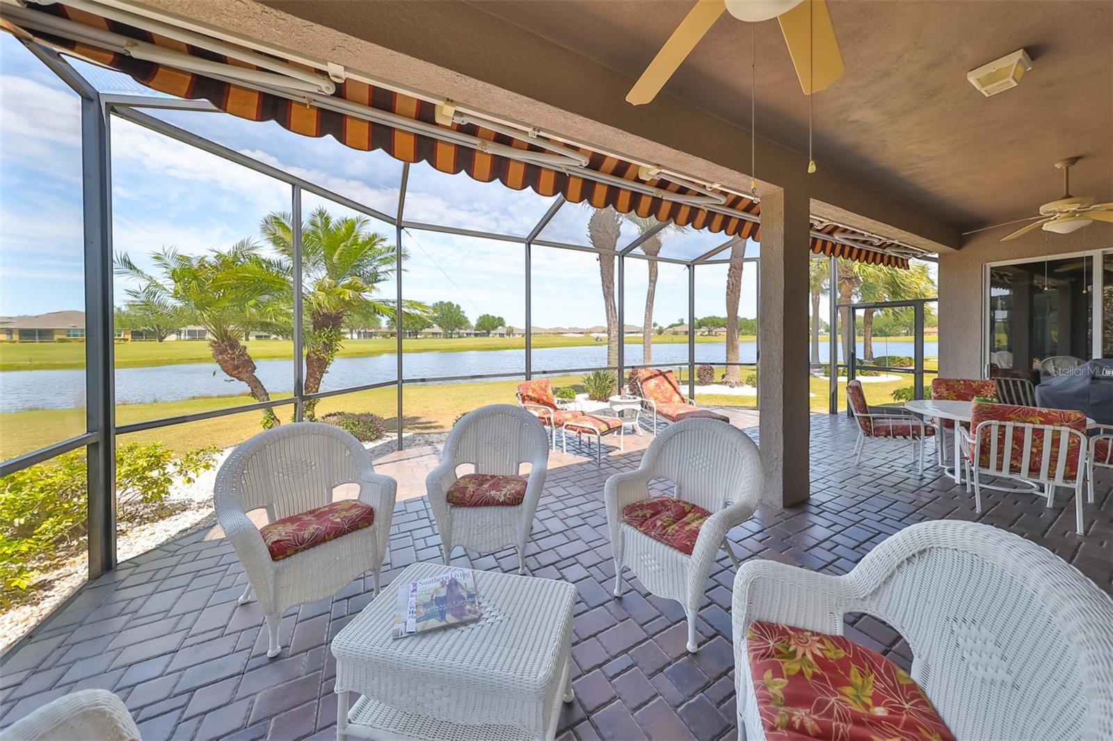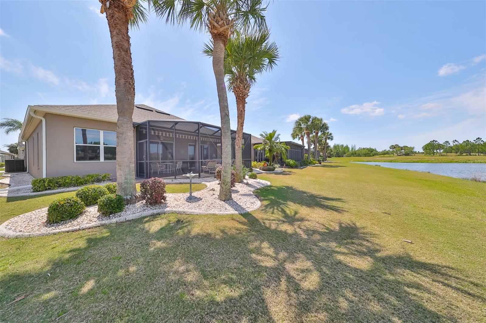 TERRIFIC PRICE IMPROVEMENT, FEATURING STUNNING WATER & GOLF COURSE VIEWS PLUS EXTENDED LANAI! Welcome to retirement living at its finest in the active 55+ community of Renaissance where you'll feel like you're on vacation every day. Situated on a premium lot, this immaculate "MONET" split floorplan boasts almost 2000 square feet of living space and has amazing water & golf course views across the rear of the home. You'll love the neutral decor, high ceilings, plantation shutters and 3 large separate sliders leading to the lanai. The eat-in kitchen has white cabinetry, granite counters and a built-in wall unit adding beauty and function to the breakfast area. The comfortable living room/dining room is the perfect space for all your entertainment needs. The large owner's suite has an extra "bump out" area for your office or reading nook, 2 large closets, double sink vanity and a tiled walk-in shower. The 2nd spacious bedroom & bathroom are at the opposite end of the home for extra privacy. The den can easily be used for a 3rd bedroom if needed. Retreat to the huge, brick paver & screened lanai where you can enjoy the peaceful water views and the 3rd hole of the Renaissance Golf Course. This home has been meticulously maintained: water heater (replaced in 2023), roof (replaced in 2022),air conditioner compressor (replaced 2024). As an extra bonus, the buyers will receive a 1 year home warranty for worry free living. This lovely home is just a short distance to the neighborhood Club Renaissance where you can enjoy dinner, drinks, resort style pool, fitness classes, social activities and so much more. This home is also conveniently located to all community amenities such as restaurants, shopping, banking, doctors and social clubs, all accessible by golf cart & the sellers will include their used golf cart with an accepted offer. So come and view this beauty today and see why you'll want to call it home!