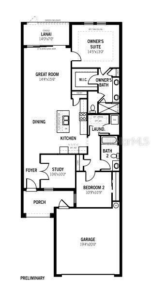 This spacious, smart-home villa offers 2 bedrooms, 2 bathrooms, a dedicated study with 8’ glass lite doors and a 2-car garage. The Anclote is approximately 1,500 square feet of open, airy living space complimented by oversized sliders leading to the paved, screened, lanai. A perfect spot for morning coffee or a relaxing evening at home. This villa offers an open floor plan flowing from the kitchen to the dining room and into the great room. The kitchen boasts light grey cabinetry and Carrara Breve quartz countertops. The Anclote has split bedrooms with the owner’s retreat at the rear of the home to provider privacy from family and guests. In the en suite owner’s bath, you will find dual sinks in the raised vanity, a large shower, a private water closet and linen closet and large closet. The secondary bedroom and bath are on the opposite side of the home. The gated community of La Paloma is a low maintenance lifestyle complete with pickleball, pool with lap lanes, spa, fire pit area and is very golf cart friendly. Photos, renderings and plan are for illustrative purposes only, should never be relied upon, and may vary from the actual home. The photos are from a furnished model home and not the home offered for sale. This home will be available for move in September/October 2024. Room Feature: Linen Closet In Bath (Primary Bedroom).