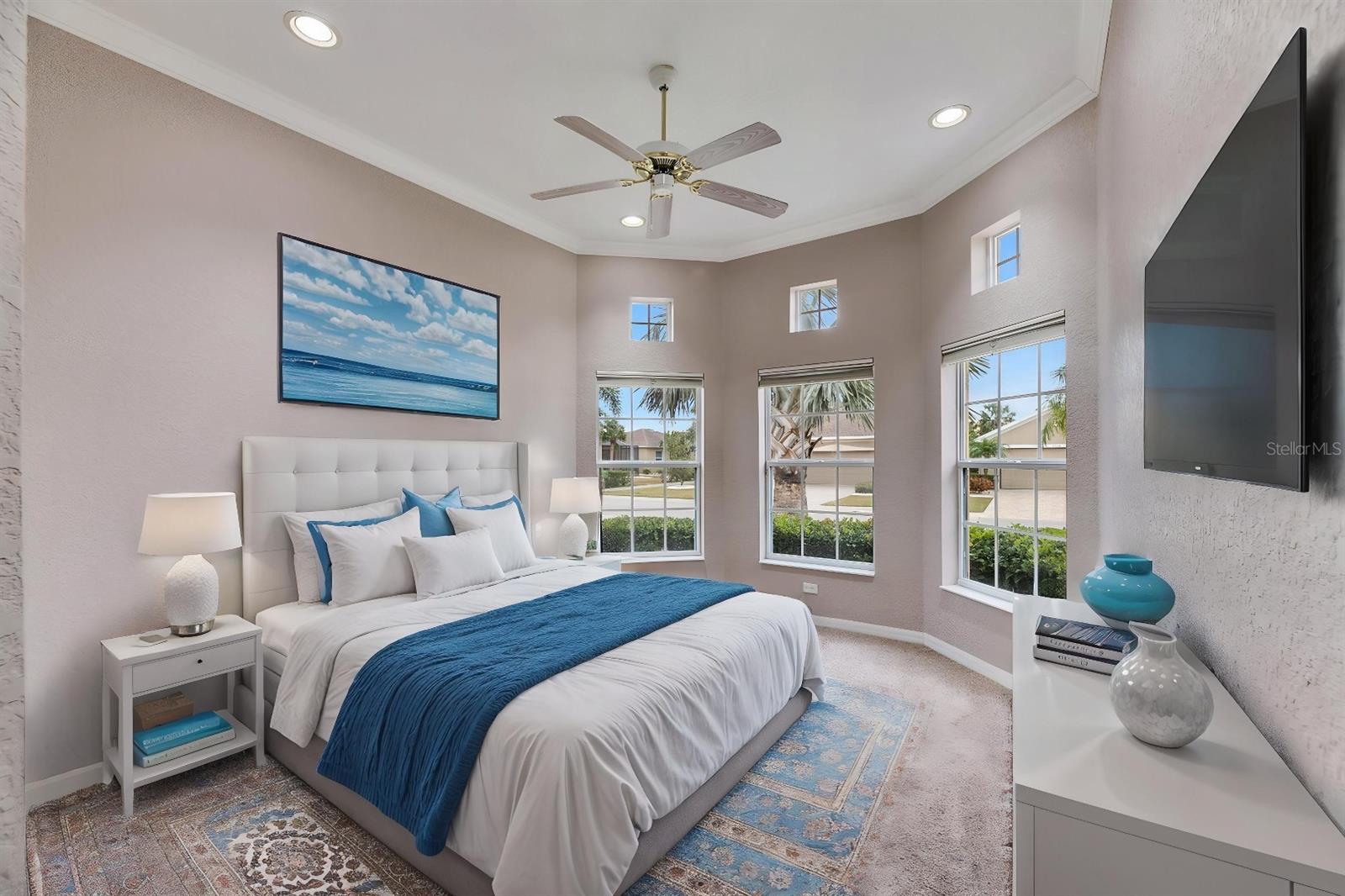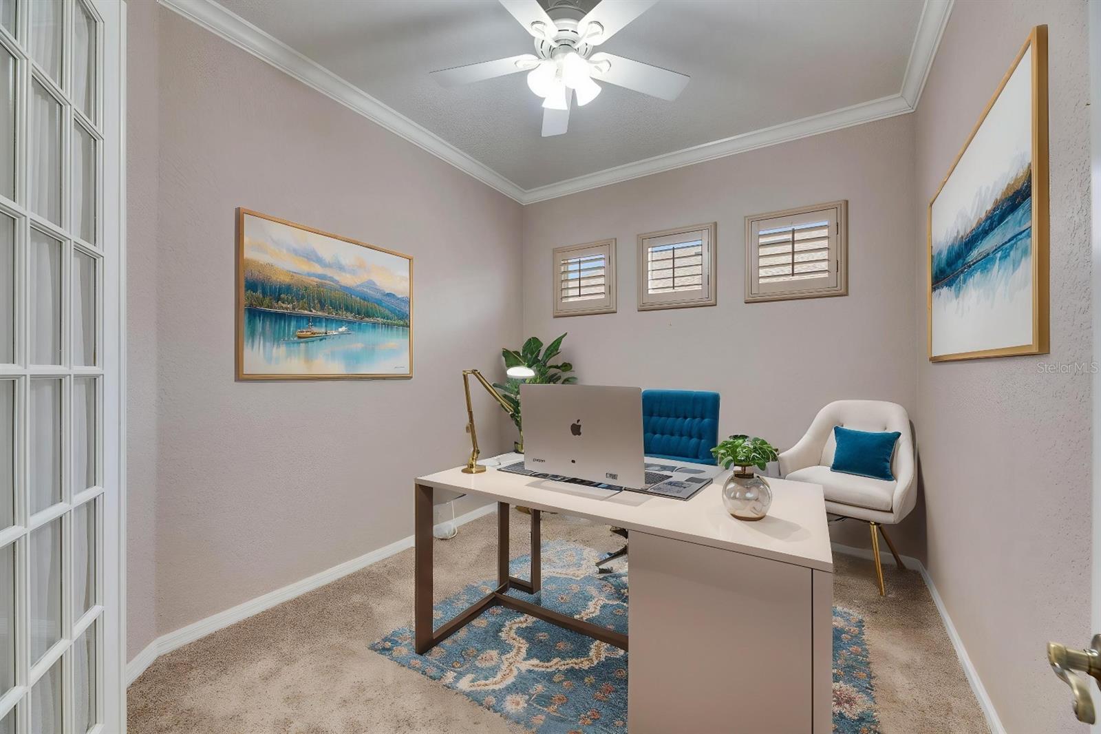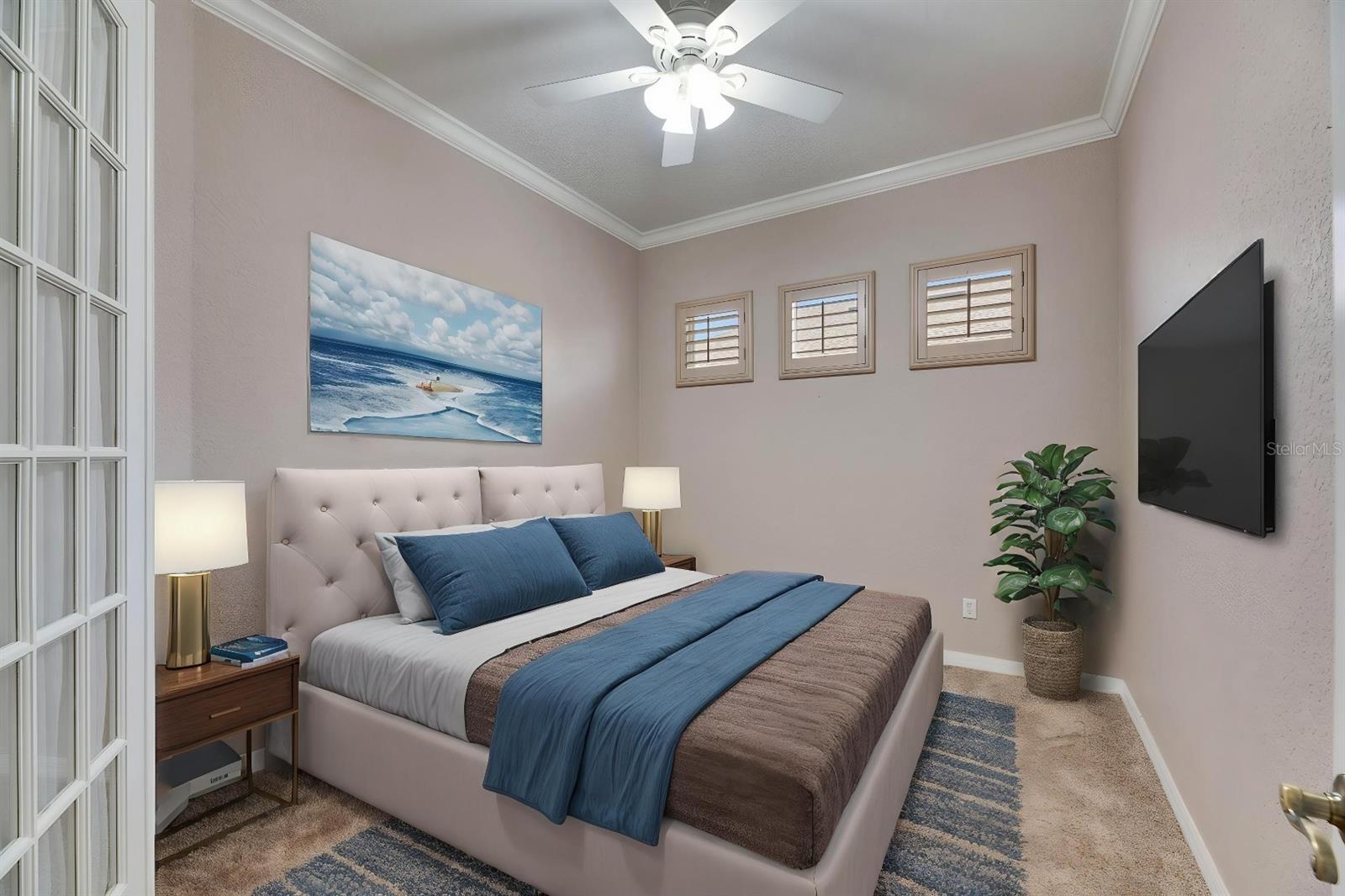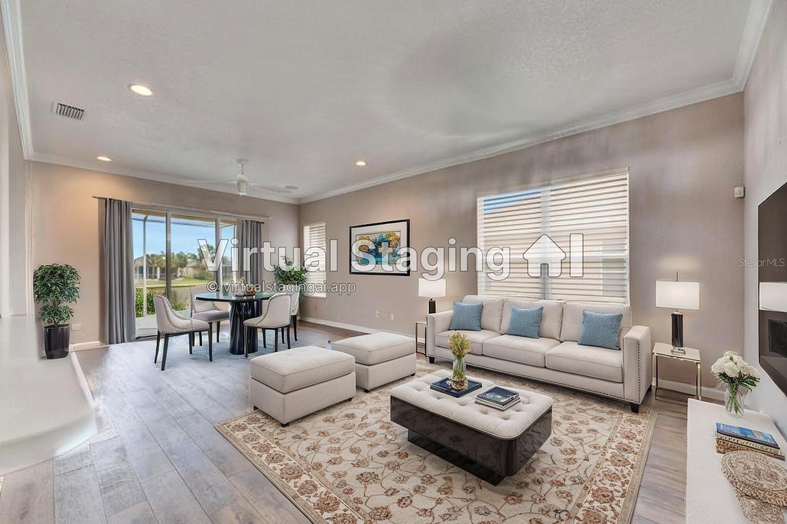 SELLER SAYS SALE! Where Comfort Meets Elegance – Your Florida Dream Home Awaits! Step into effortless living with this beautifully maintained, move-in-ready home in the exclusive Renaissance community of Sun City Center. Set against peaceful pond and golf course views, this spacious 2-bedroom plus den home offers nearly 2,000 square feet of comfort and style, complete with a brand-new roof and freshly painted interior. The split-bedroom layout is ideal for privacy, while the open design features a gourmet gas kitchen with quartz countertops, 42” pine cabinets, and a reverse osmosis system. Three oversized sliding doors lead to a large screened lanai—perfect for entertaining or enjoying quiet Florida evenings. The luxurious primary suite features a tray ceiling, sitting area, dual closets, and a spa-like bathroom with a skylight, dual sinks, and a step-free Roman shower. A French-door den provides a great flex space for a home office or guest room. Thoughtful upgrades include a brick-paved driveway, retractable screen doors, central vacuum, Culligan water softener, built-in sound system, and an included 64” TV with sound bar. Plus, enjoy added peace of mind with a one-year home warranty. Live like you’re on vacation every day with exclusive access to the Renaissance Center, offering golf, pool, spa, fitness center, dining, and more. You'll also enjoy all the amazing amenities of Sun City Center—200+ clubs, two clubhouses, and golf cart-friendly convenience. This is more than a home—it’s a lifestyle. Homes like this don’t last long, so schedule your private tour today and see why Sun City Center was named the #1 Retirement Community in America by REALTOR.com!