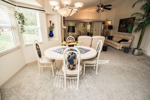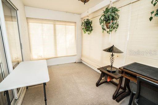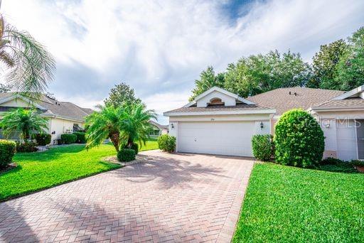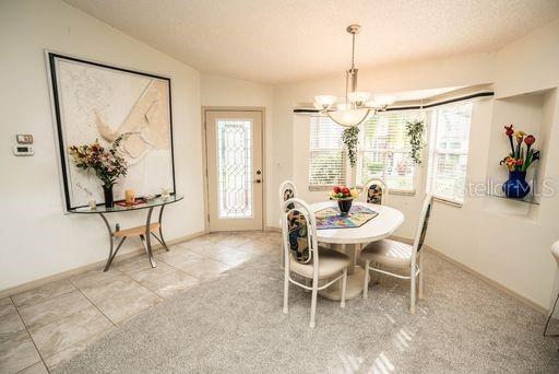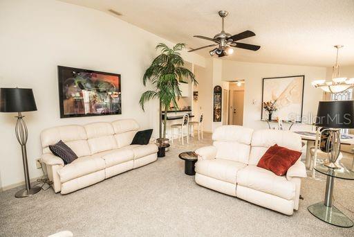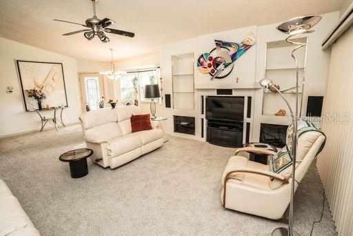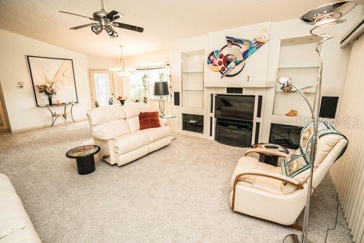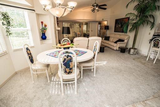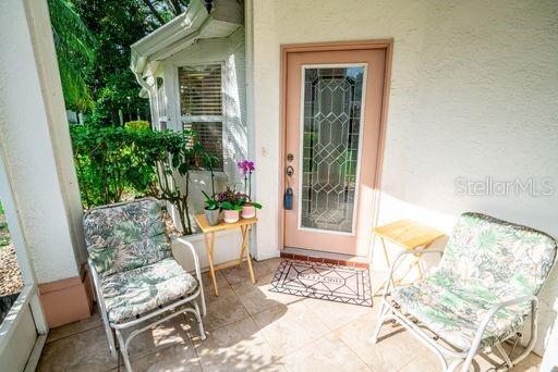 Outstanding condo on short, quiet cul de sac close to golf course. Lots of natural light in dining and great rooms from bay window and glassed lanai. Nice buffer spaces between and behind buildings. Screened sitting area leads to leaded glass front door. Brand new carpet, new Rheem water heater, water softener. Custom built entertainment and shelving wall in great room. Walk in tub in master bath. Most of furniture being leftlo. Buyer pays transfer and federation fees within proper time frame. Kings Point has numerous amenities and opportunities that owners can take advantage of.