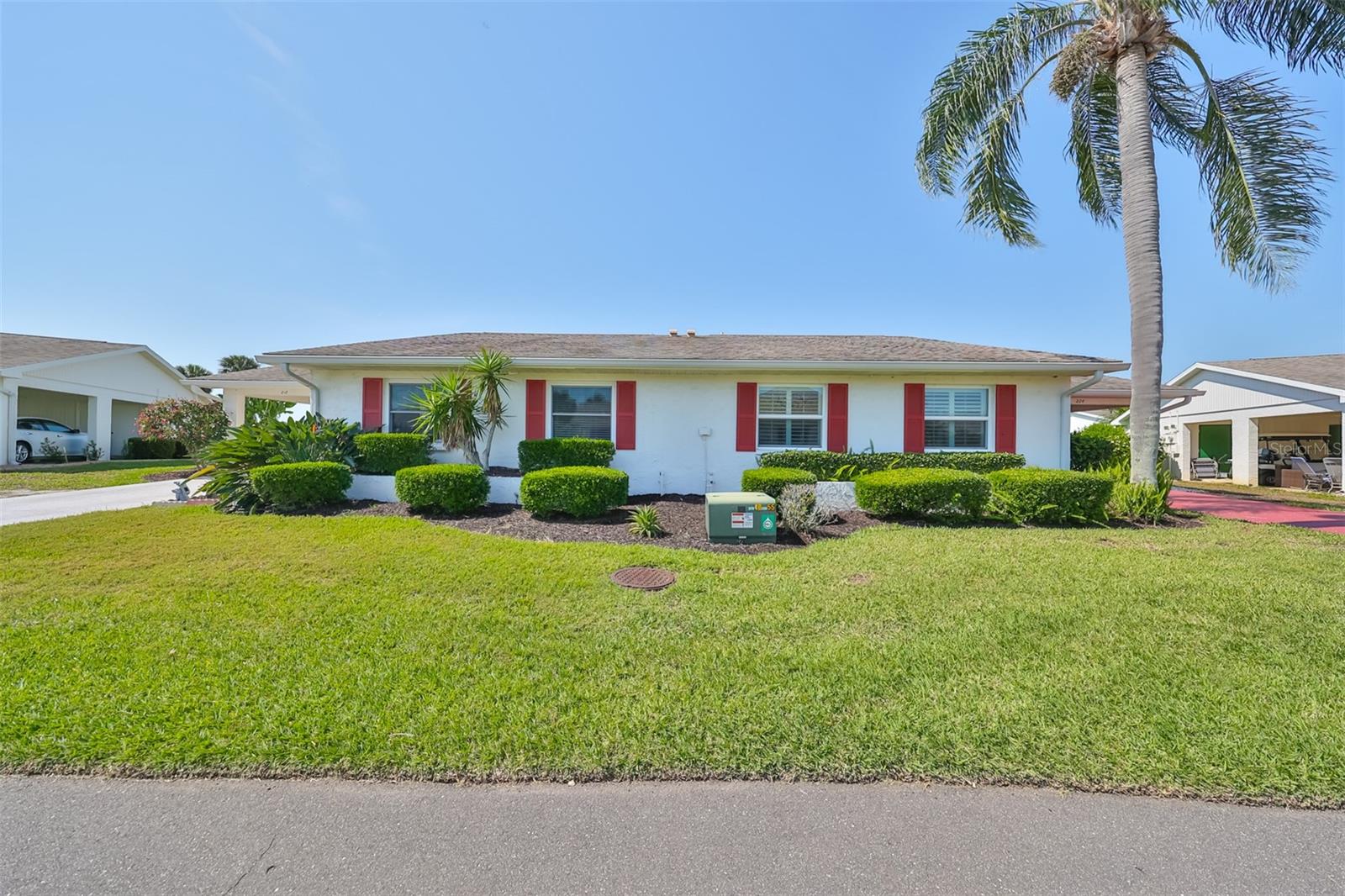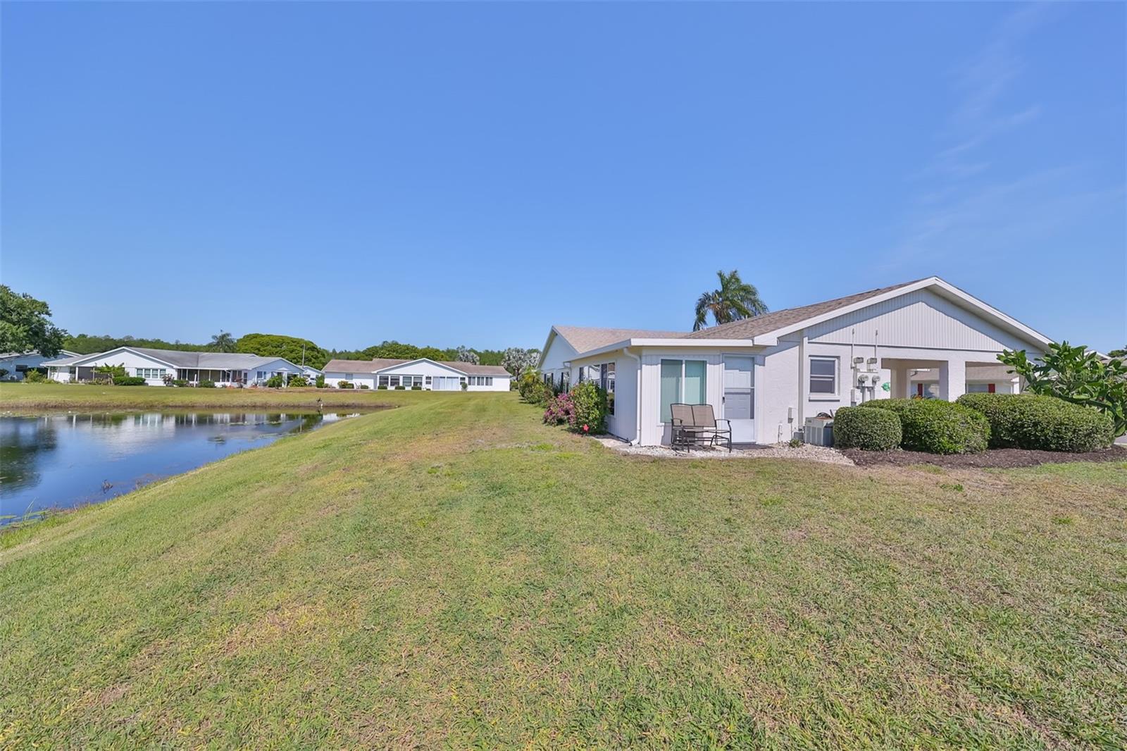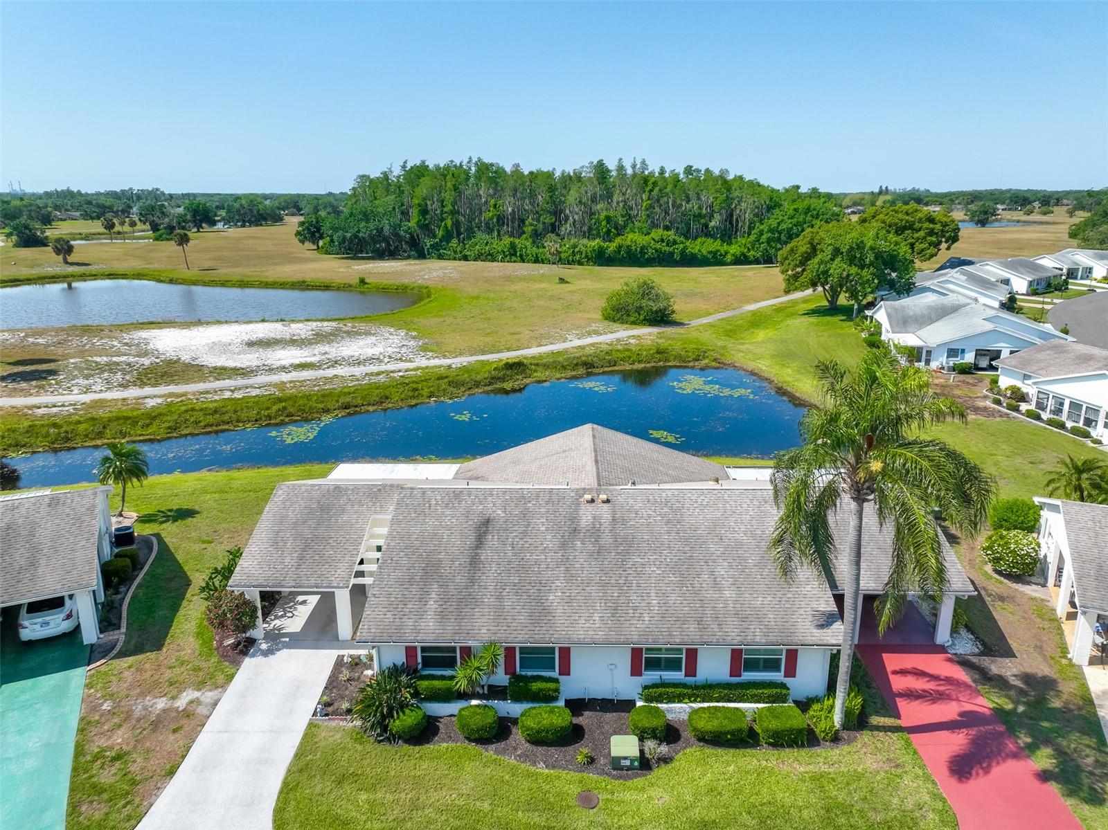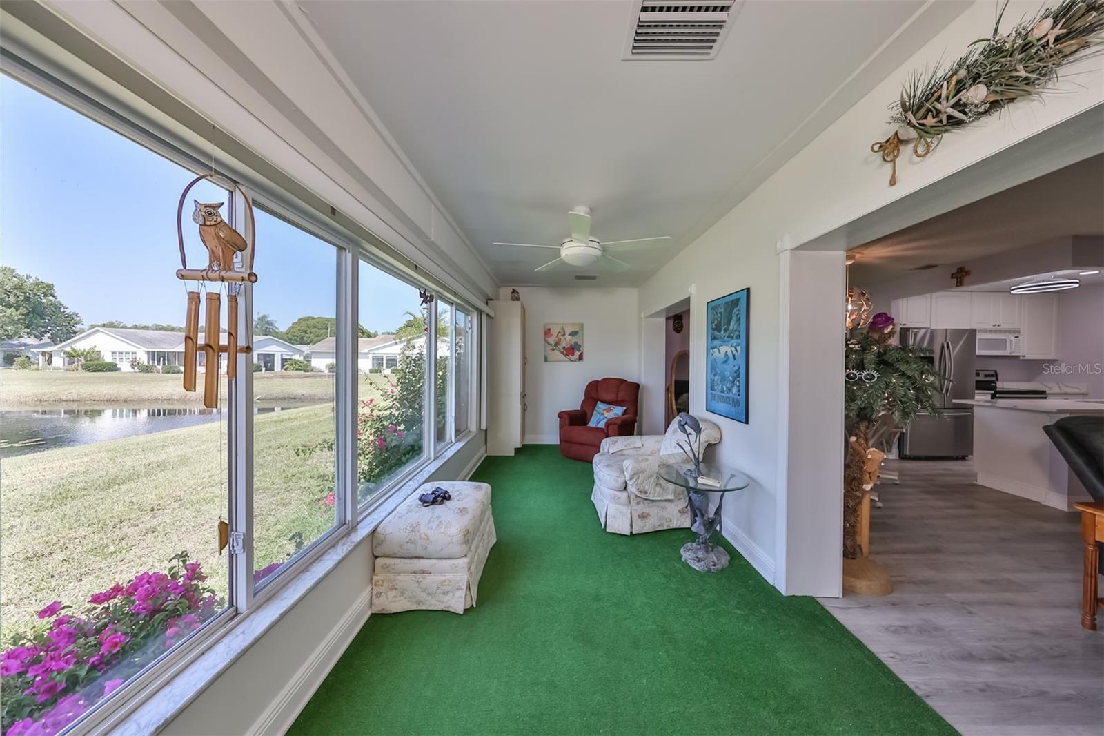 HUGE PRICE IMPROVEMENT! An incredible opportunity awaits! Dive into the vibrant lifestyle of the 55+ community in Kings Point, Sun City Center, proudly voted the 2024 #1 Retirement Community in America by Realtor.com and Travel and Leisure Magazine! Imagine waking up every morning to stunning views of water and lush green space from your 410 sq ft air-conditioned glass-enclosed Florida room, part of a generous 1418 sq ft living space. As you approach this charming Hampton home featuring 2 bedrooms and 2 baths, you'll notice the fresh exterior paint and distinctive red trim, complemented by an attached one-car carport and an epoxy-finished driveway. The side entrance is adorned with a screened entry and a beautiful leaded glass front door. Inside, the updated kitchen showcases white wood cabinets, quartz countertops, stainless steel appliances, recessed lighting, and a fanlight, perfect for culinary enthusiasts. Both bathrooms have been modernized with raised vanities, adding a touch of luxury. The home features laminate flooring throughout, with the Florida room and laundry area offering cozy carpeting. The laundry room is equipped with ample cabinets for storage, a new hot water heater, CPVC plumbing, and an upright freezer. For added peace of mind, the seller is offering to transfer SILVER KPW WARRANTY through 2/28/25 to the buyer. This home is being sold turn-key, with some personal items excluded, or they can be removed at the buyers request. Join the lively atmosphere in the gated golf community of Kings Point, where golf carts are the preferred mode of transport and state-of-the-art amenities abound. Enjoy both indoor and outdoor heated pools, fitness centers, computer labs, arts and crafts, an auditorium with seating for 800+, as well as tennis, pickleball, lawn bowling, and access to over 200 clubs and activities. Conveniently located near Tampa, Sarasota, St. Petersburg, Tampa International Airport, shopping, dining, beaches, theaters, and sporting events, don’t miss this chance to embrace a dynamic and active lifestyle!